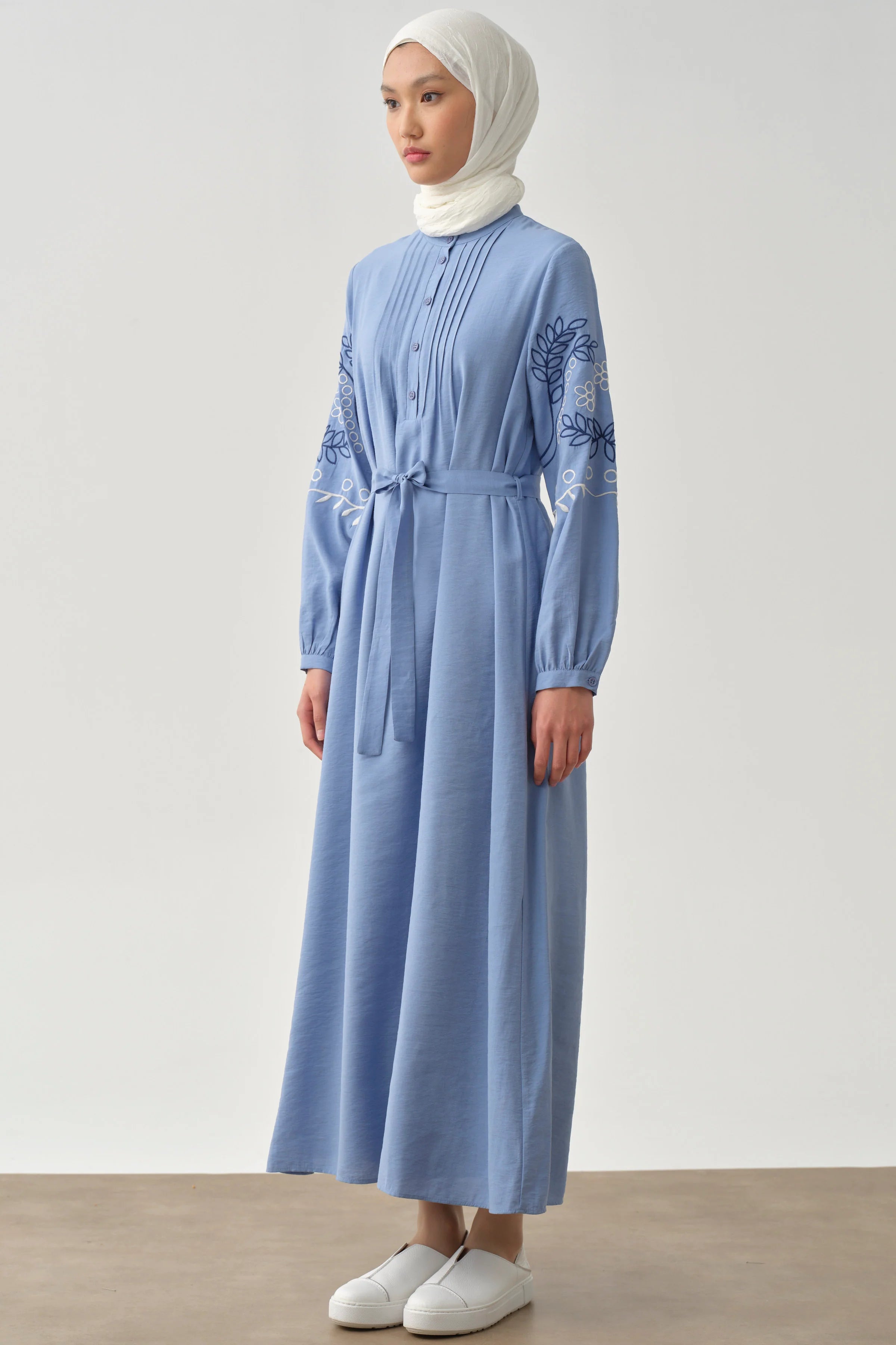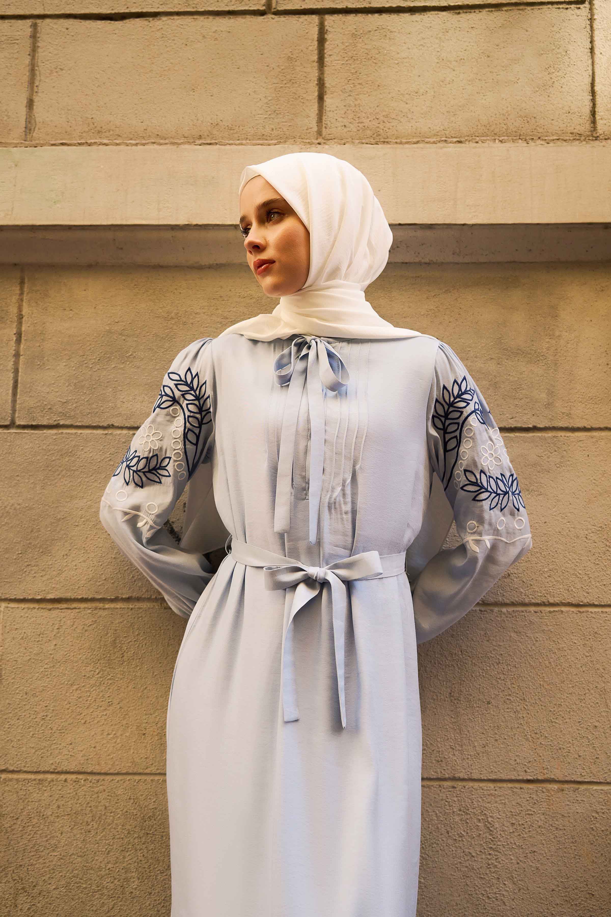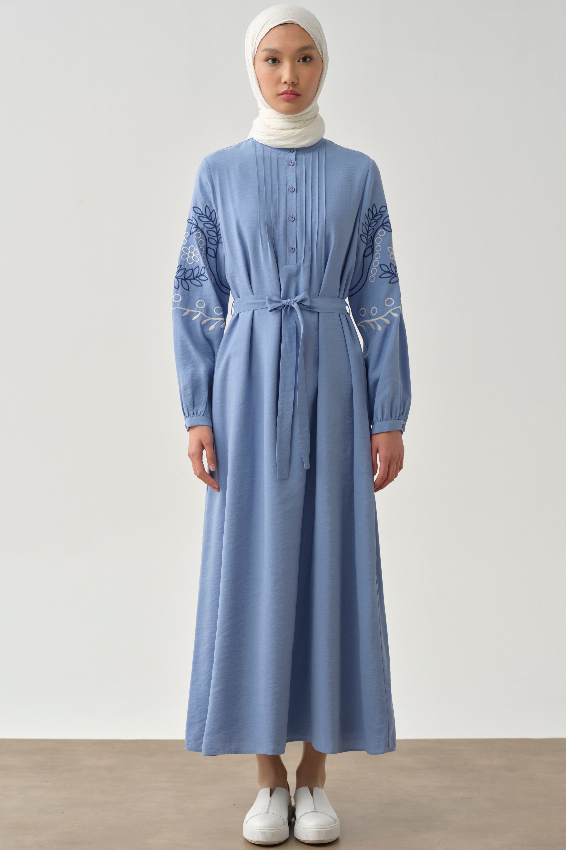 Robe à col Judge et manches brodées - Bleu