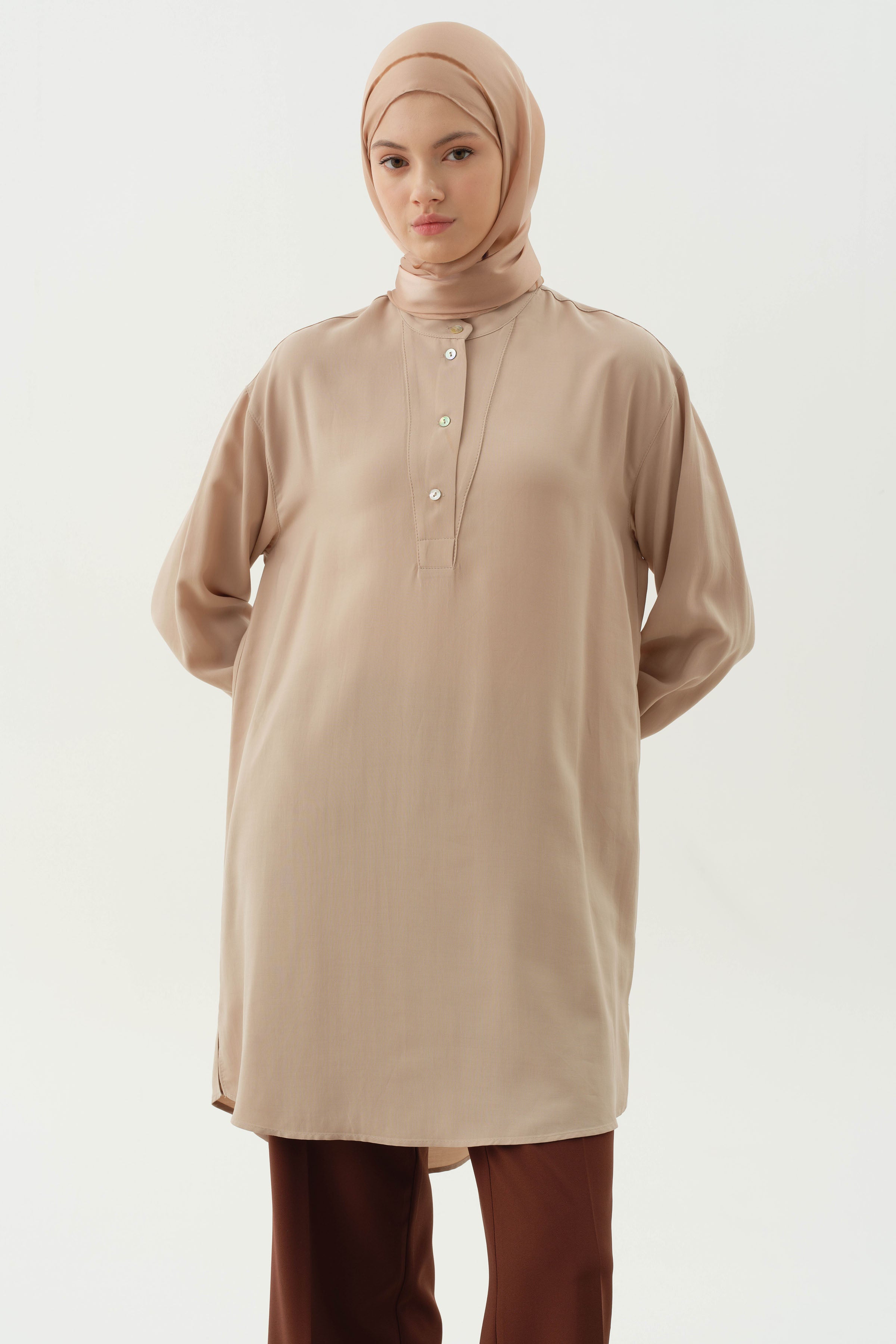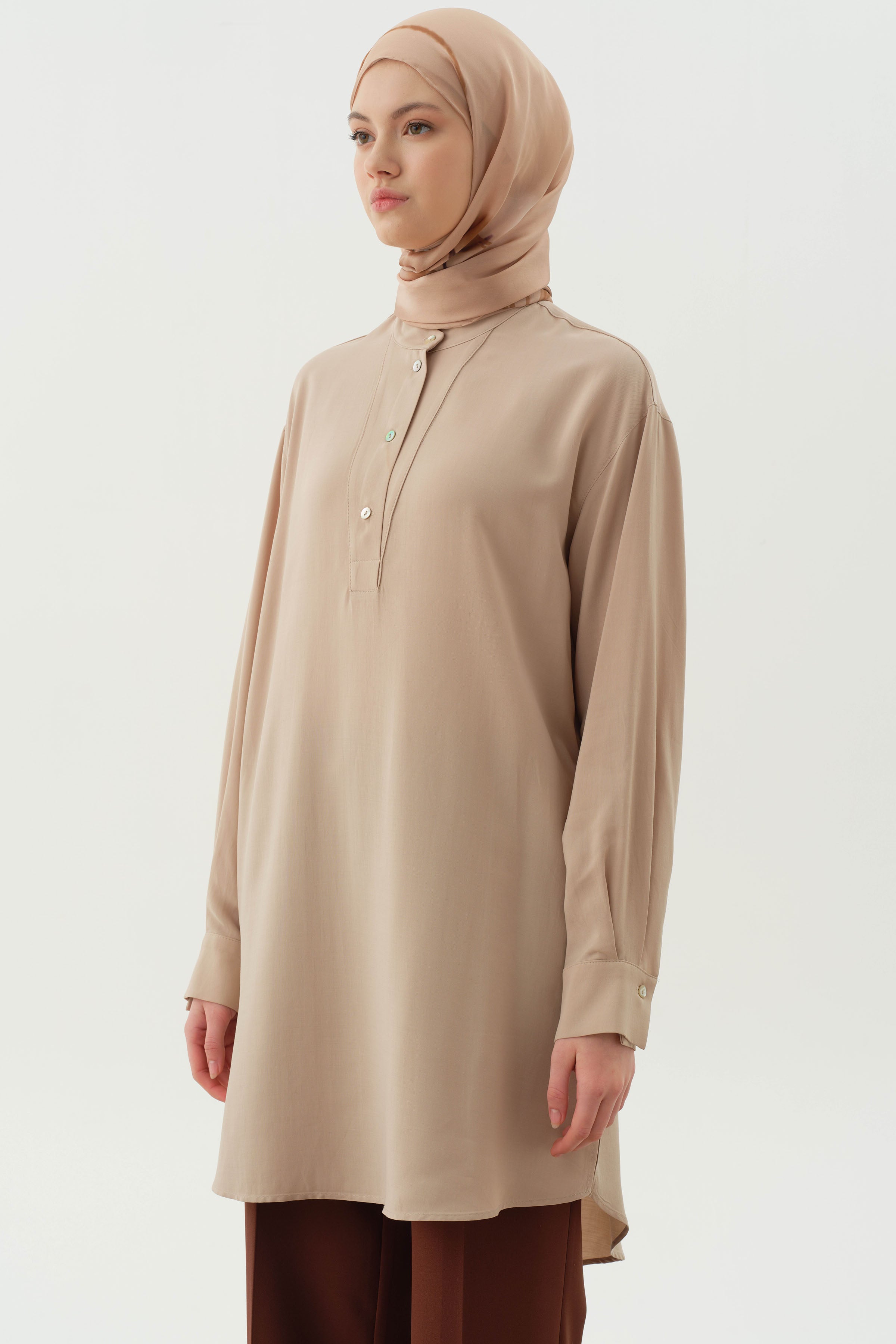 Tunique asymétrique à patte partielle - Beige