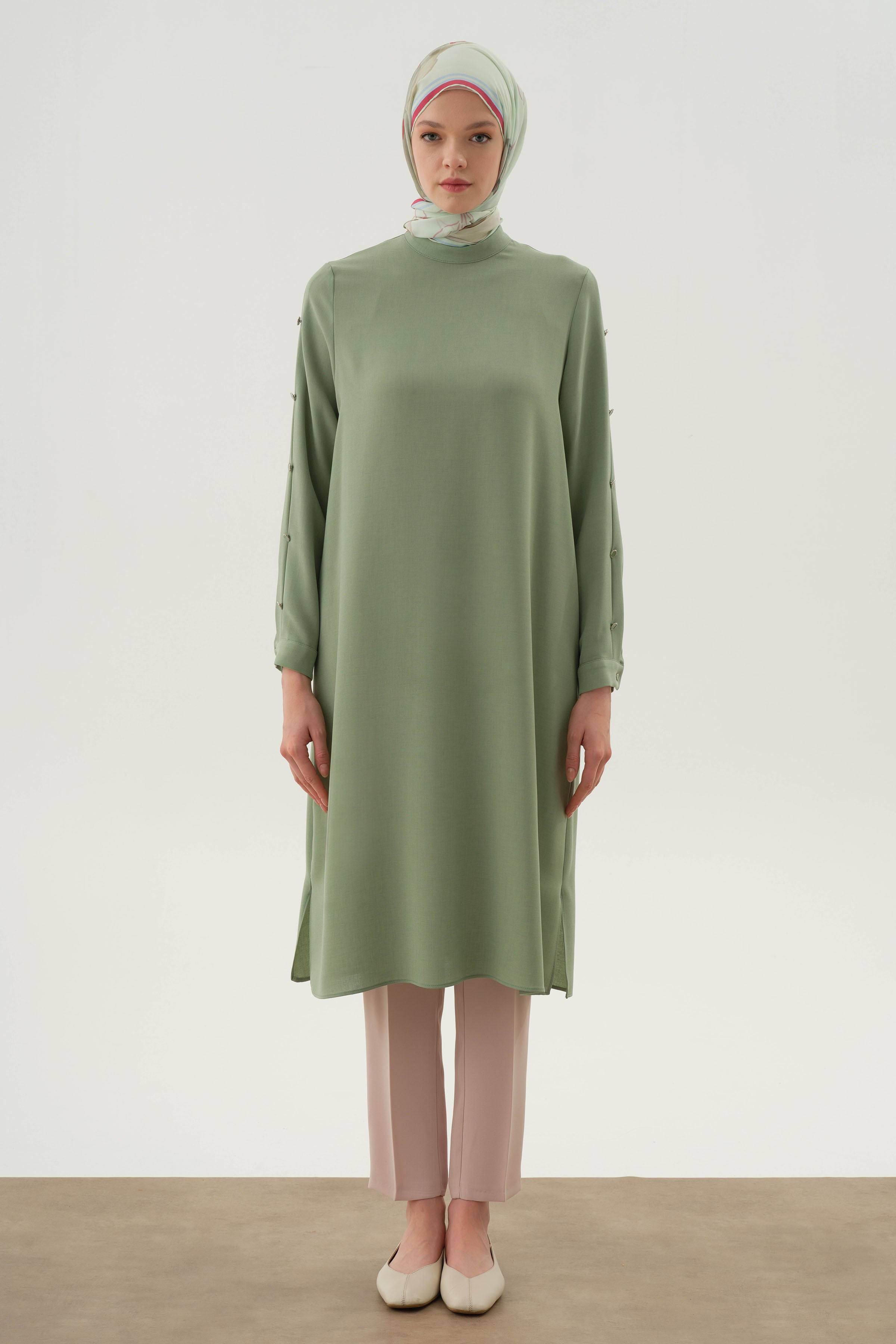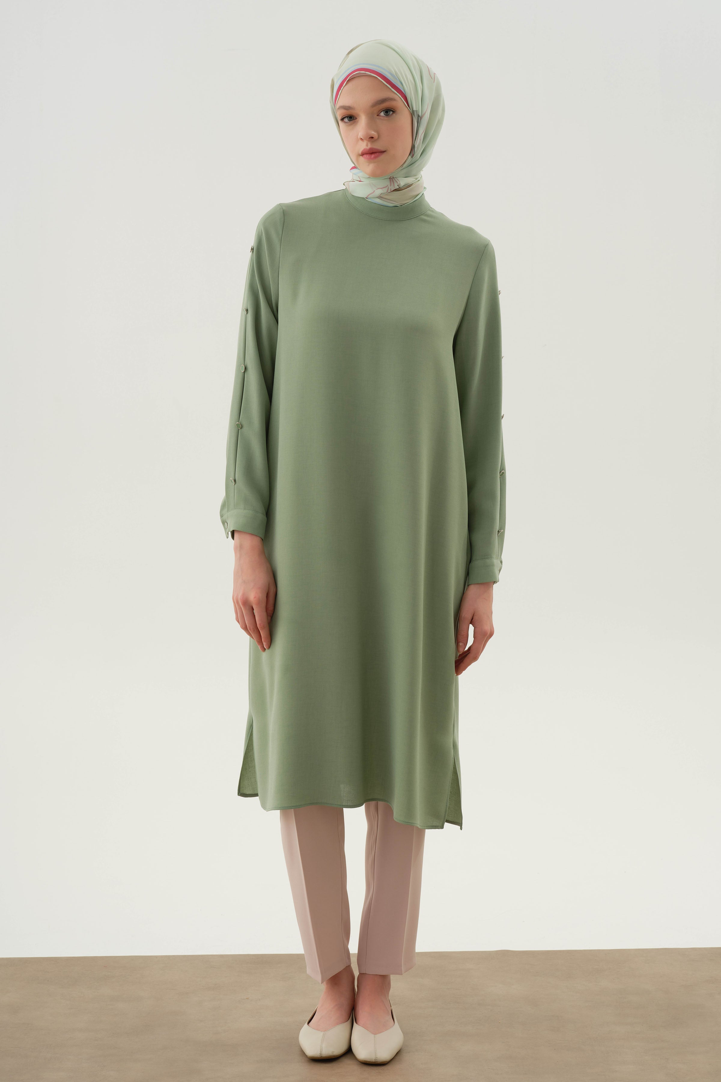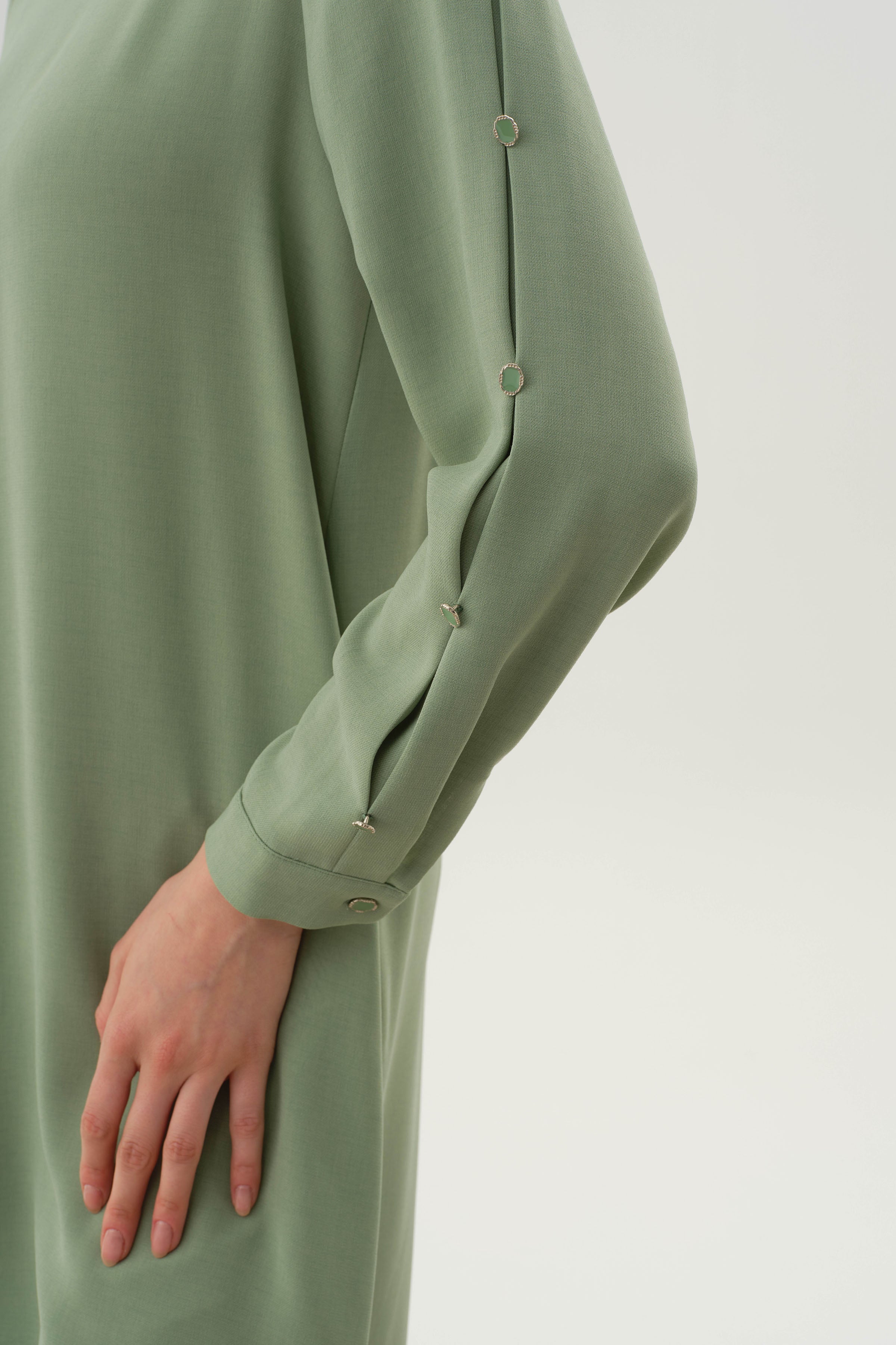 Tunique avec manches plissées et détails boutons - Vert d'eau