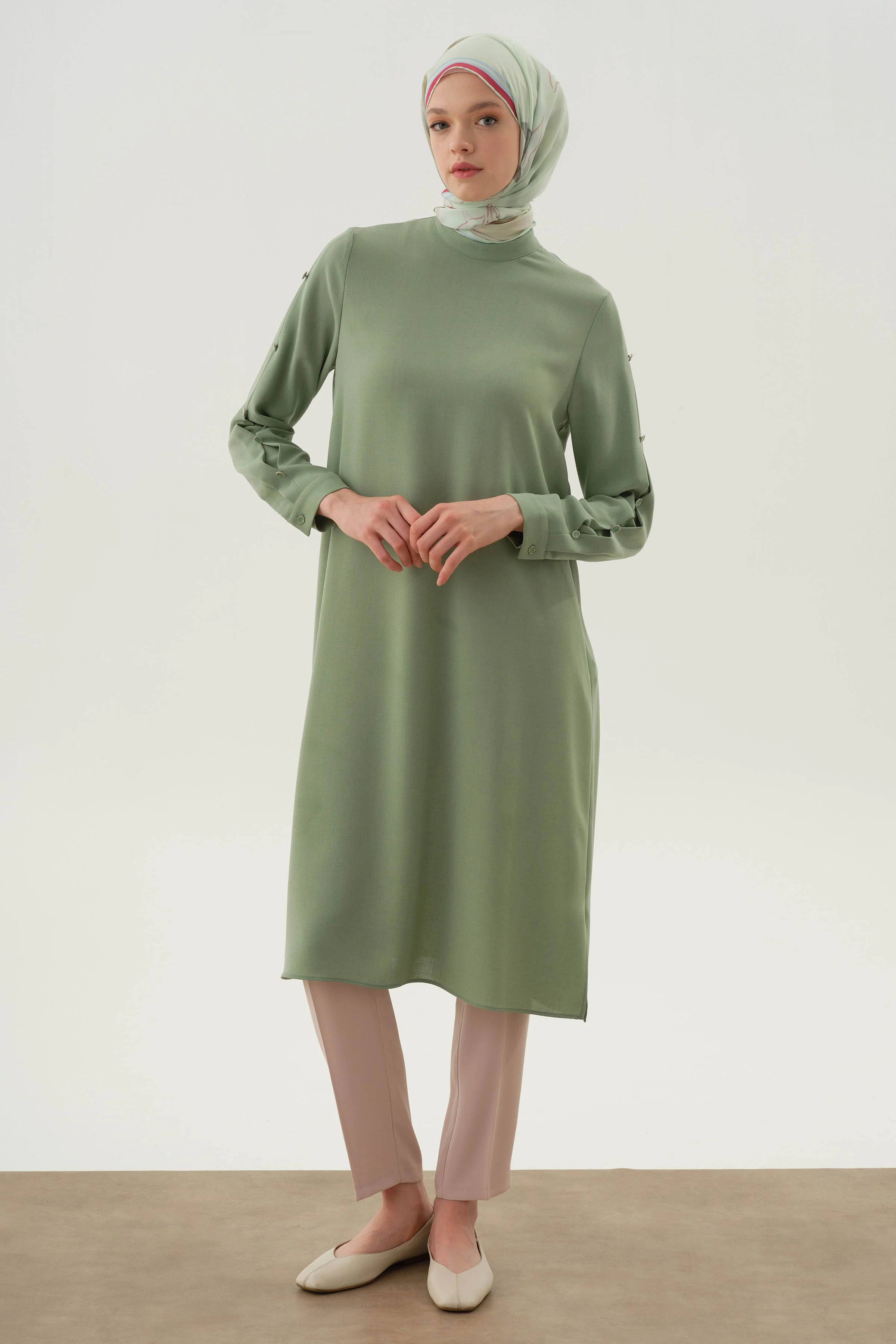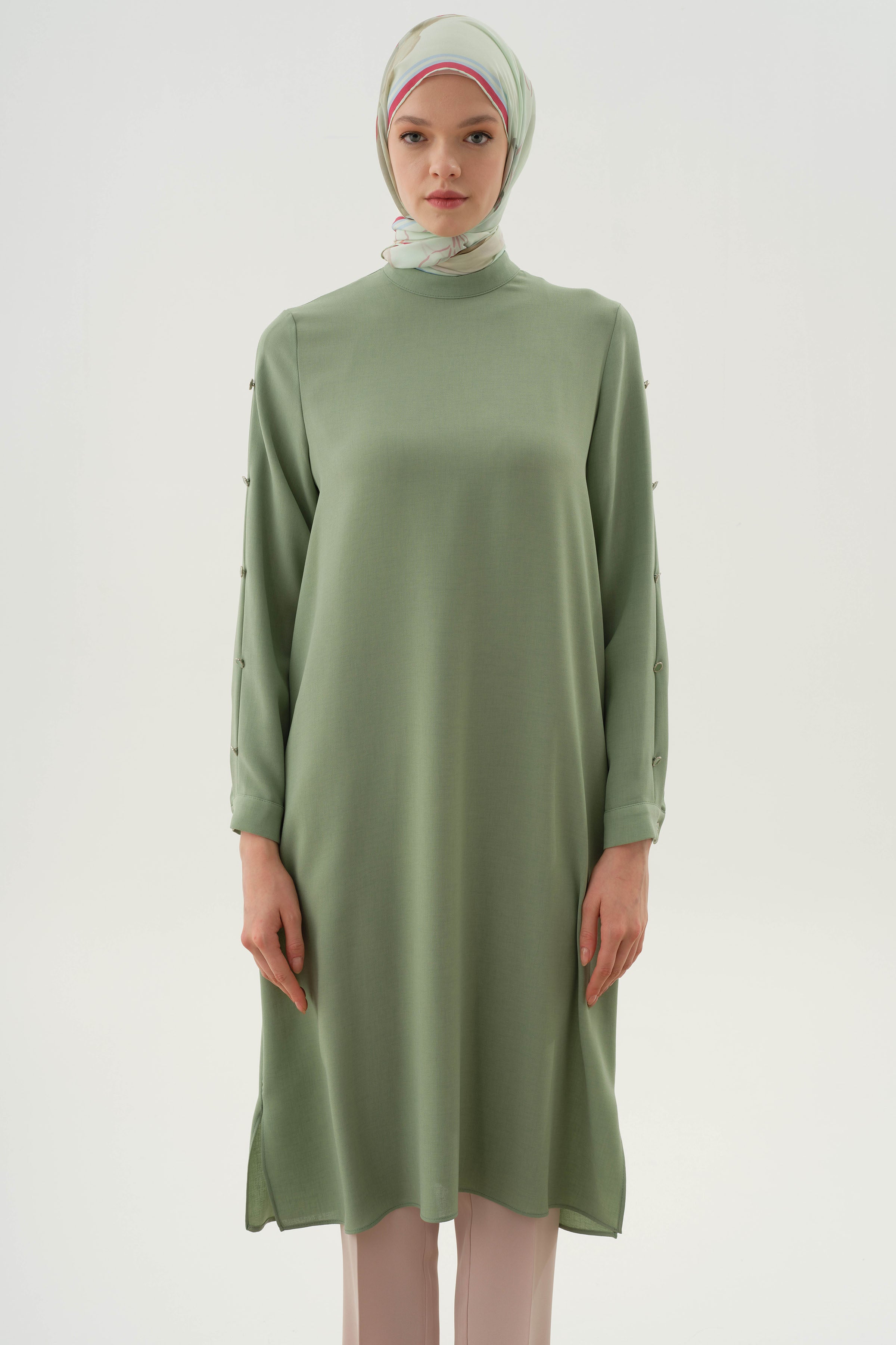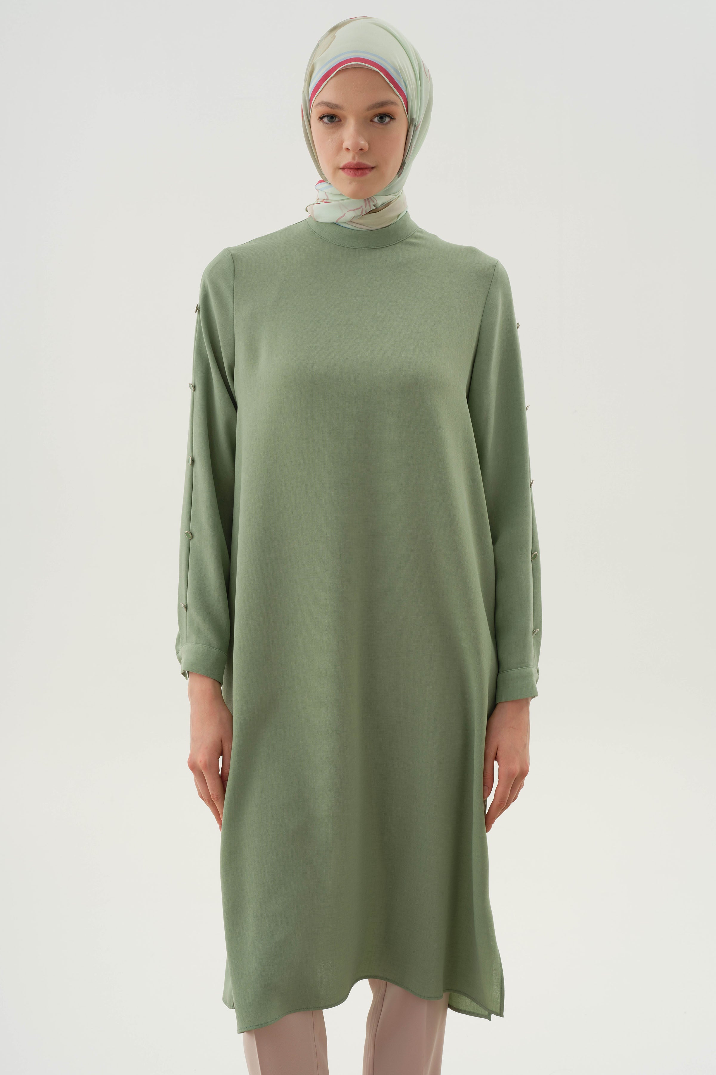 Tunique avec manches plissées et détails boutons - Vert d'eau