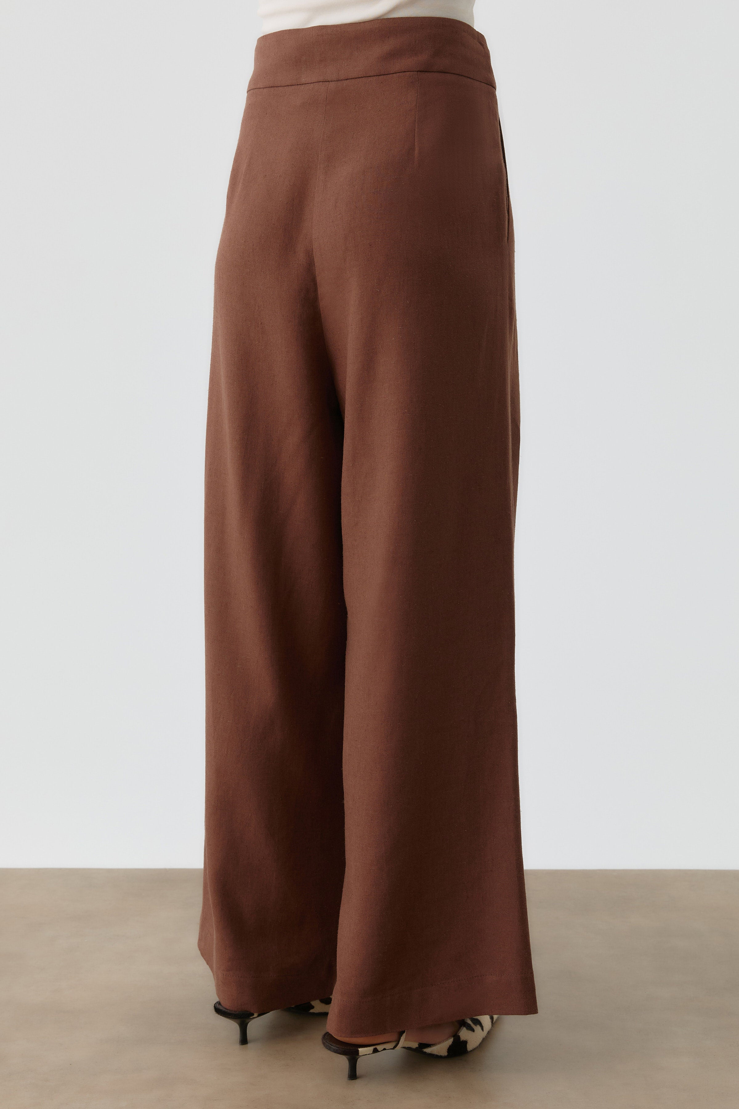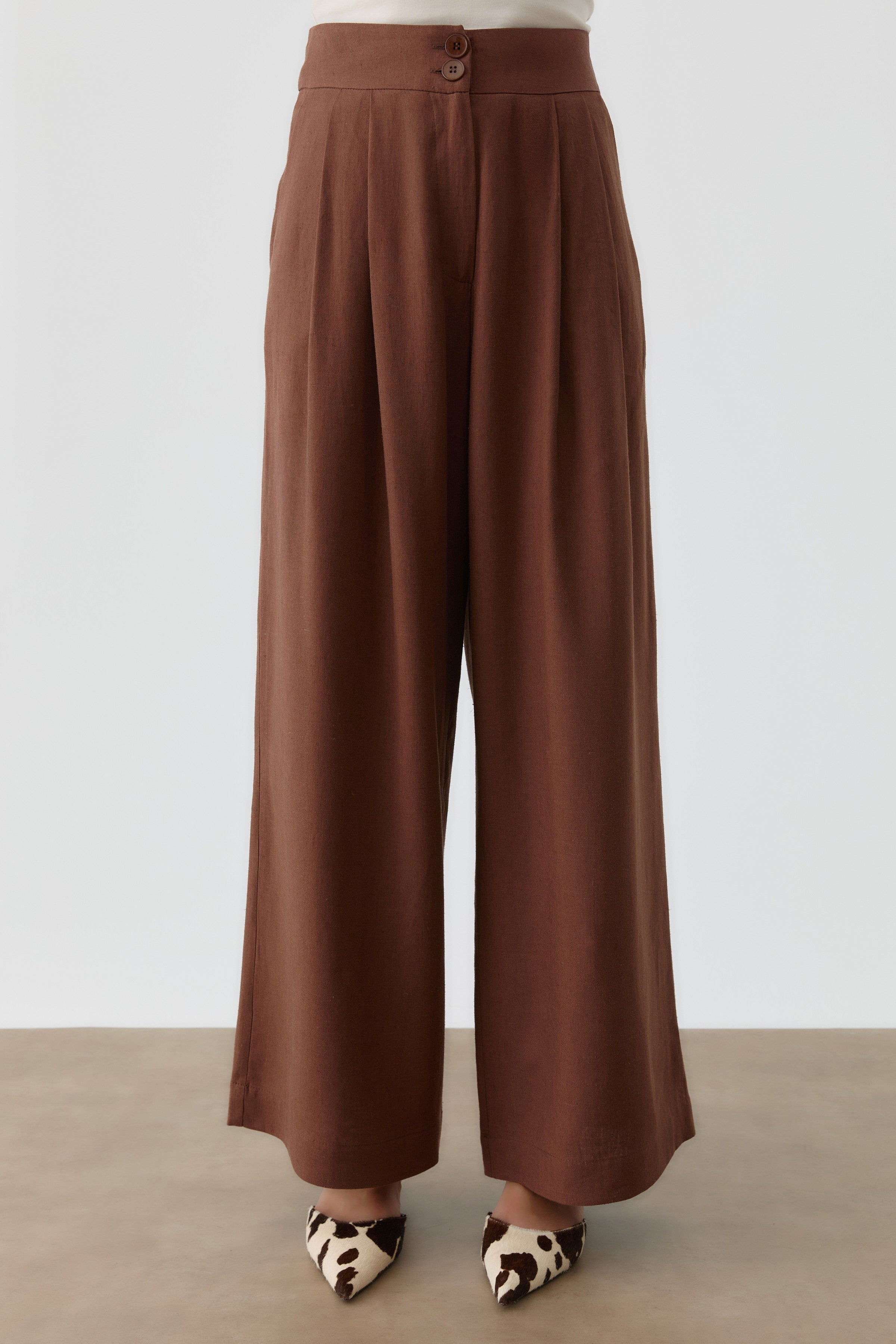 Pantalon en lin plissé - Marron foncé