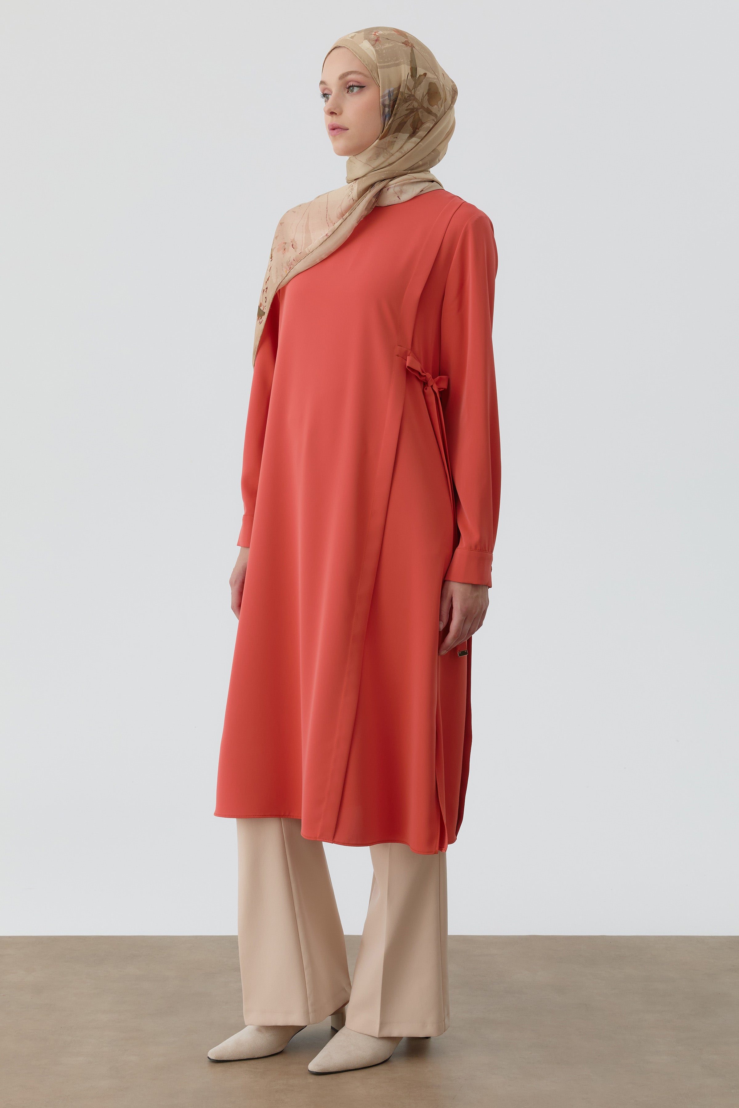 Tunique avec détails aller, à nouer sur le côté - Rouge-brique