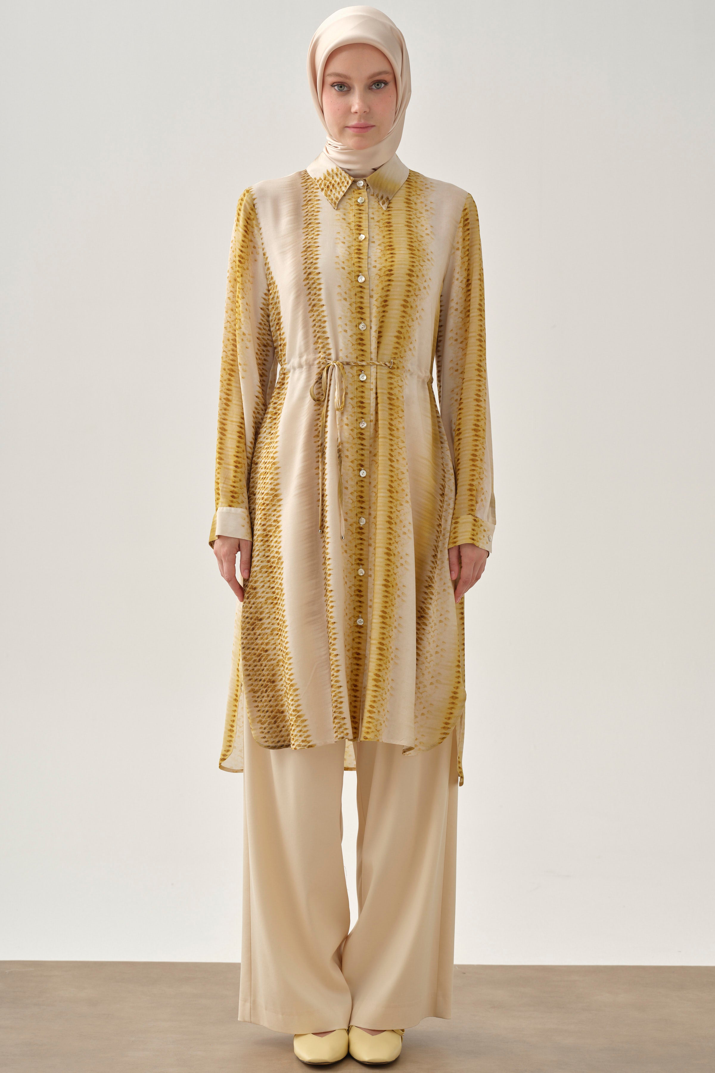 Tunique à lien à la taille - Beige