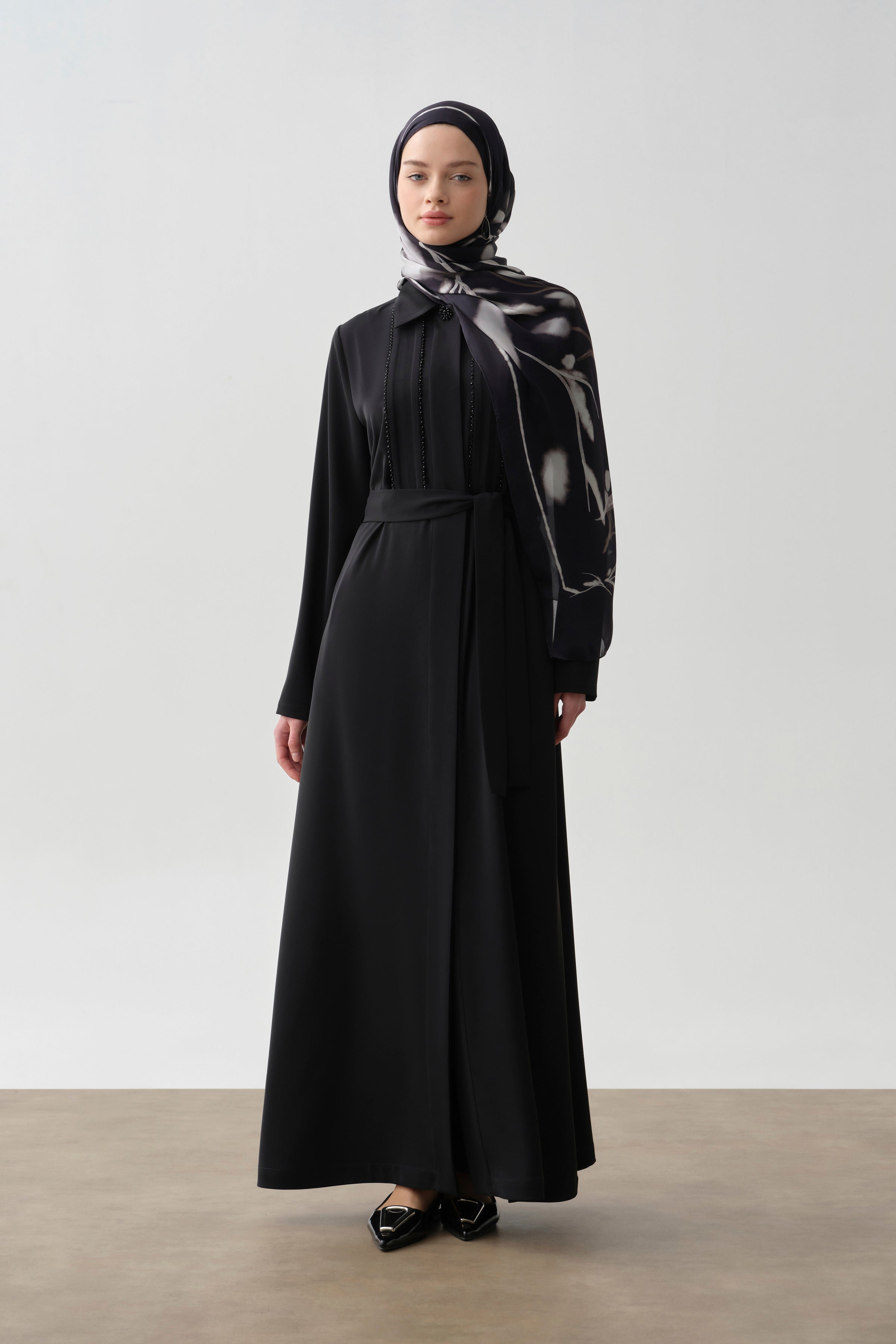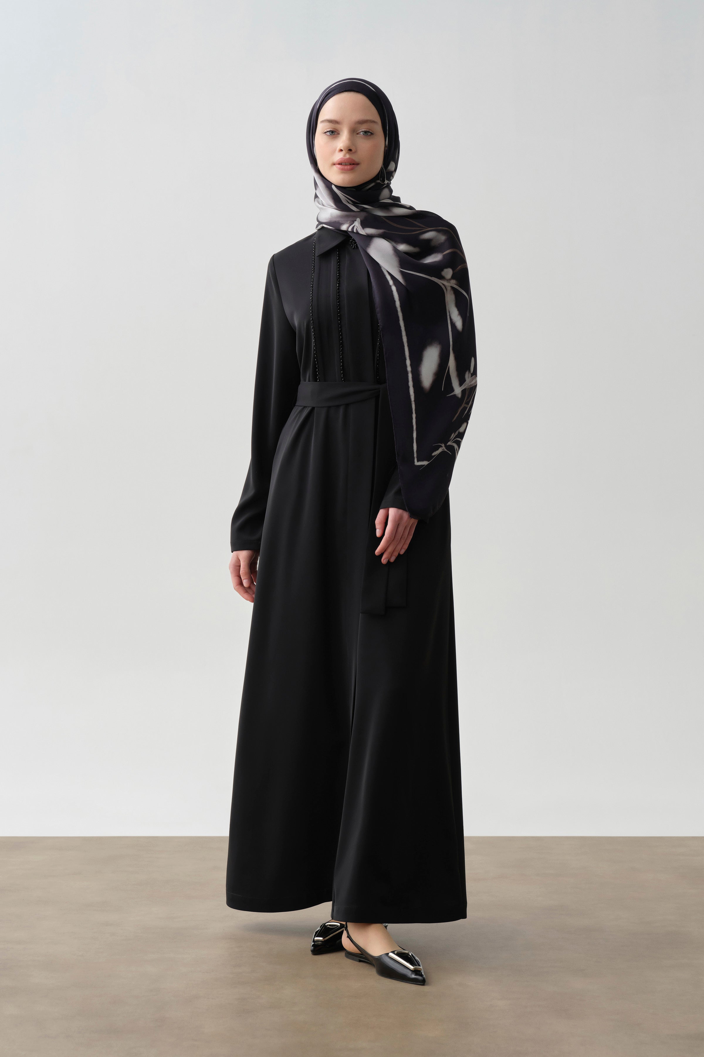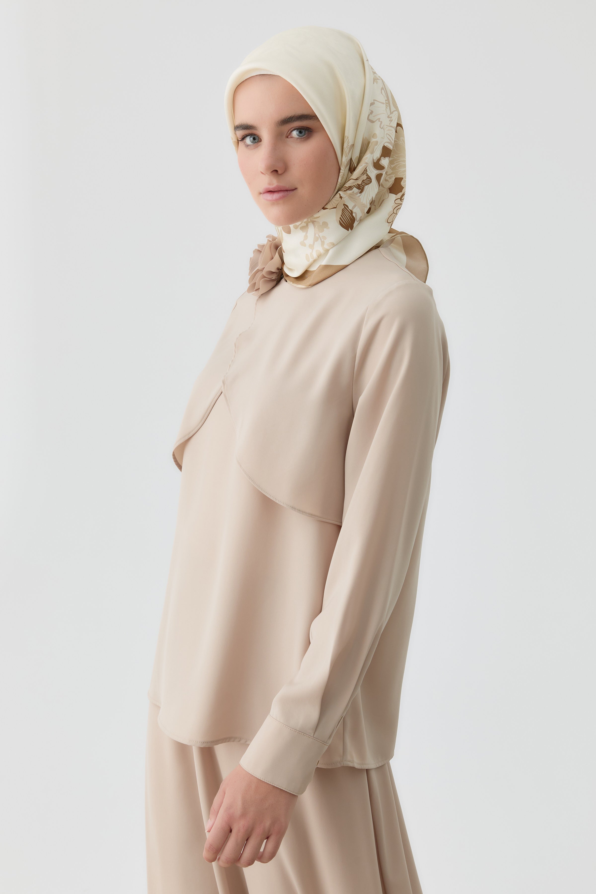 Tunique longue en mousseline garnie avec taille ceinturée - Écru