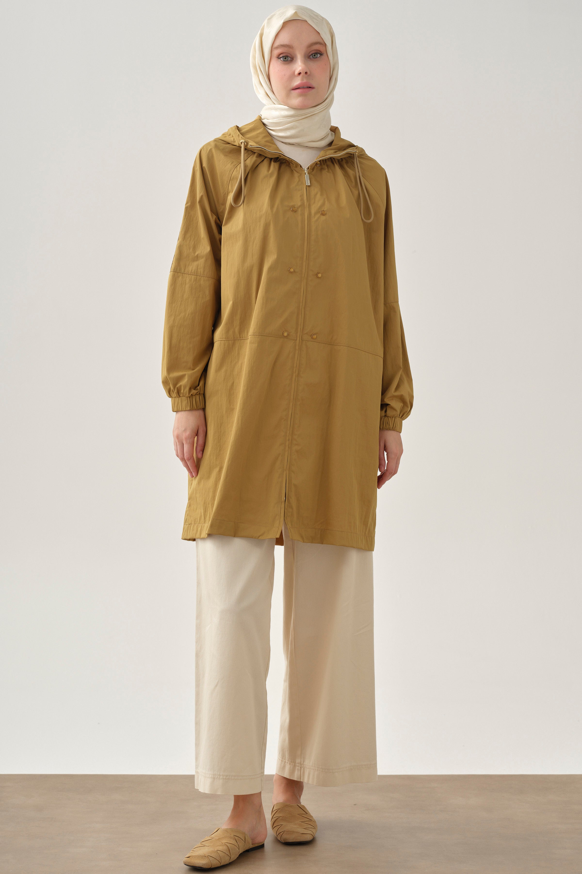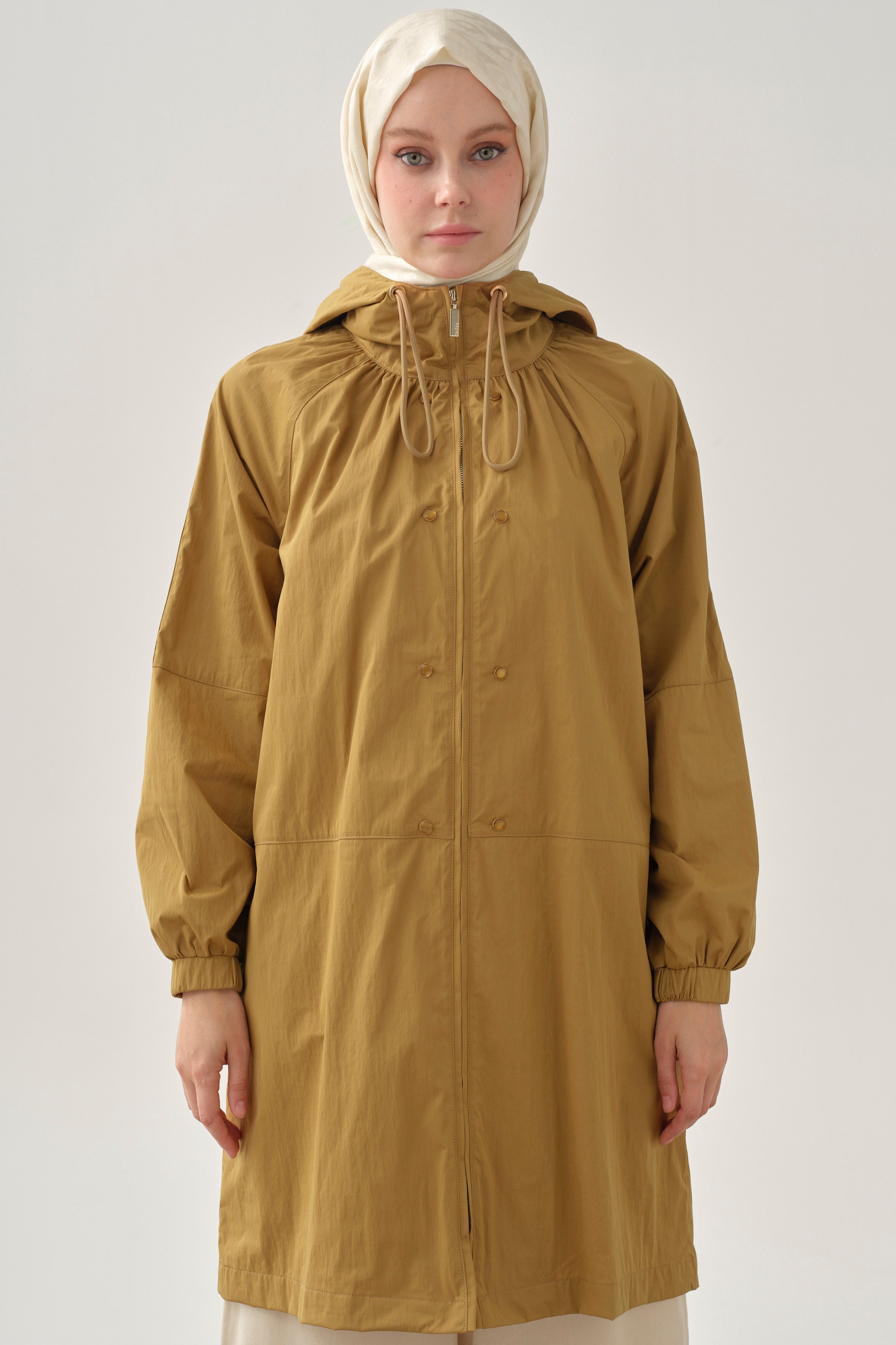 Imperméable avec cordon coulissant et fermeture éclair - Chamois