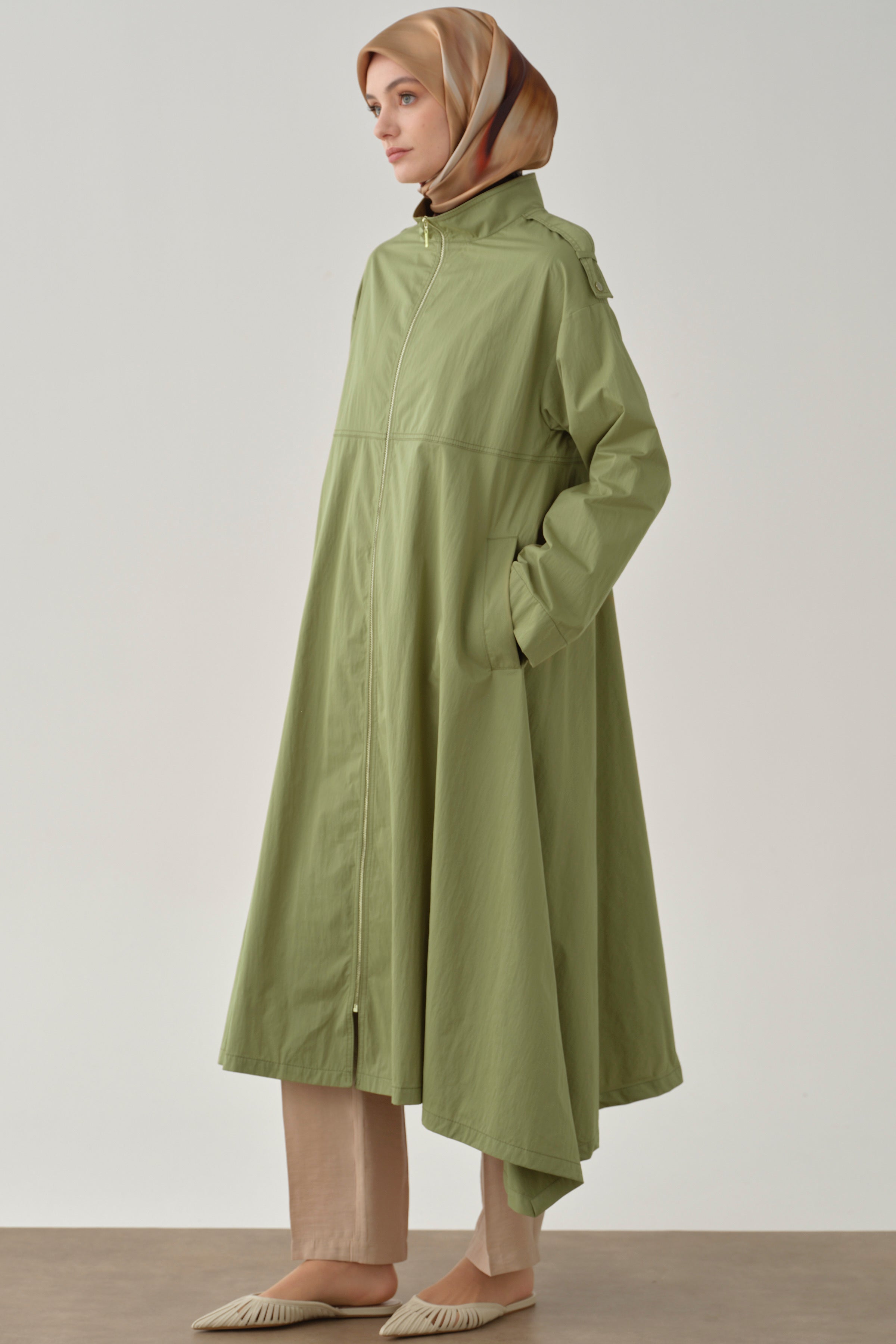Imperméable à coupe asymétrique avec manches basses - Olive