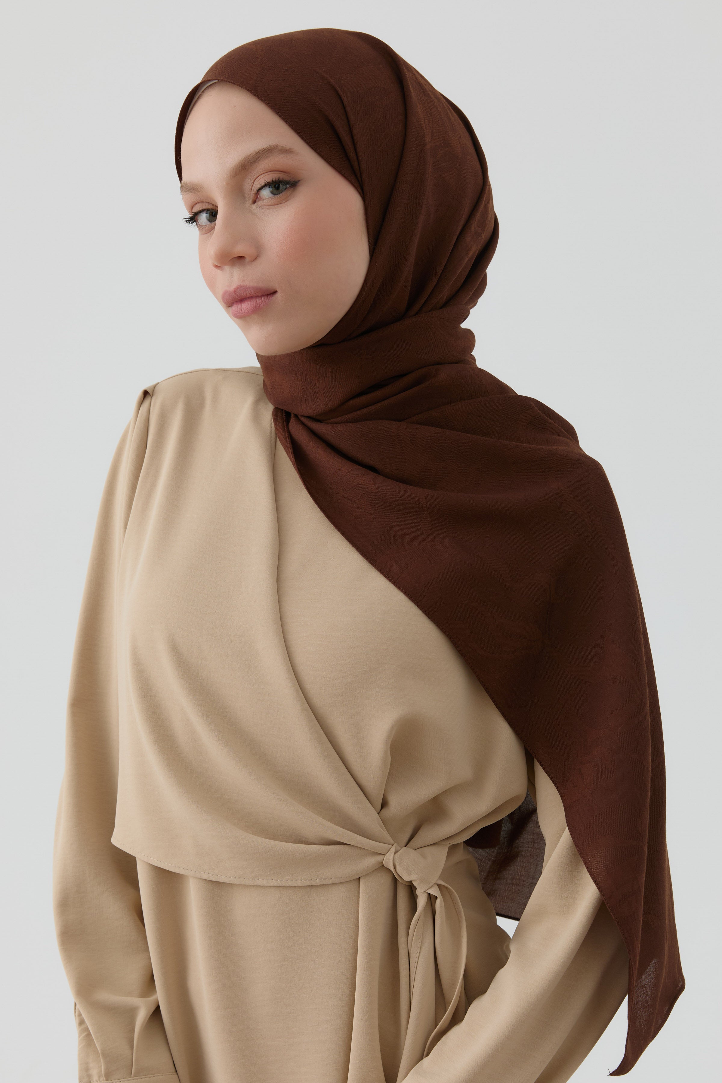 Châle en coton motif ondulé - Café