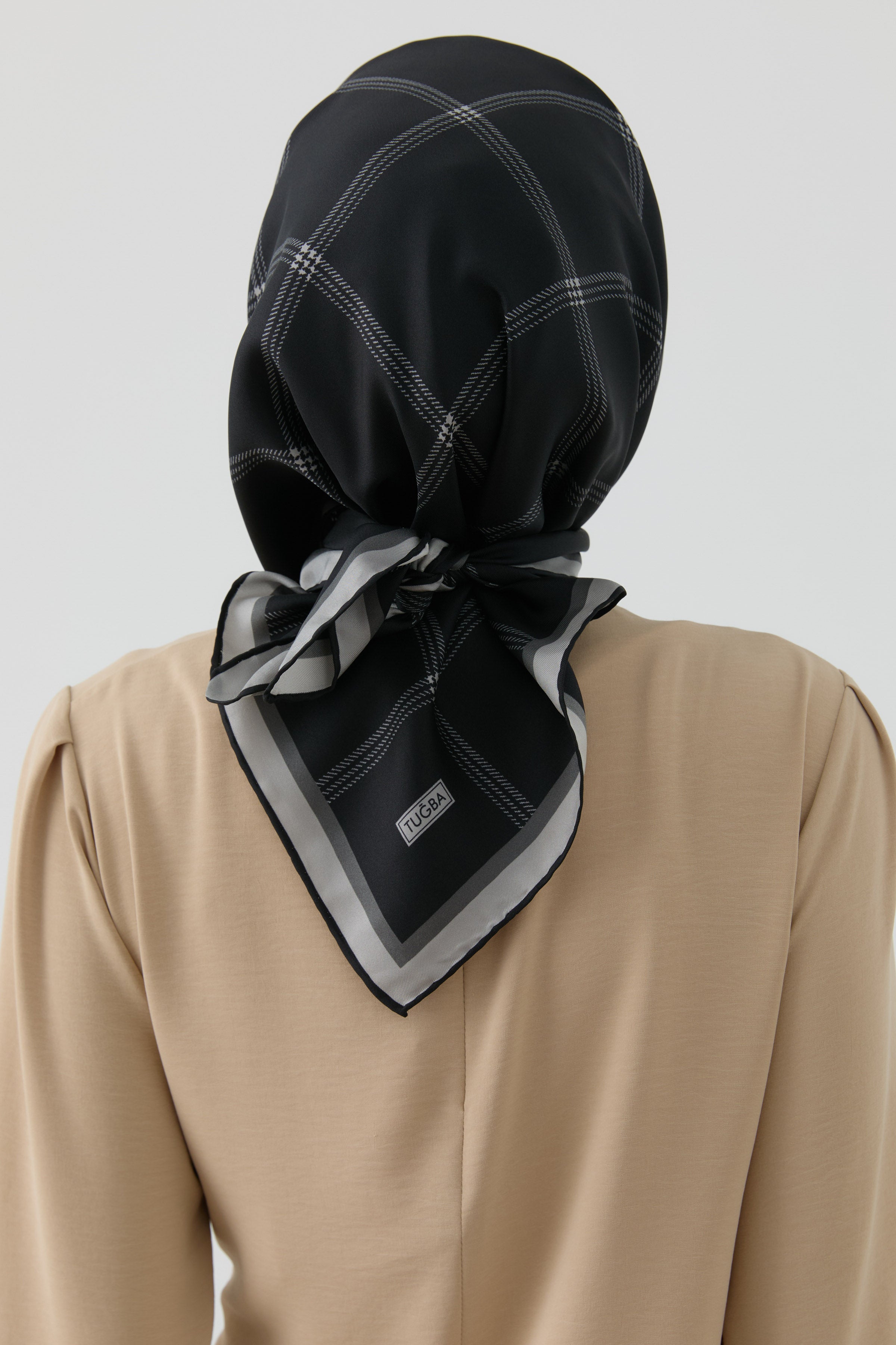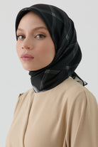Écharpe en soie twill à motif de lignes carrées - Noir