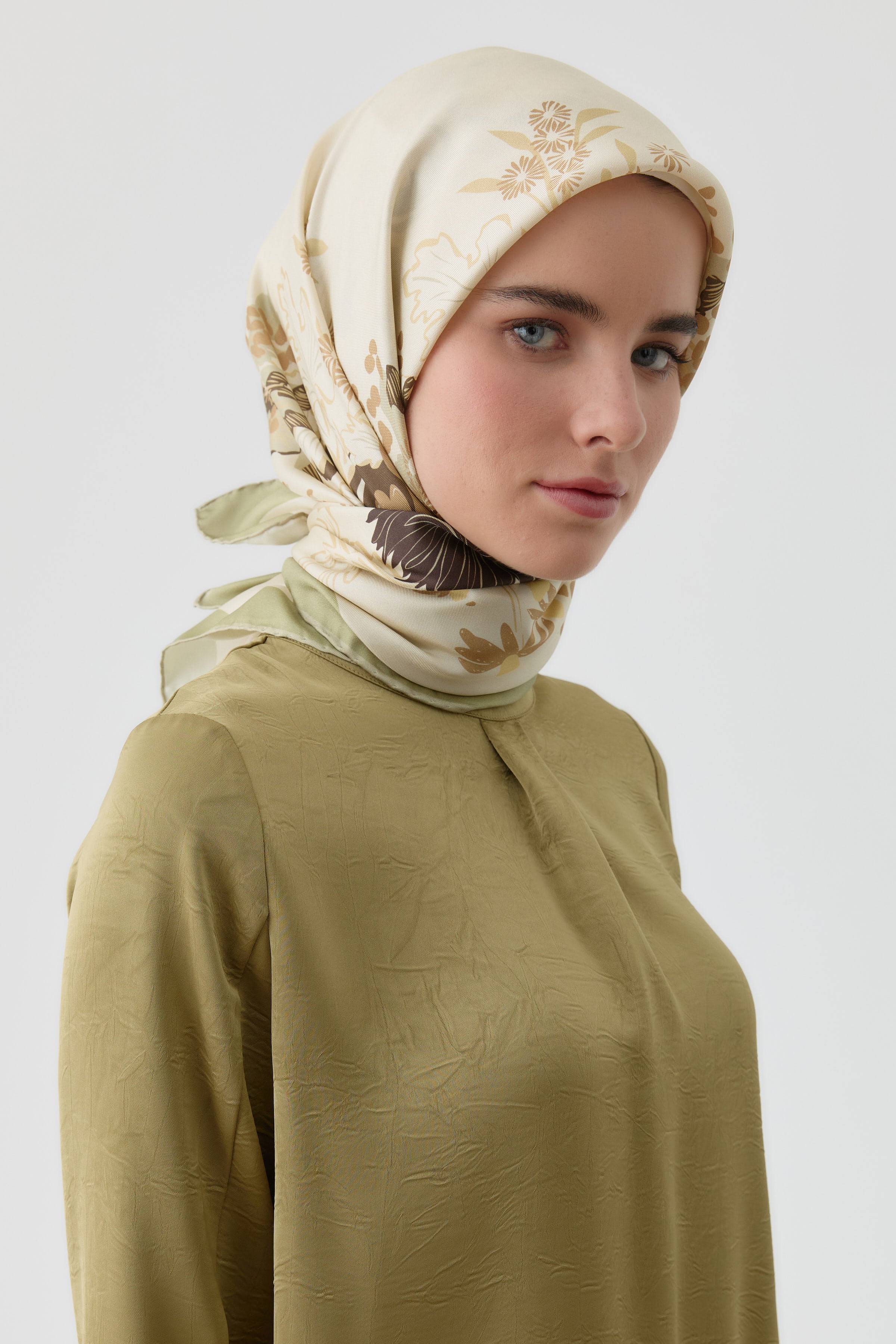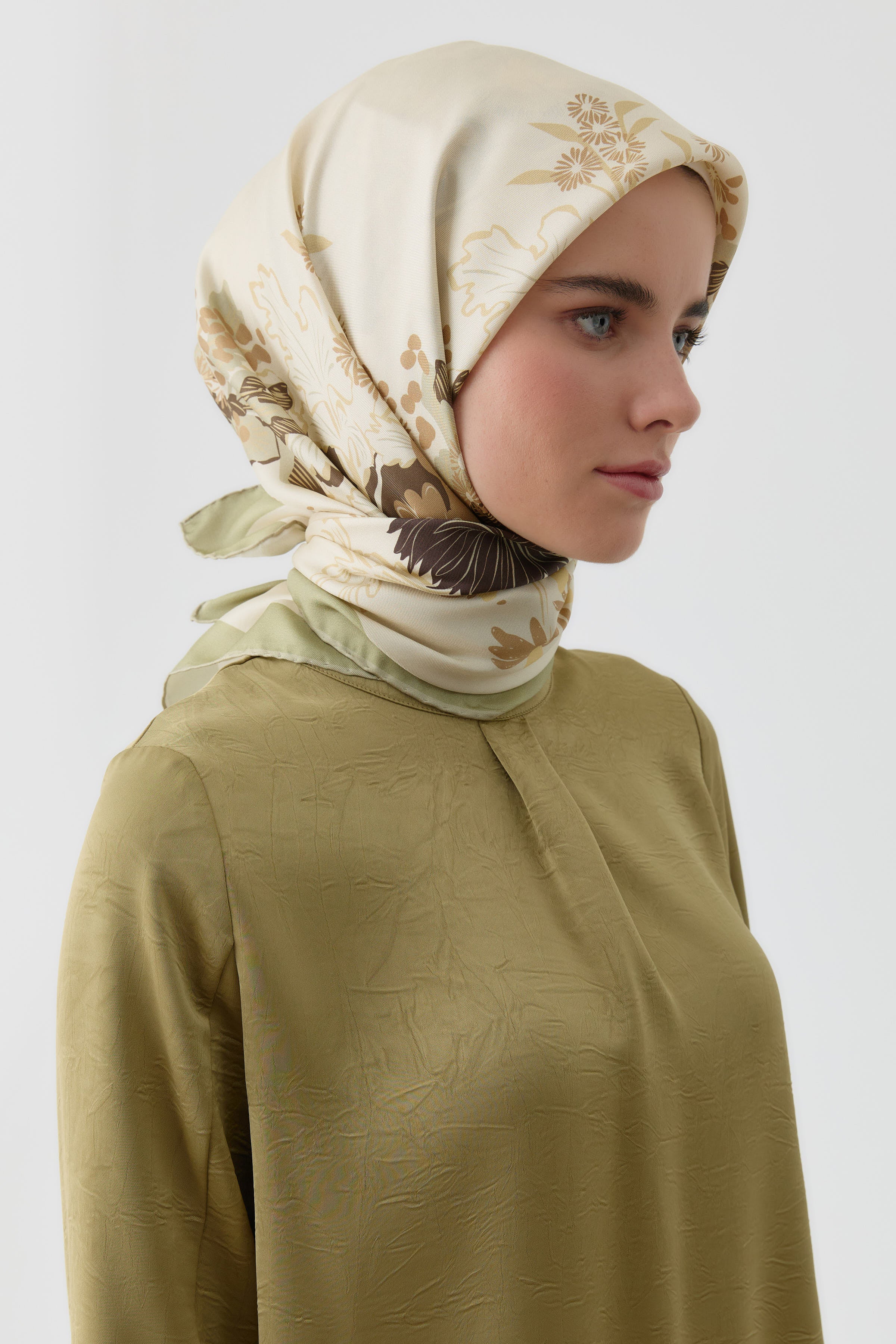 Écharpe en soie twill Feraye - Kaki