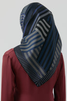Écharpe en soie twill géométrique Tuğba - Noir - Bleu marine