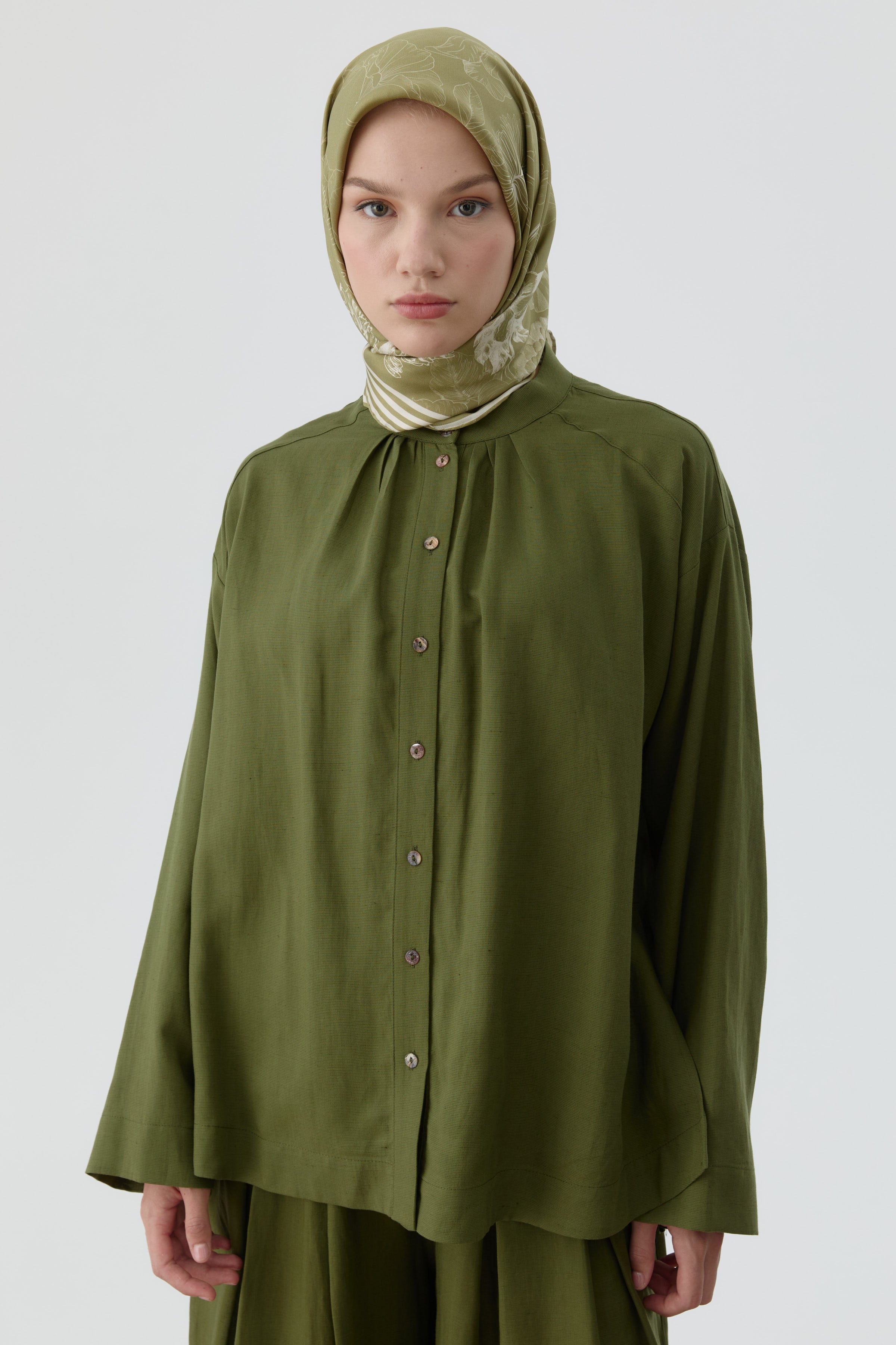 Écharpe en soie twill Nazenin - Olive