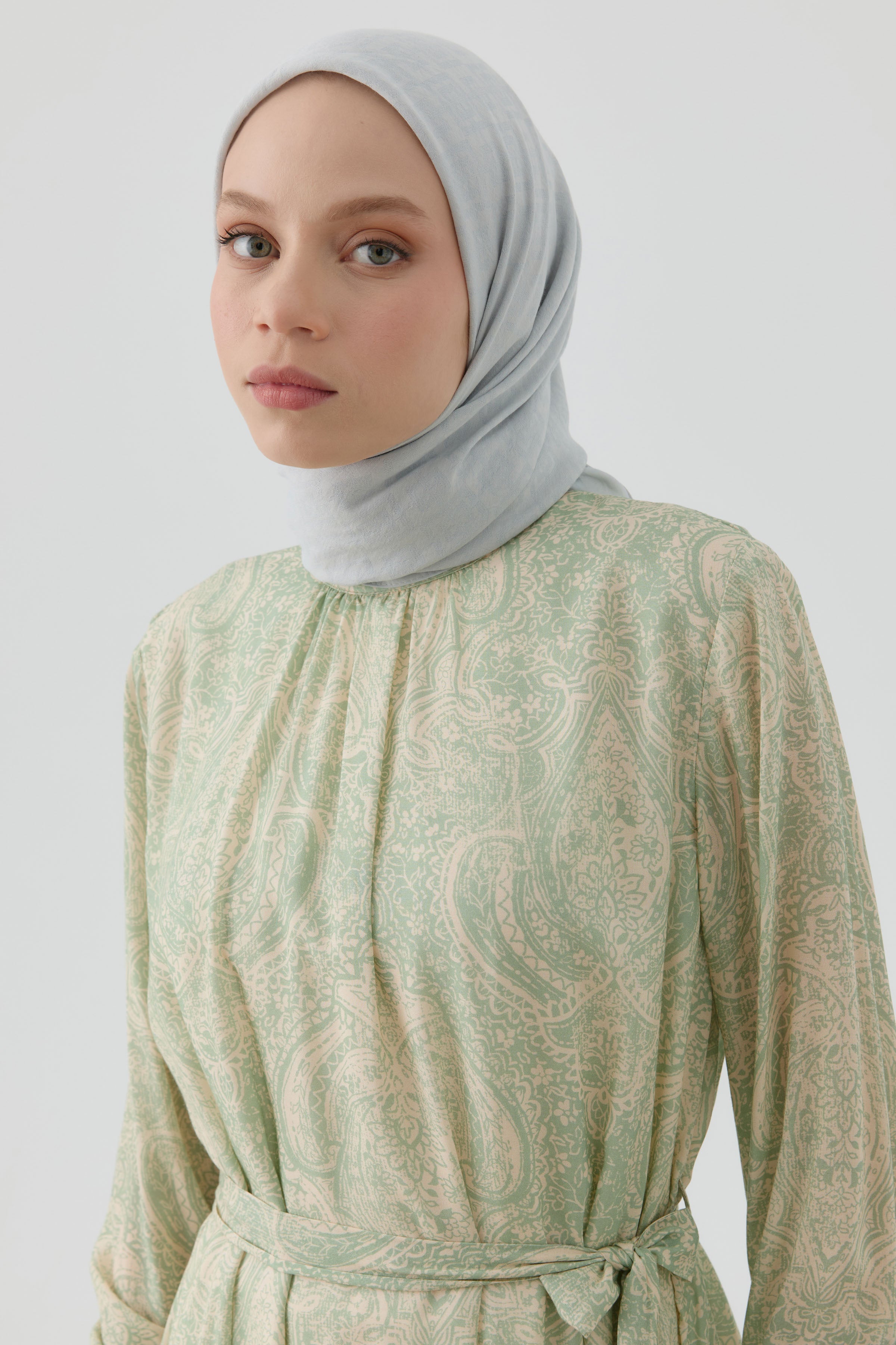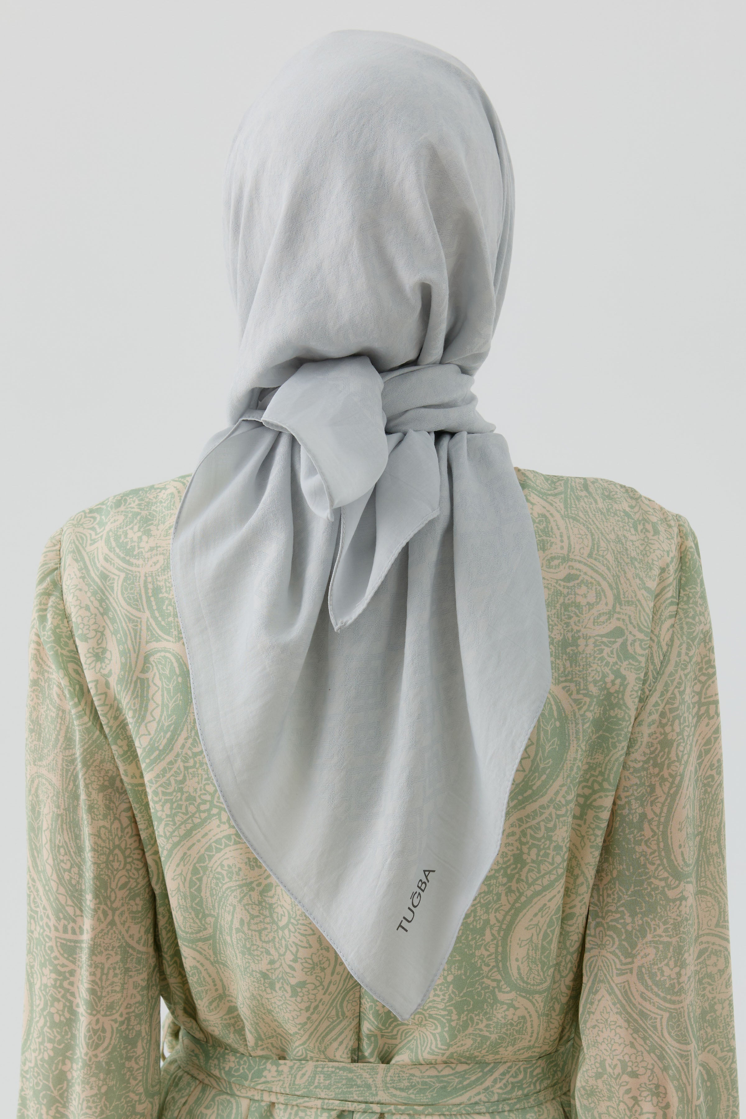 Écharpe en soie twill géométrique Tuğba - Vert clair