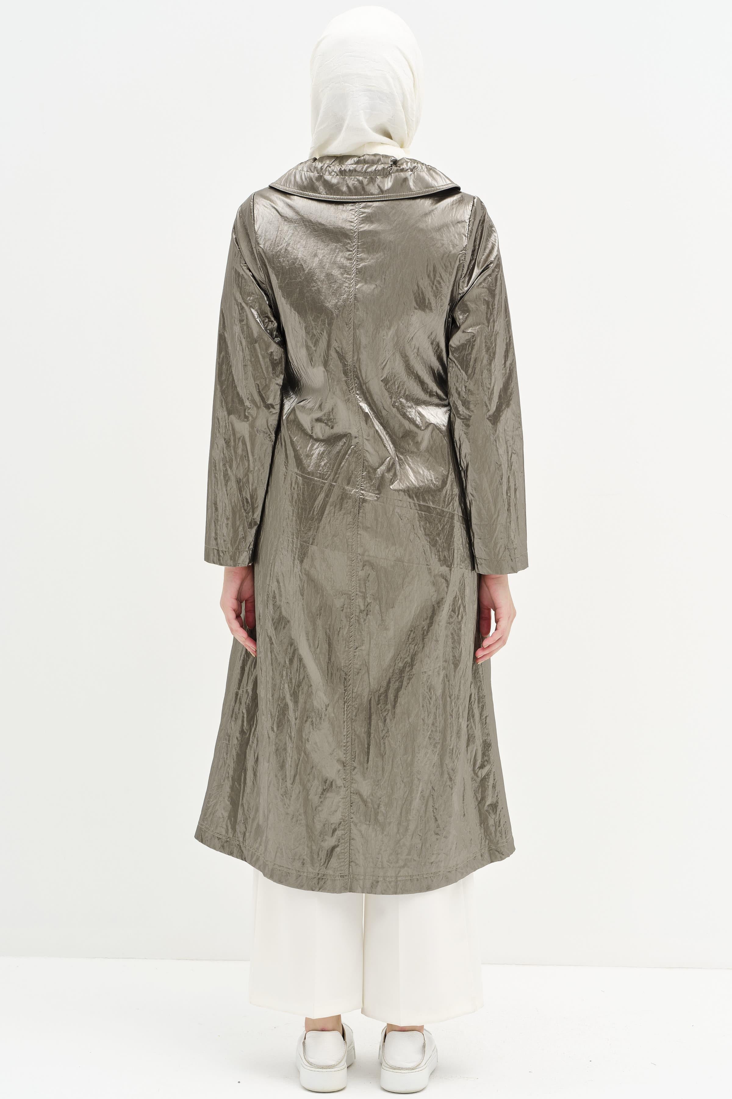 Imperméable avec poches à rabat et taille élastique - Gris