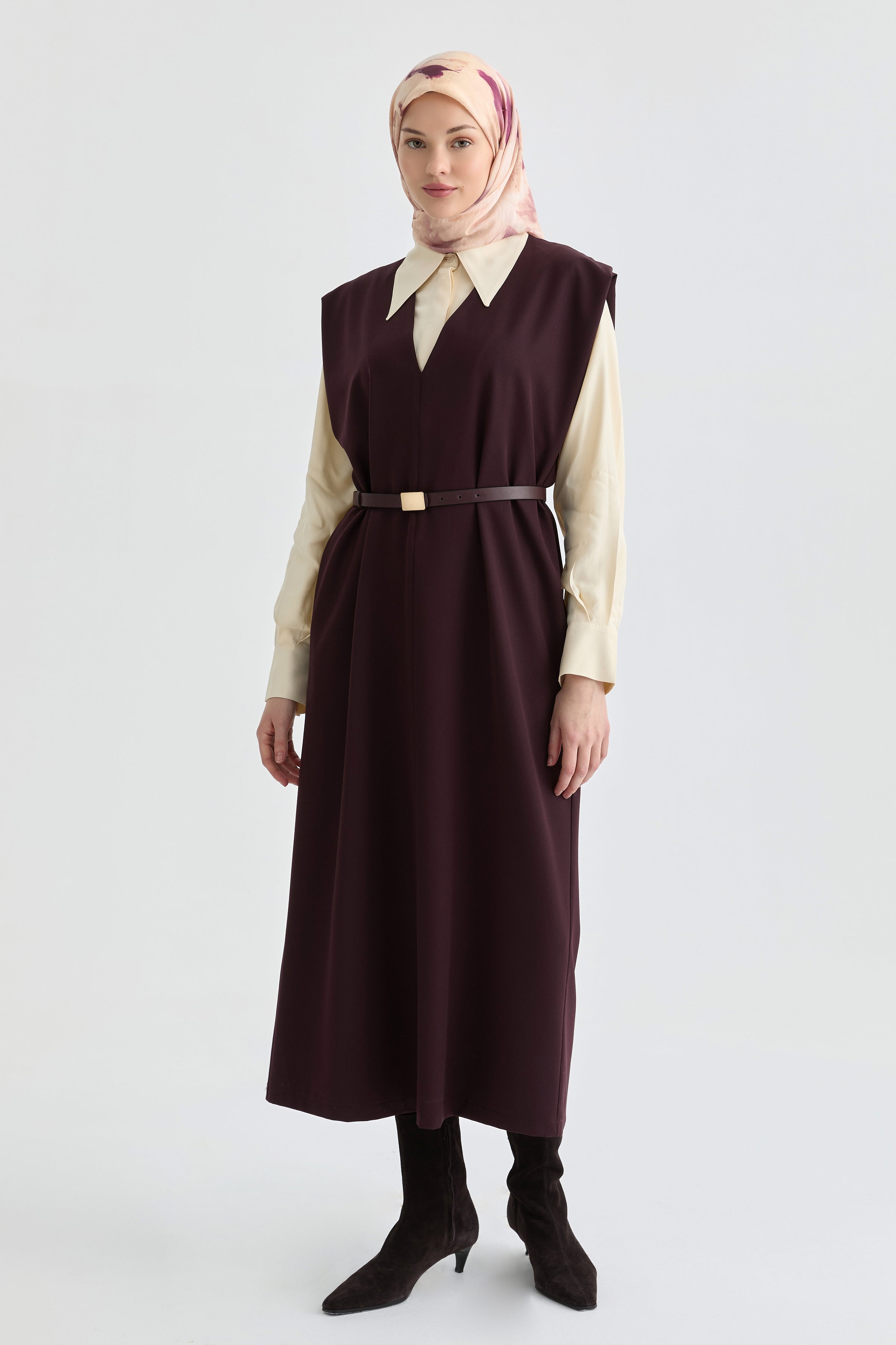 Jupe-robe à encolure en V - Bordeaux