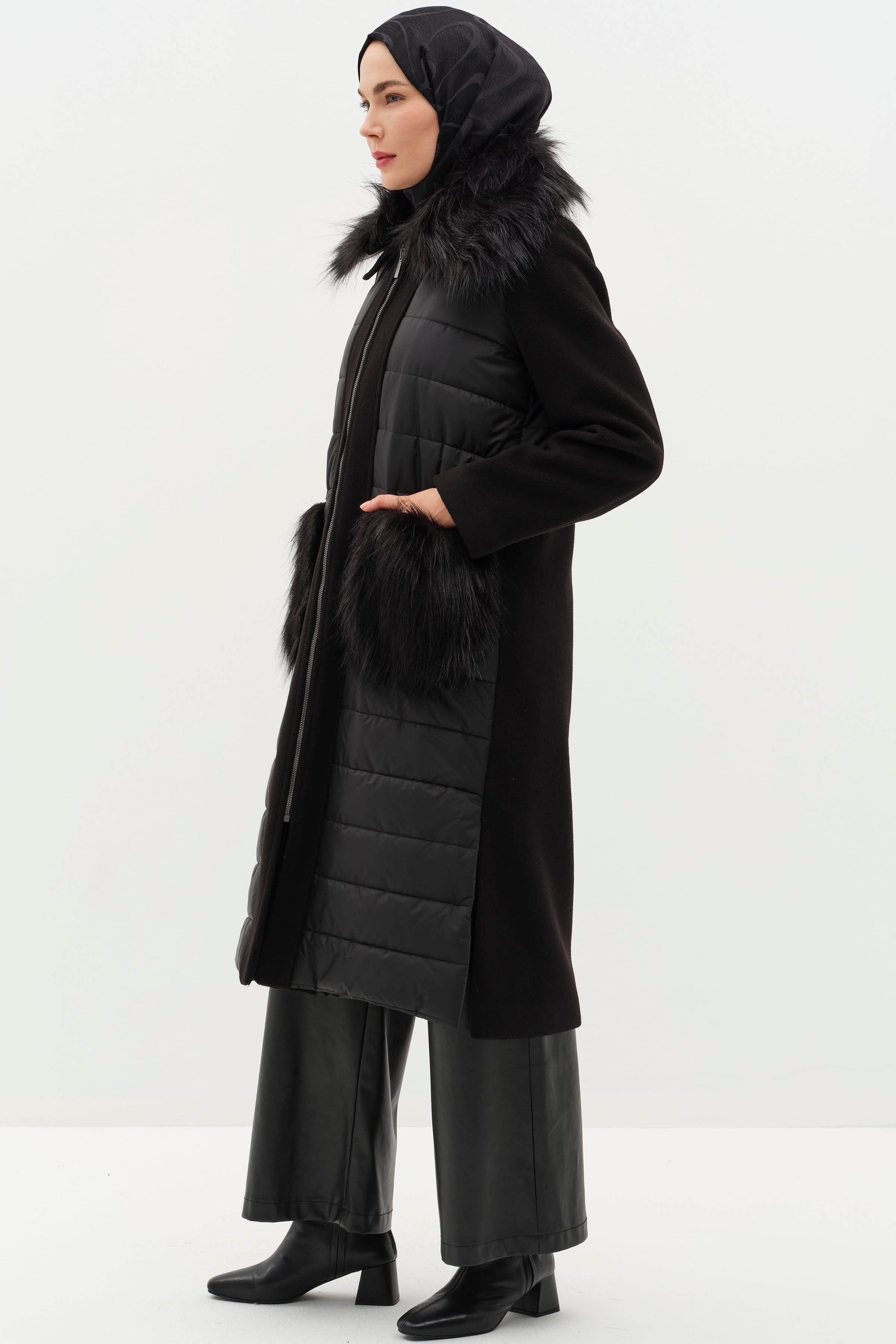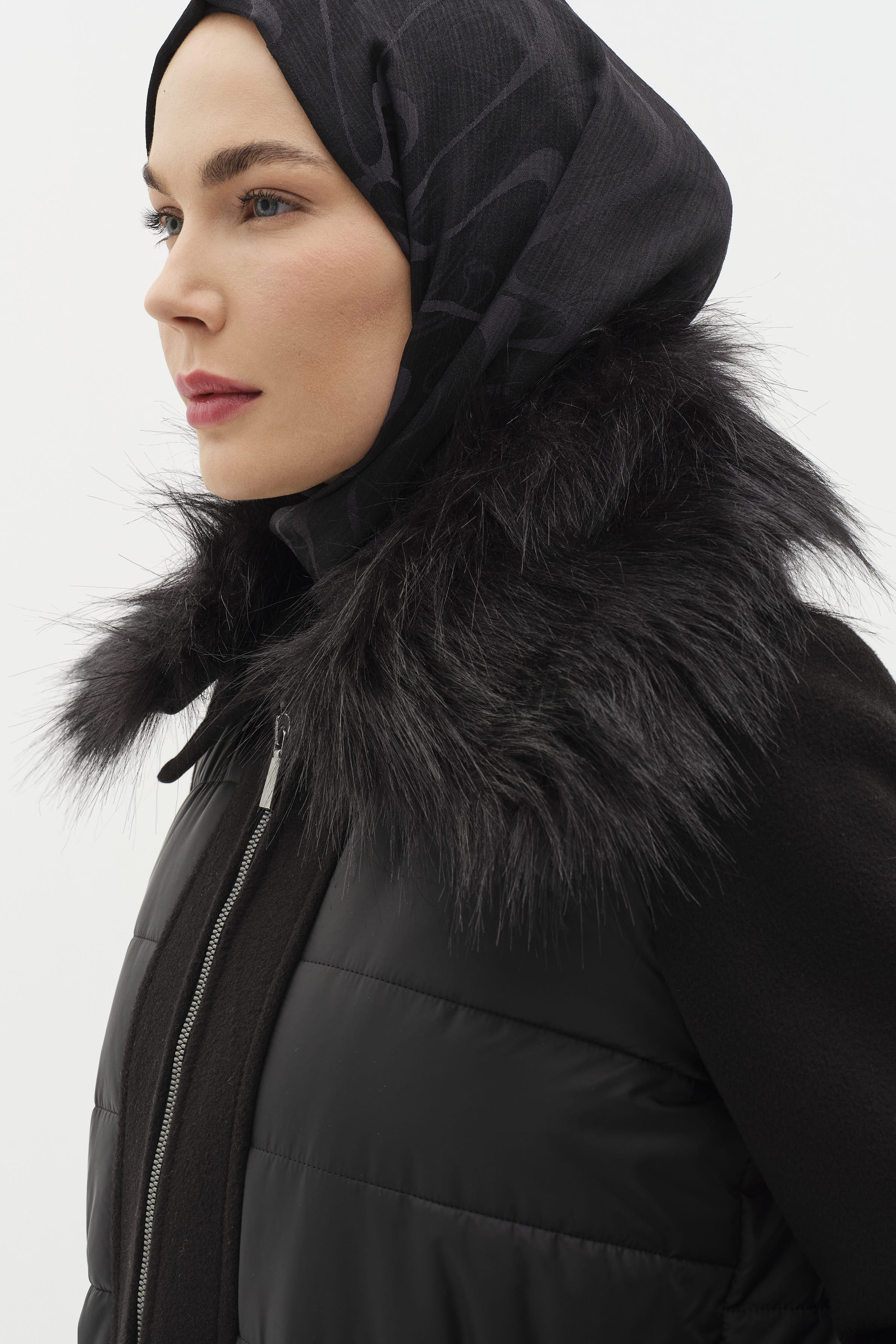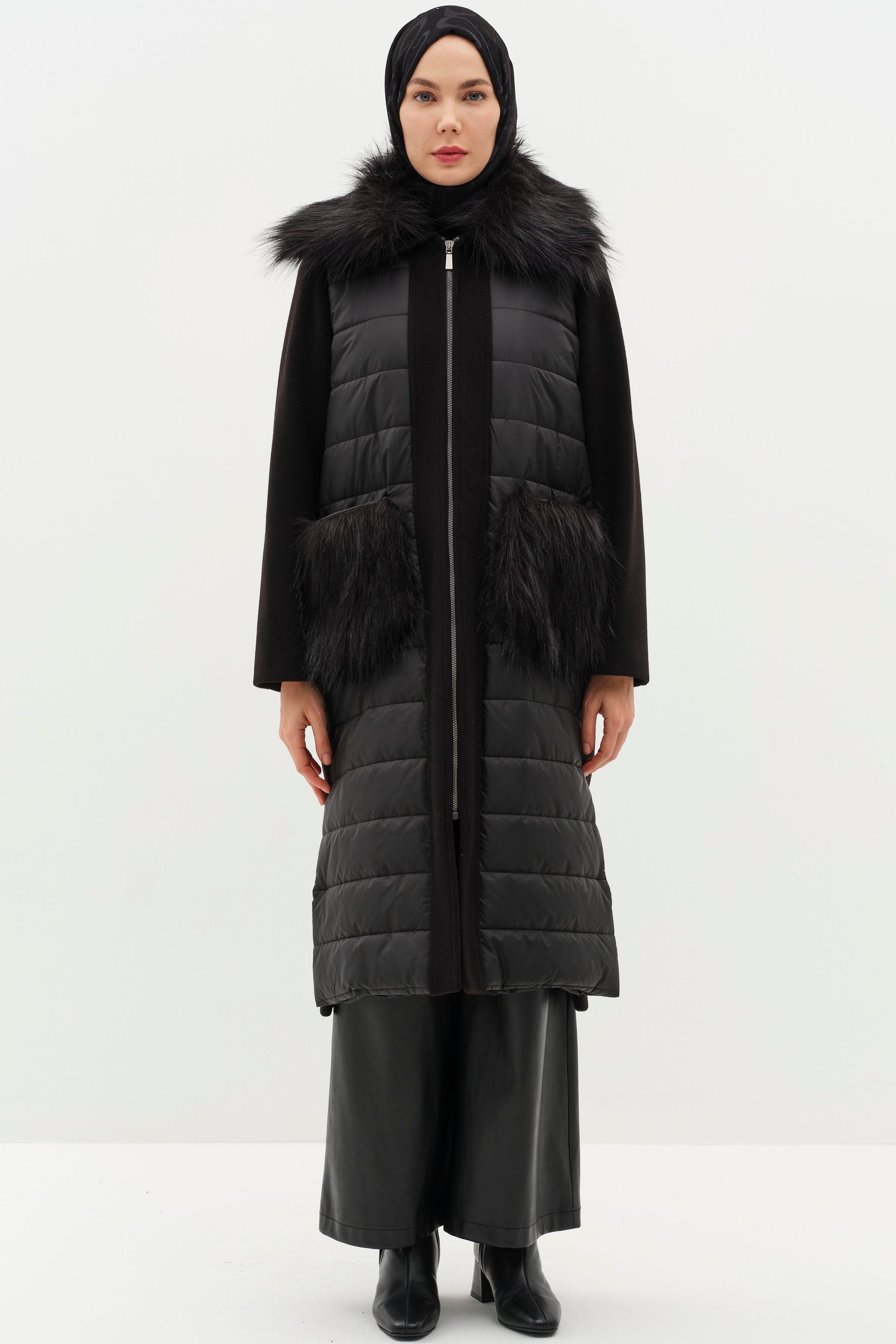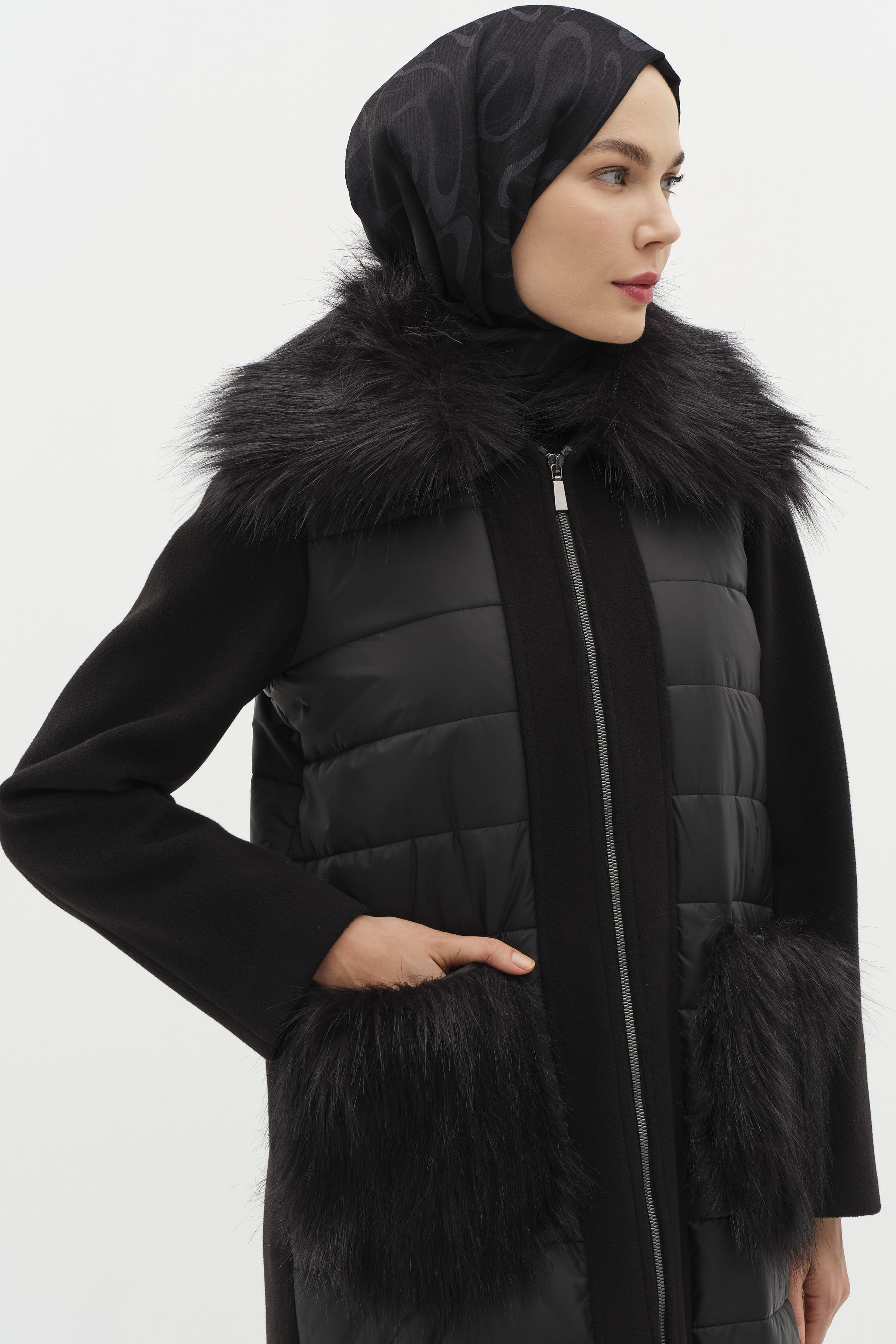 Abaya en tricot à capuche et fermeture éclair - Blue marine