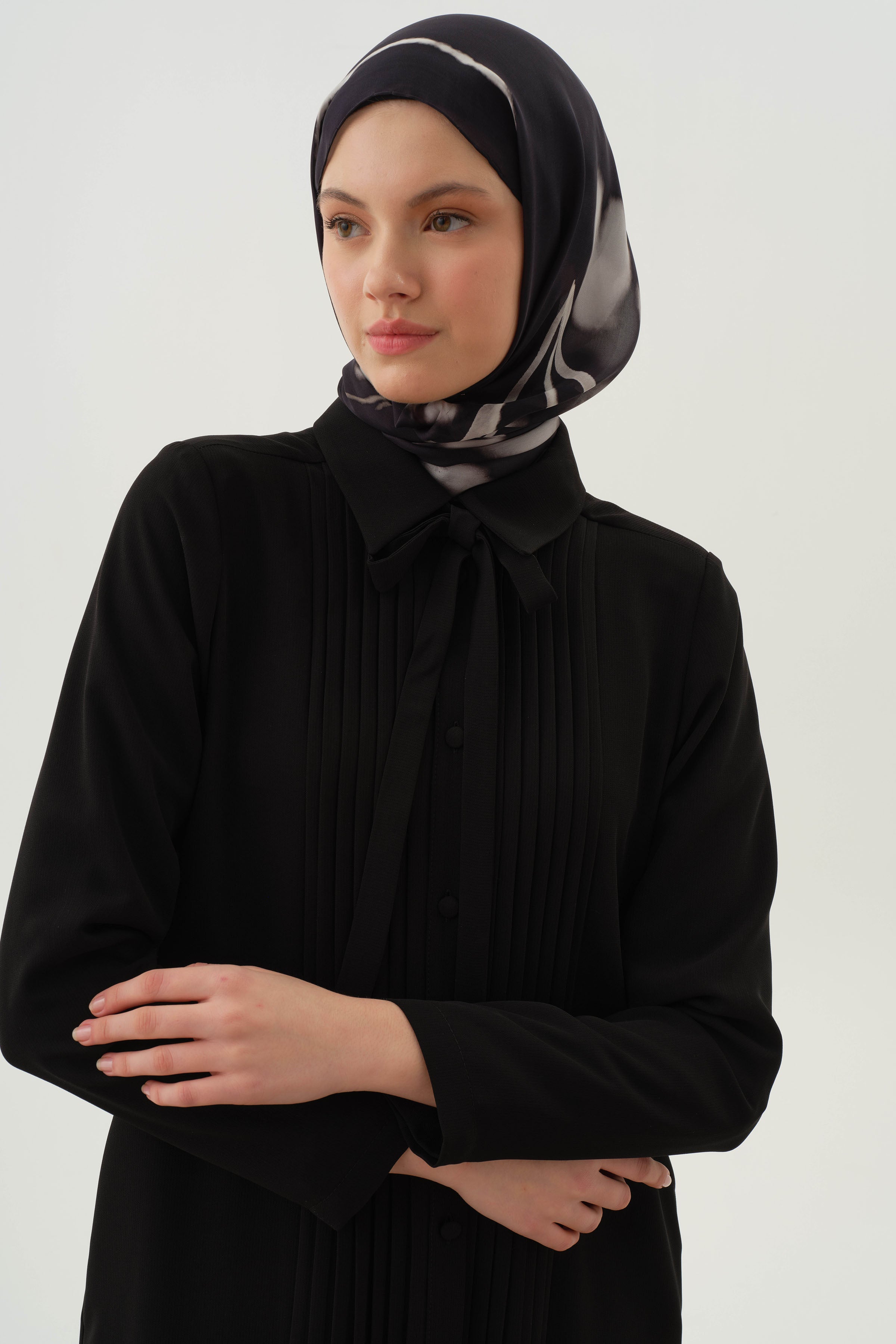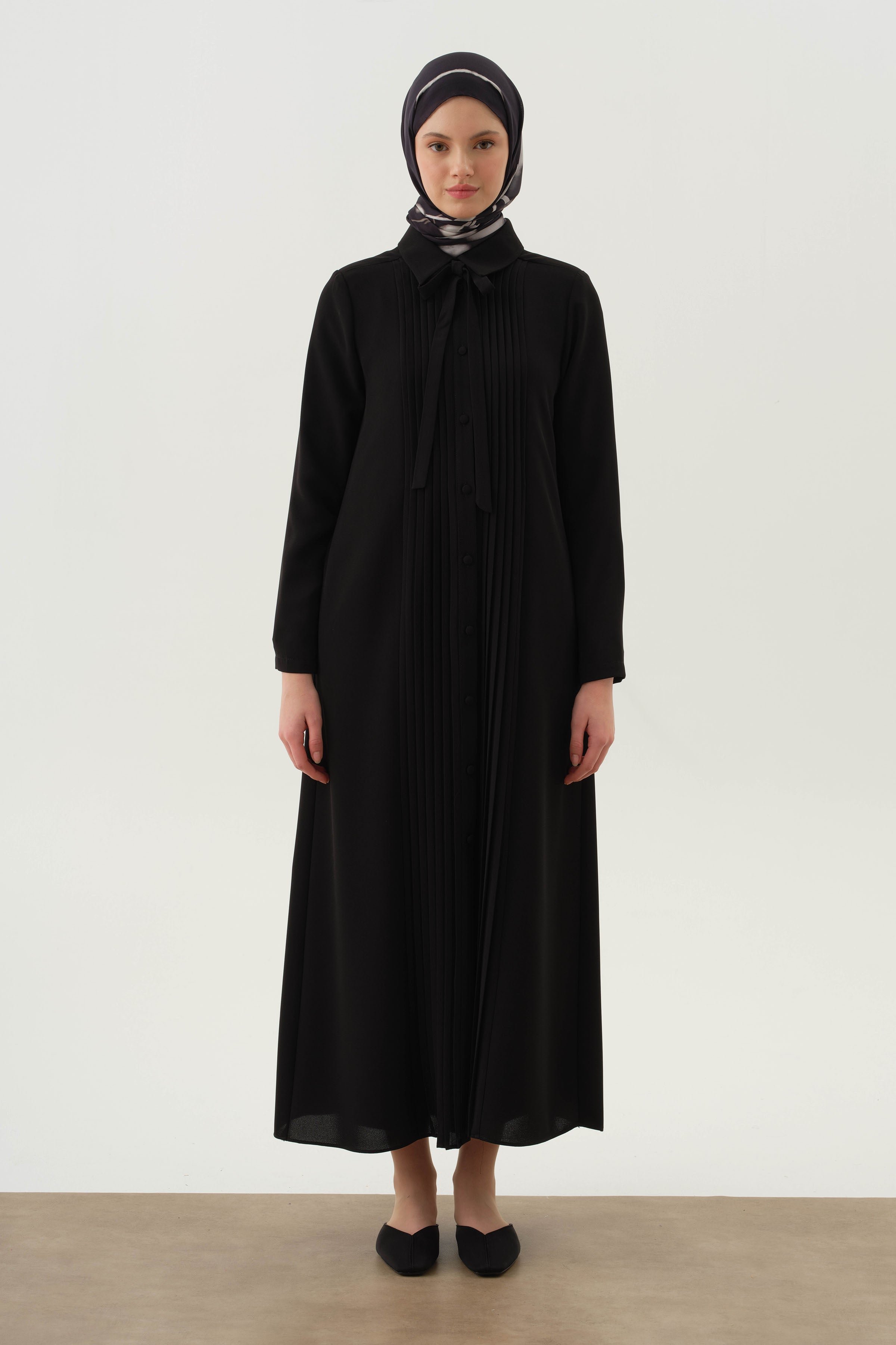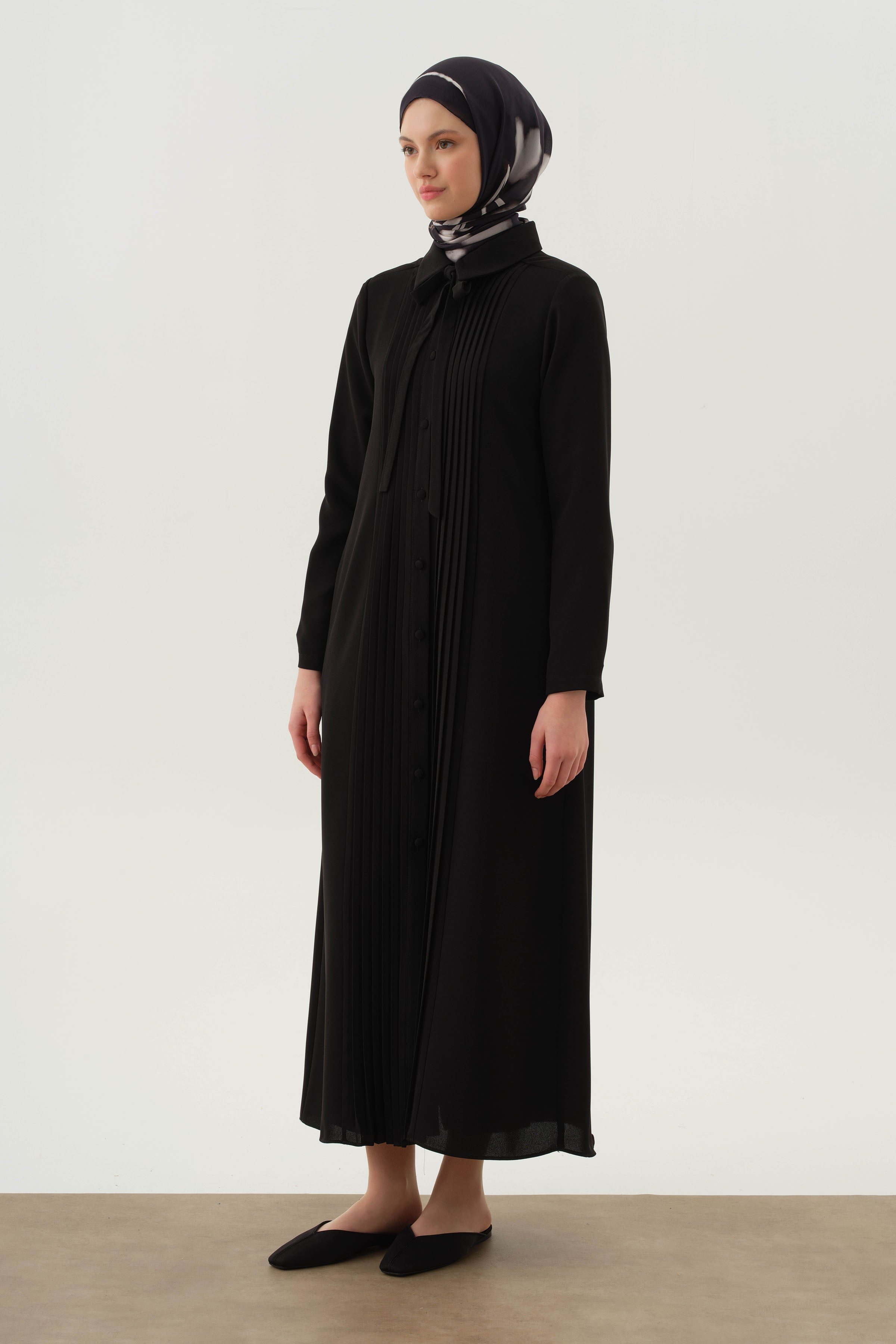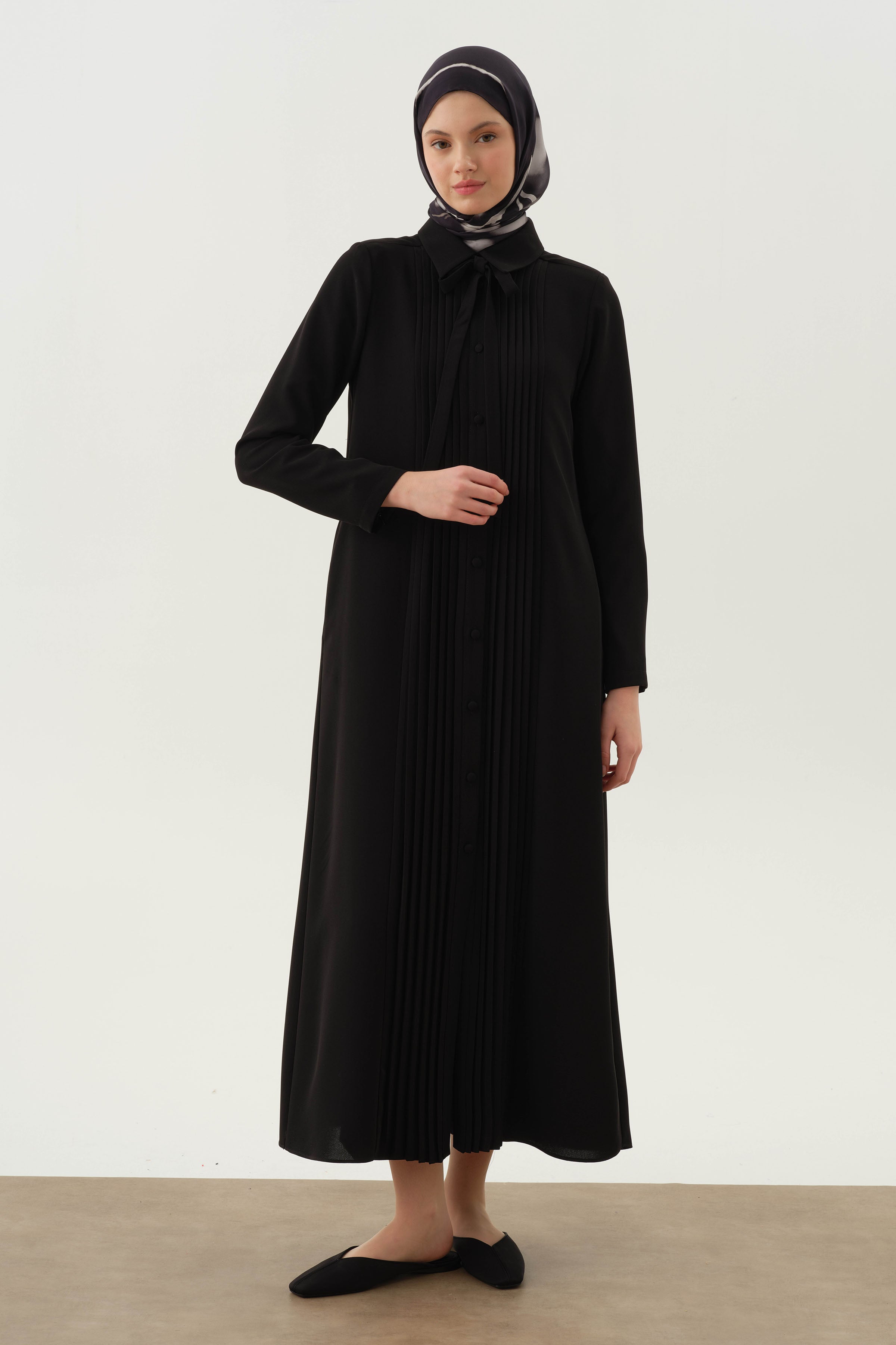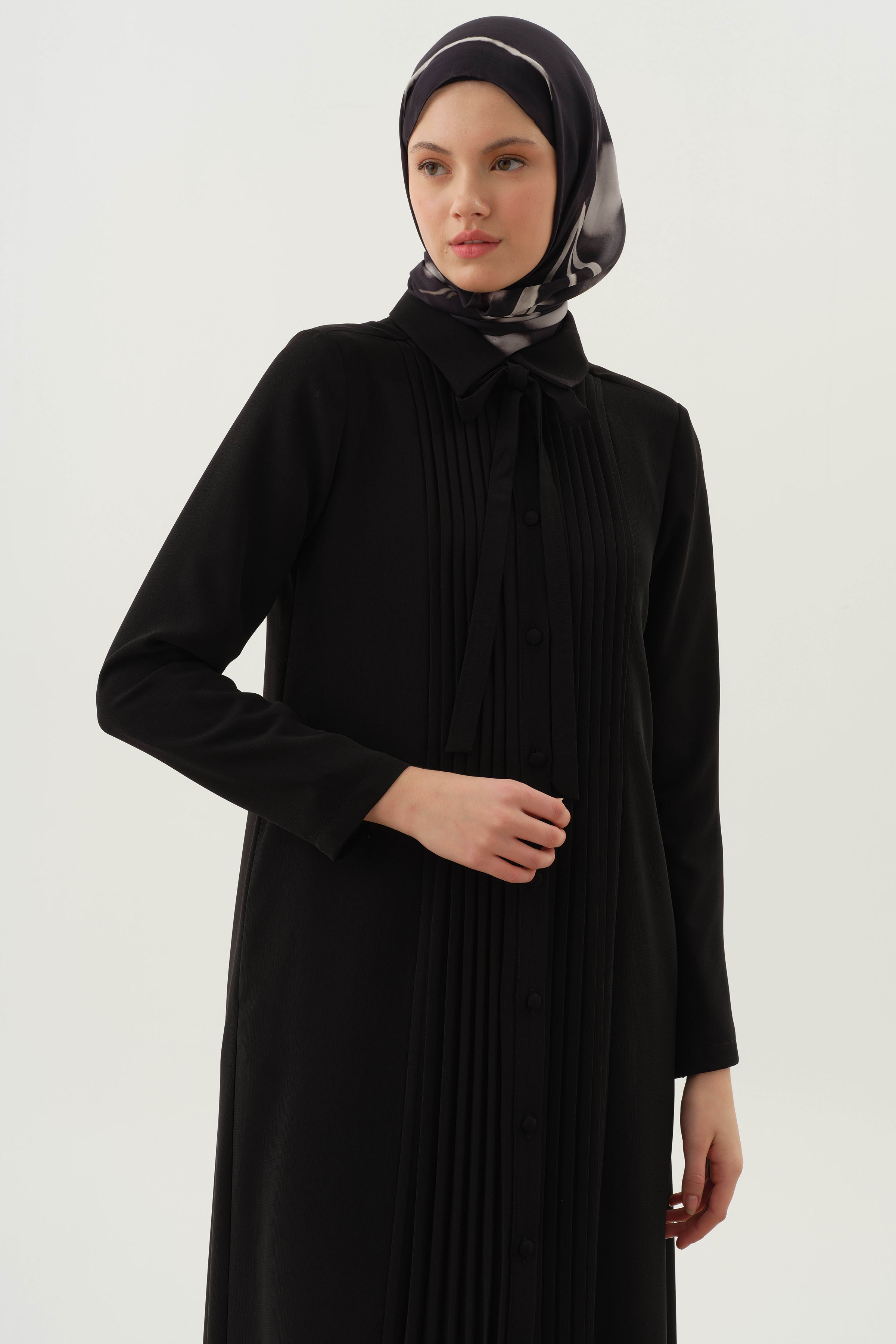 Pardessus à col lavallière plissé - Noir