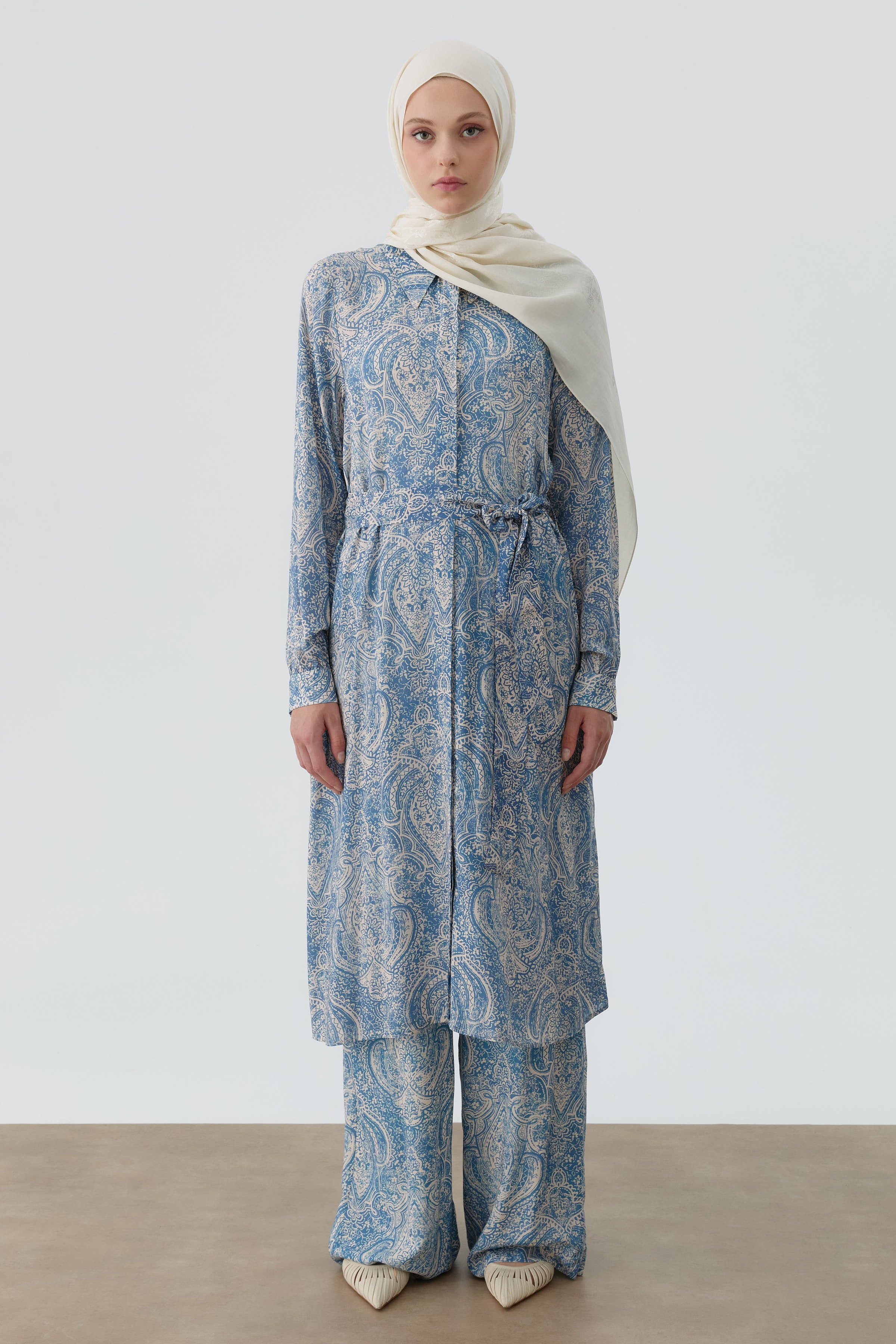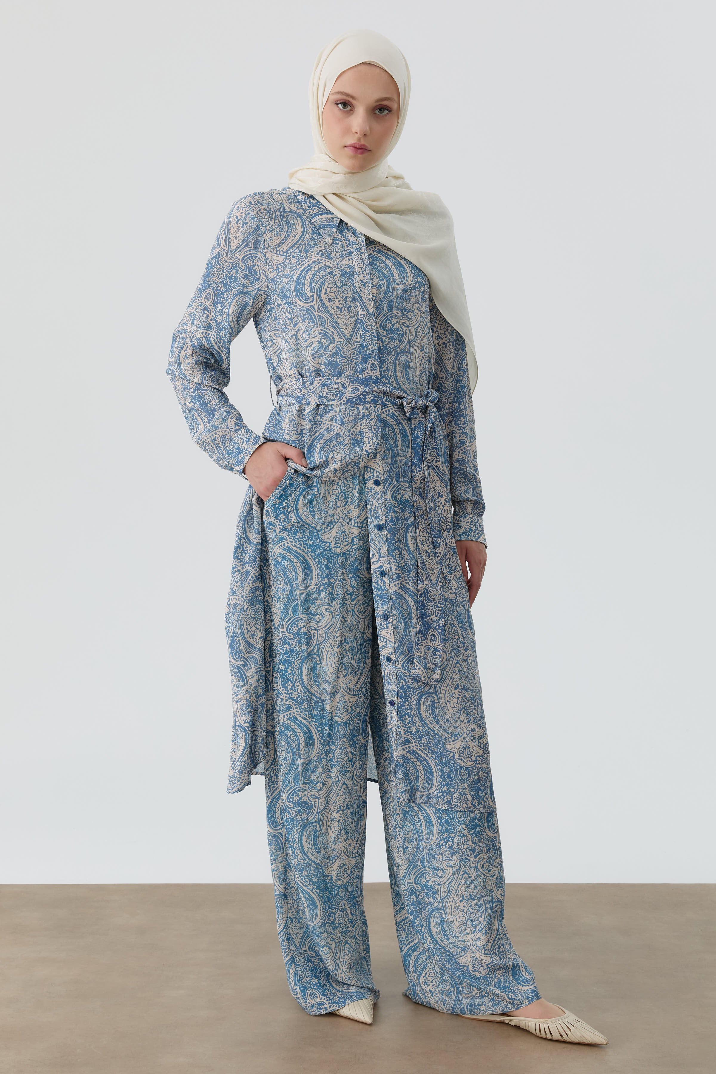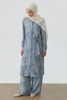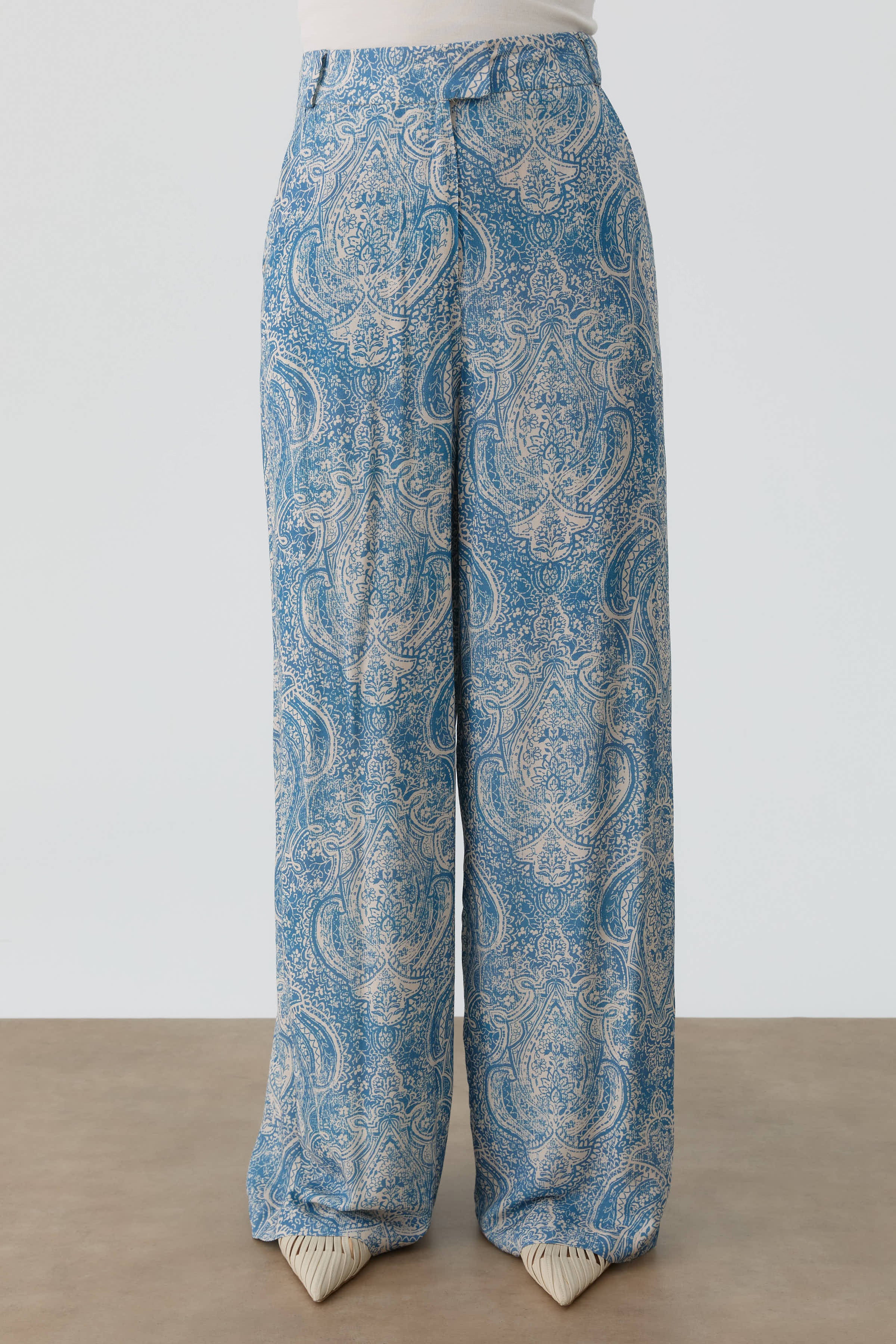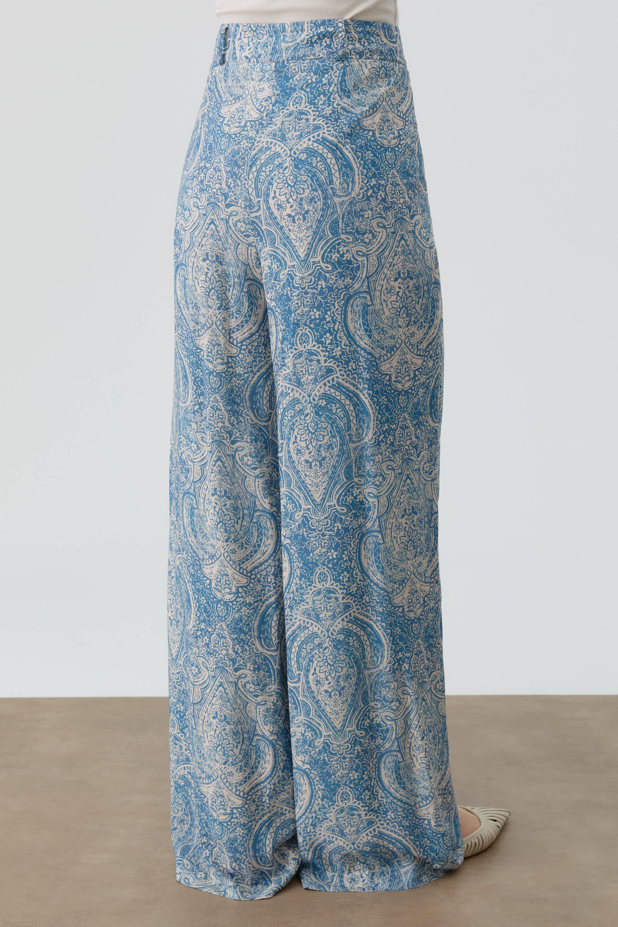 Pantalon à jambes larges à motif châle - Indigo