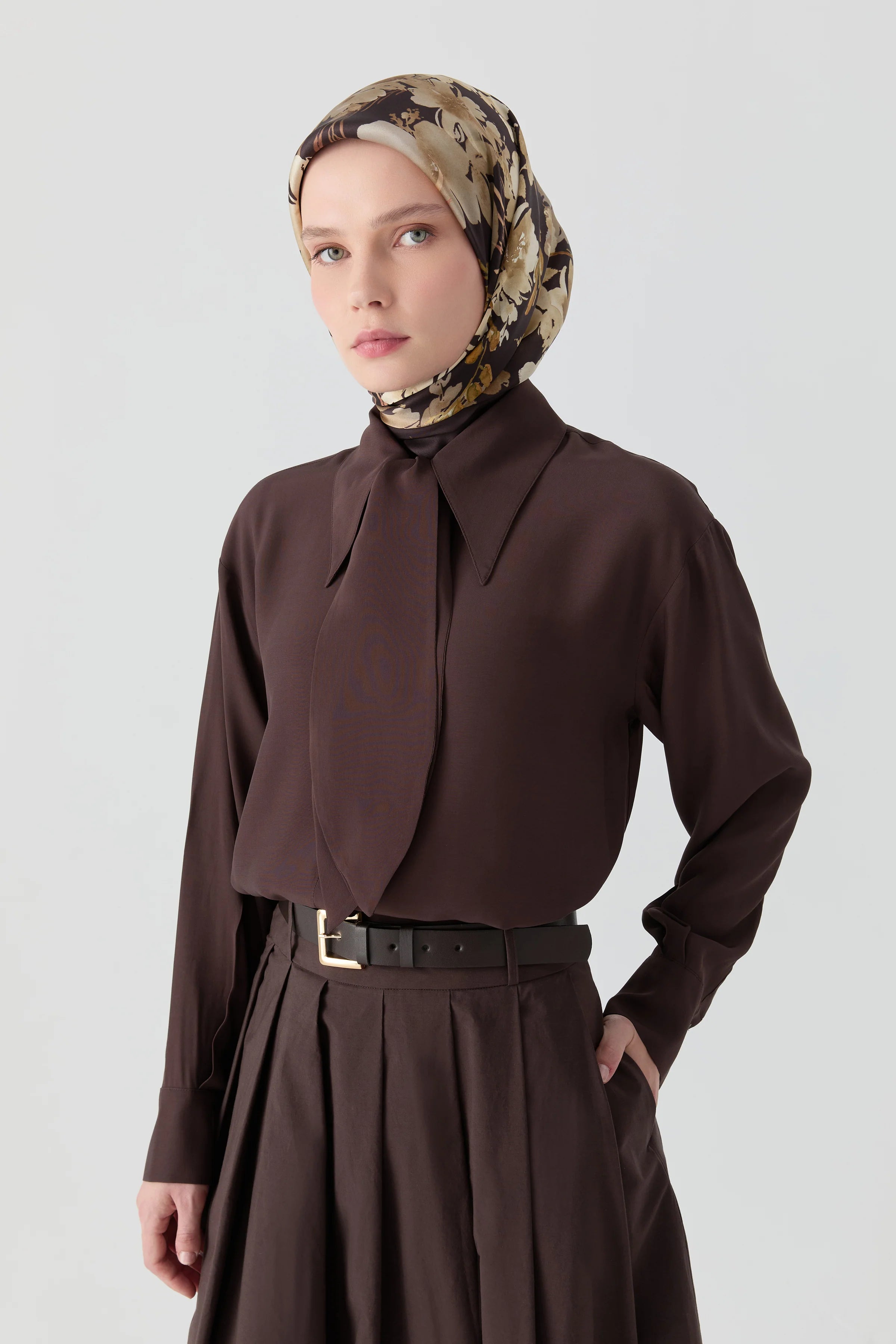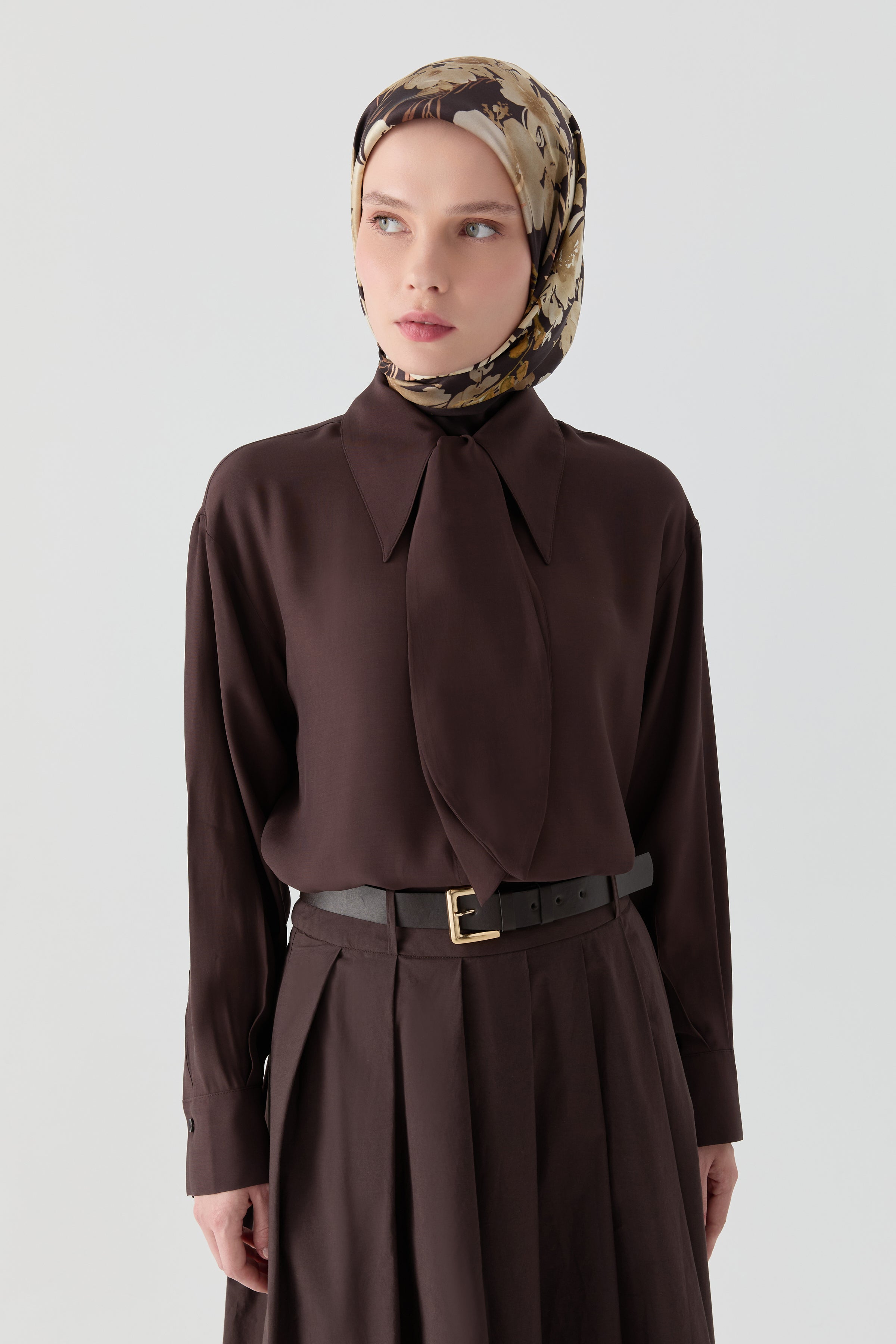 Chemise avec foulard intégré - Marron foncé