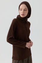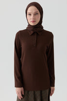 Chemisier en tricot à col polo - Café