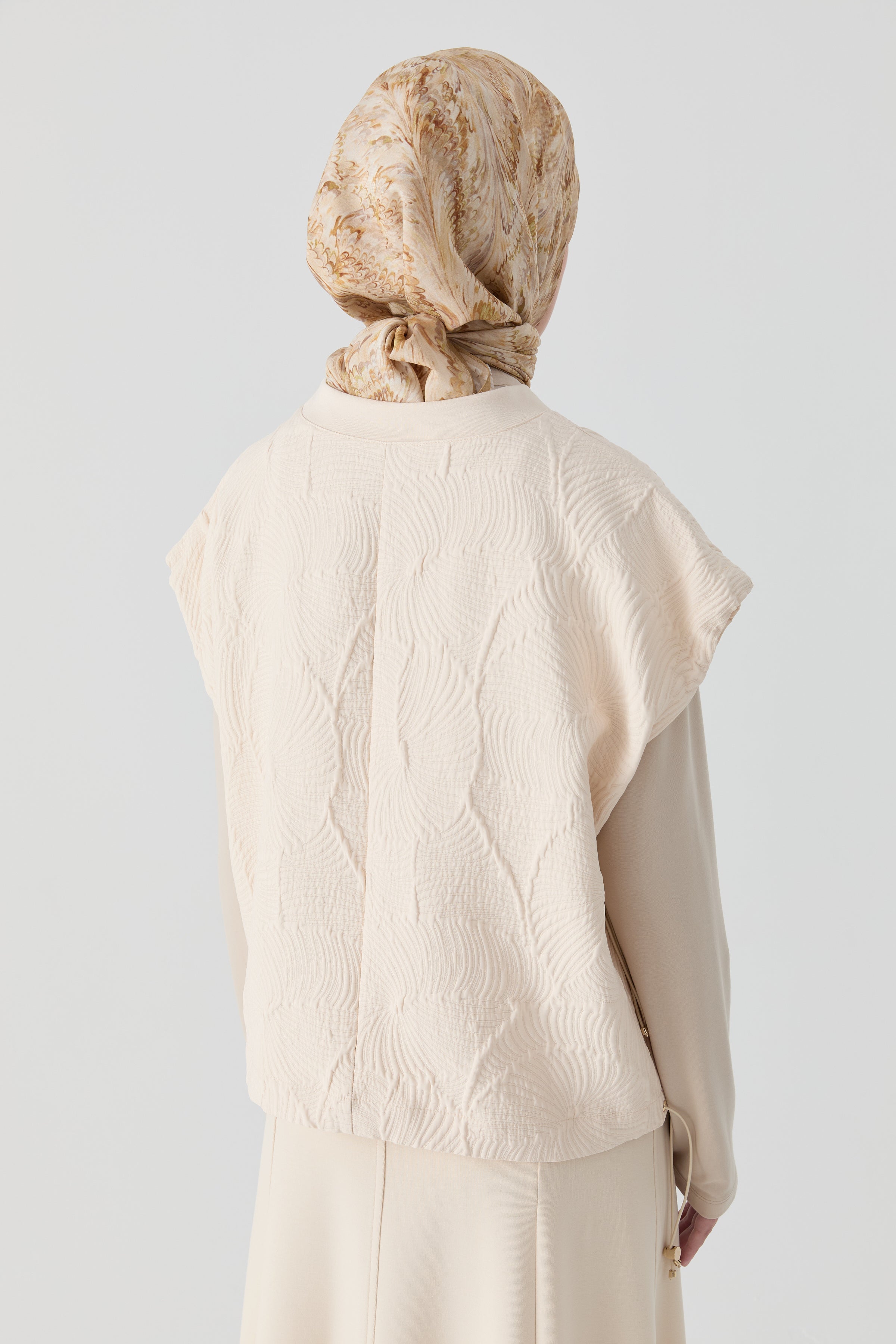 Pull sans manches matelassé brodé avec détail élastique - Écru
