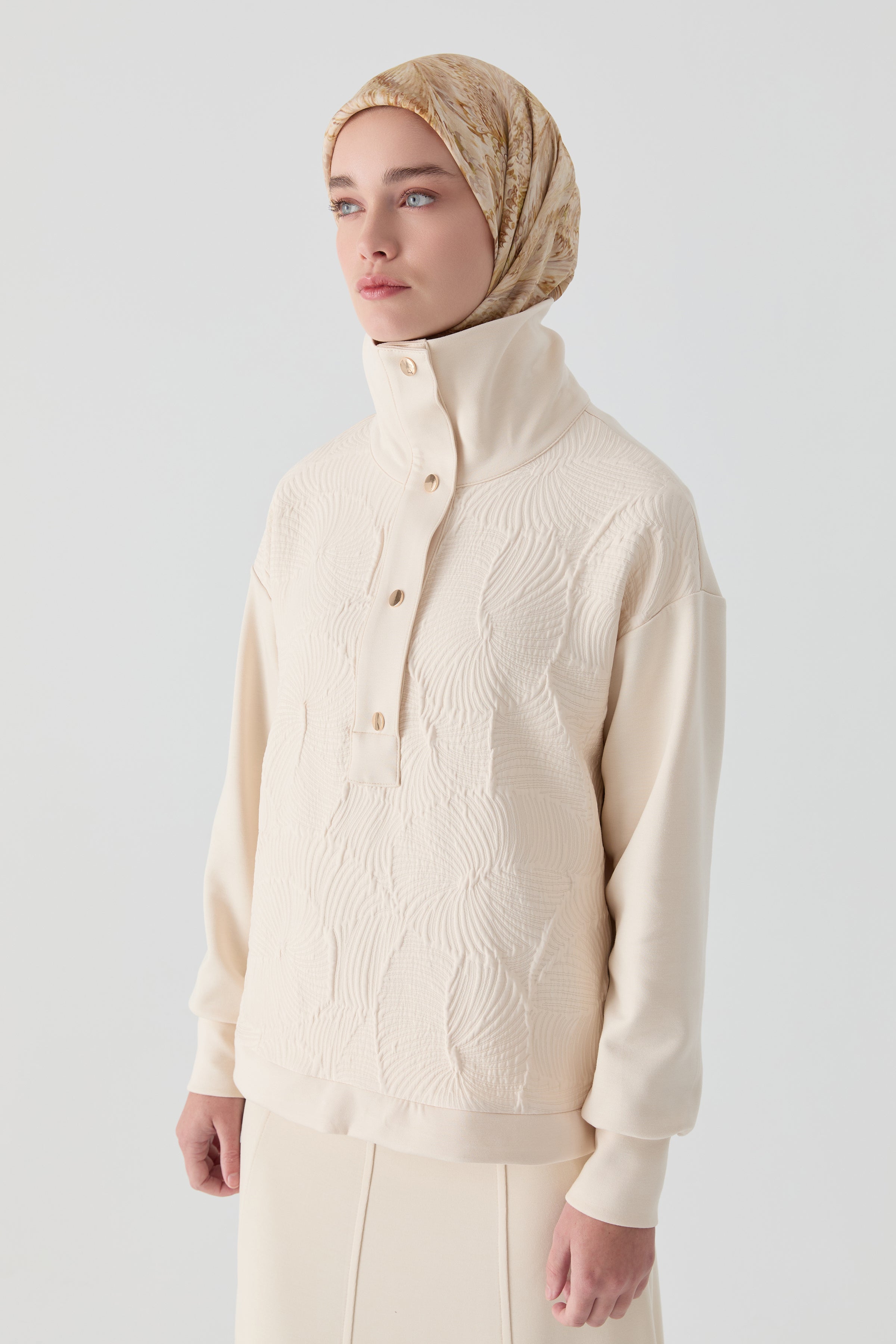 Chemisier à col montant demi‑roulé - Beige