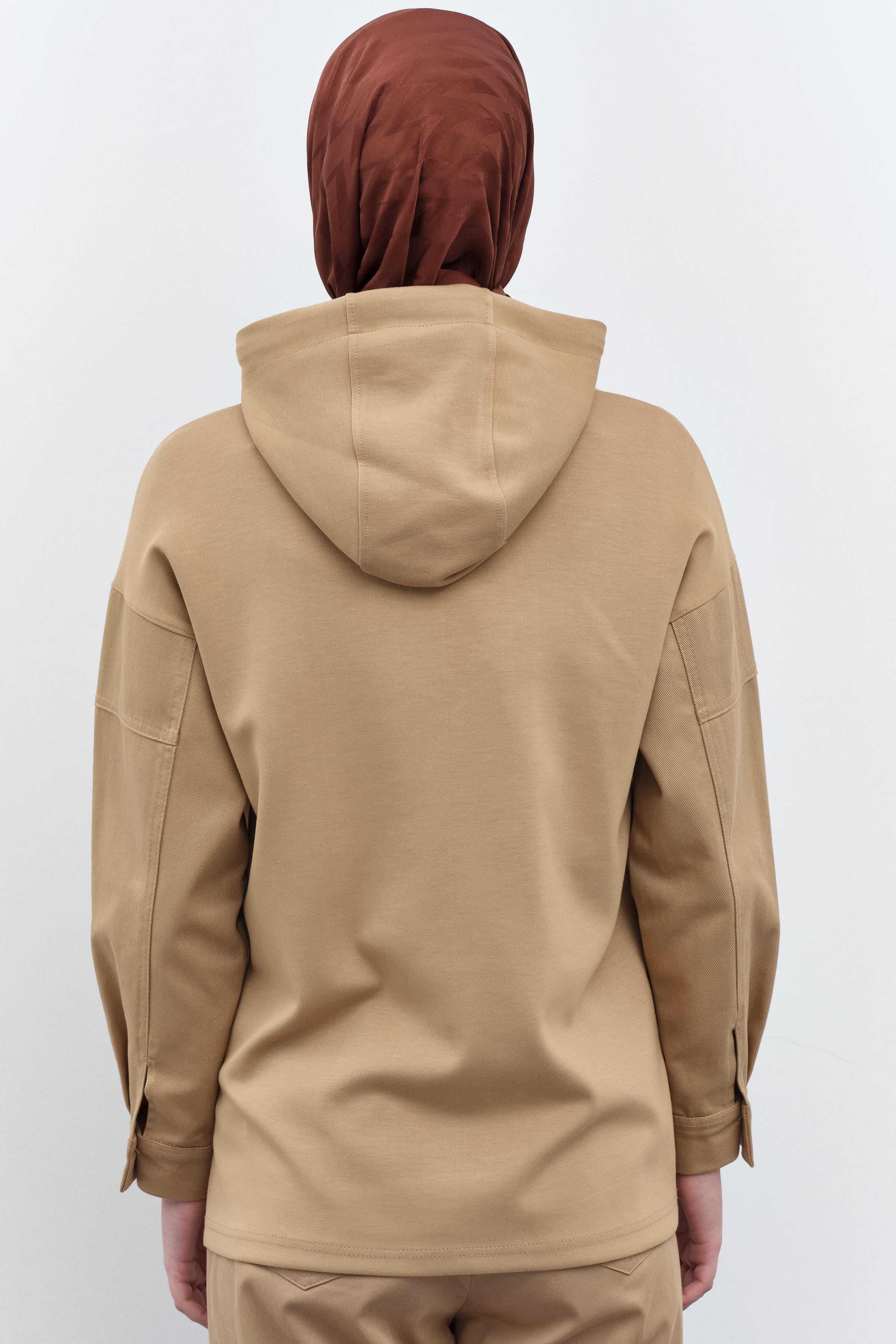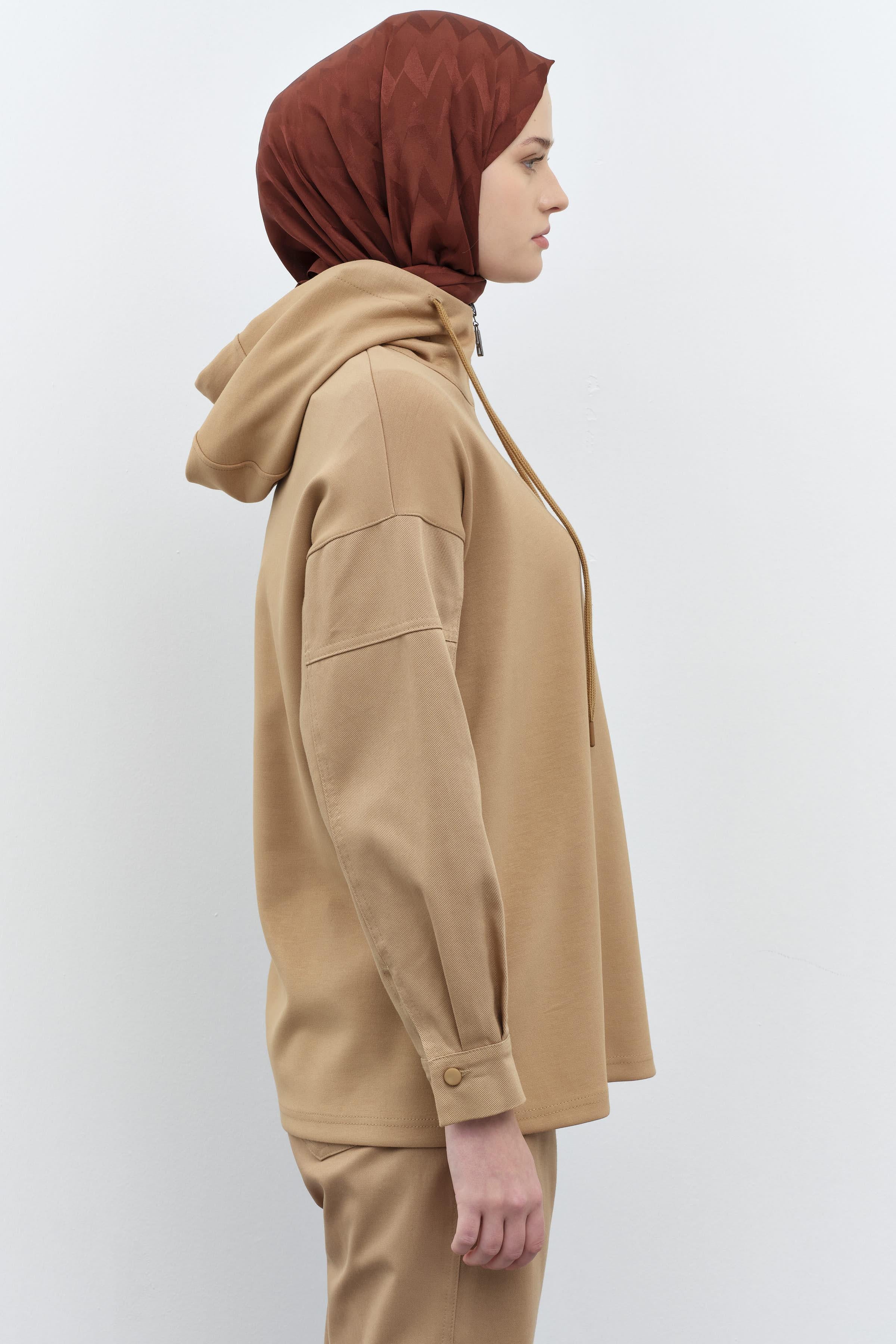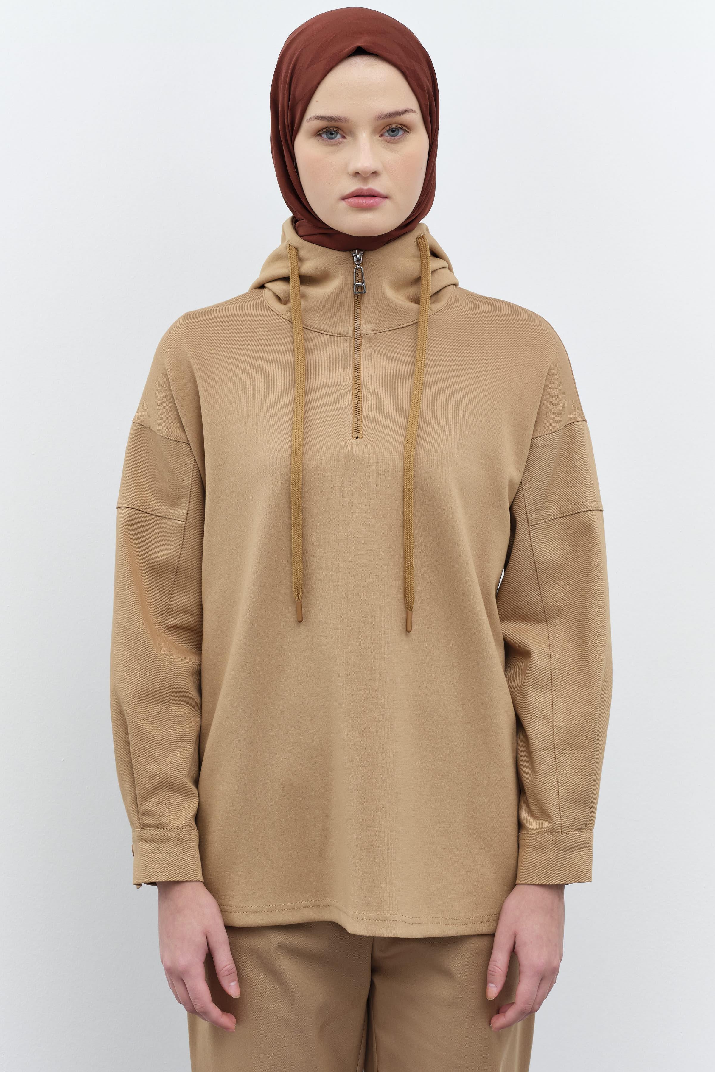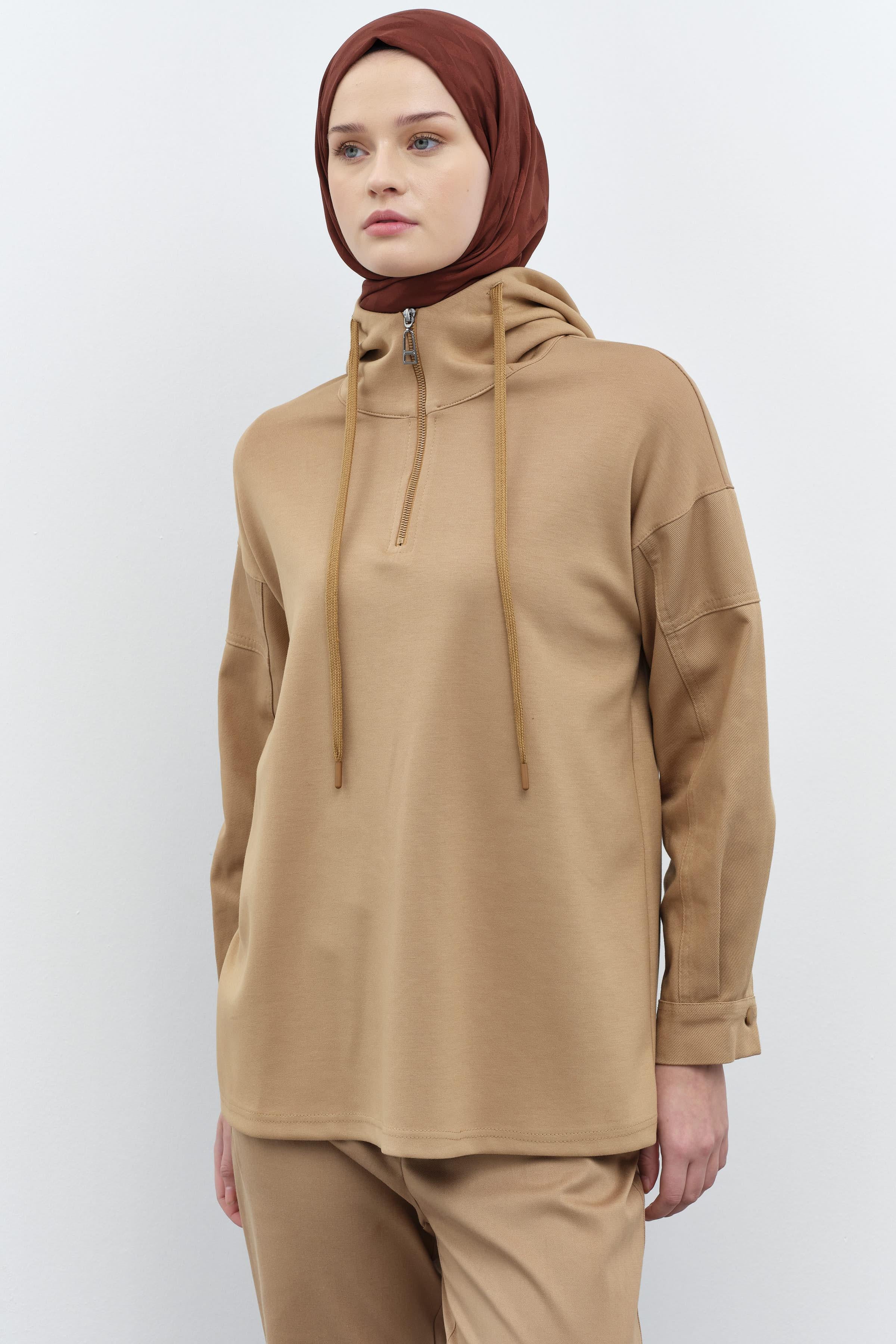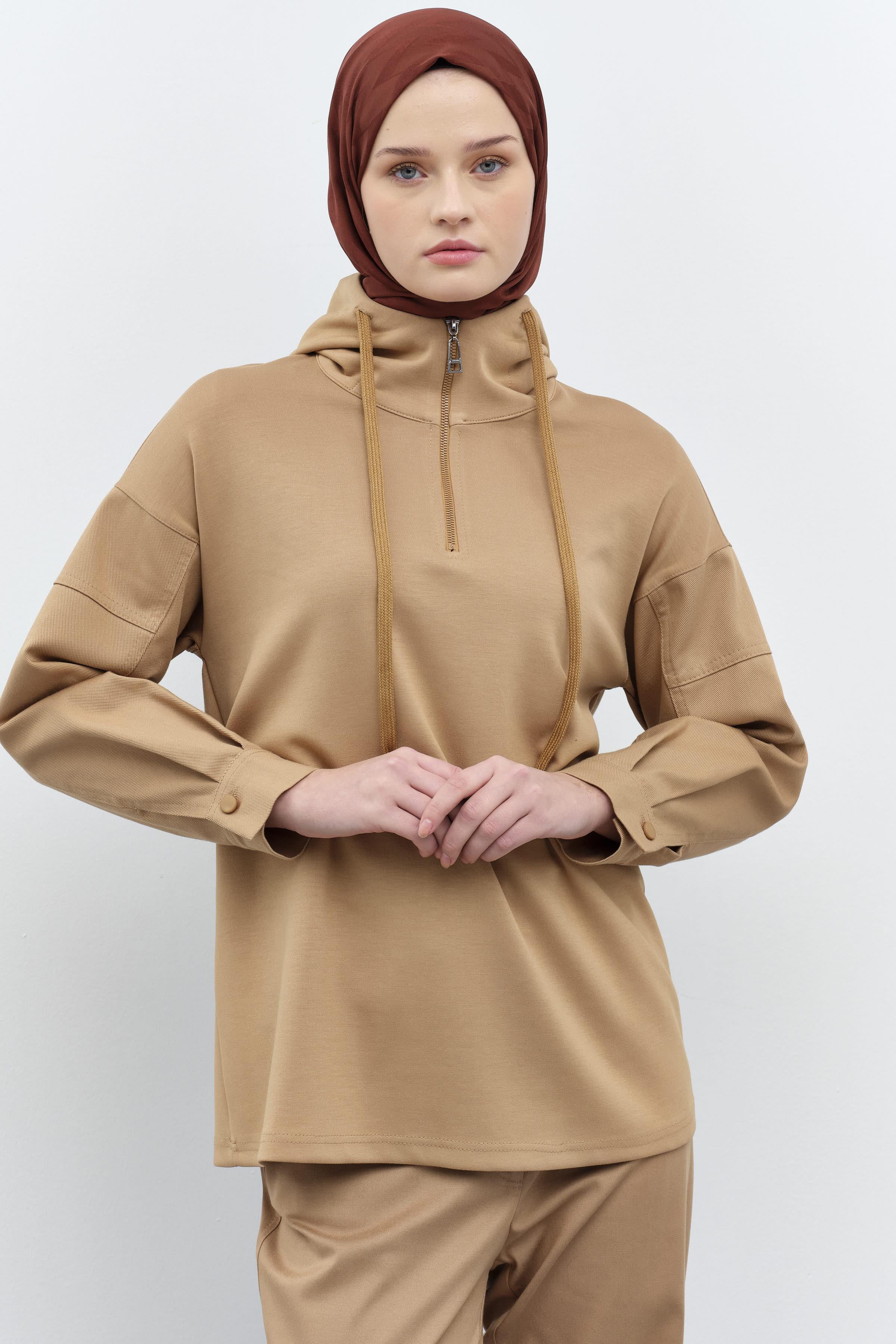 Ensemble tunique pantalon tricoté à col roulé - Beige
