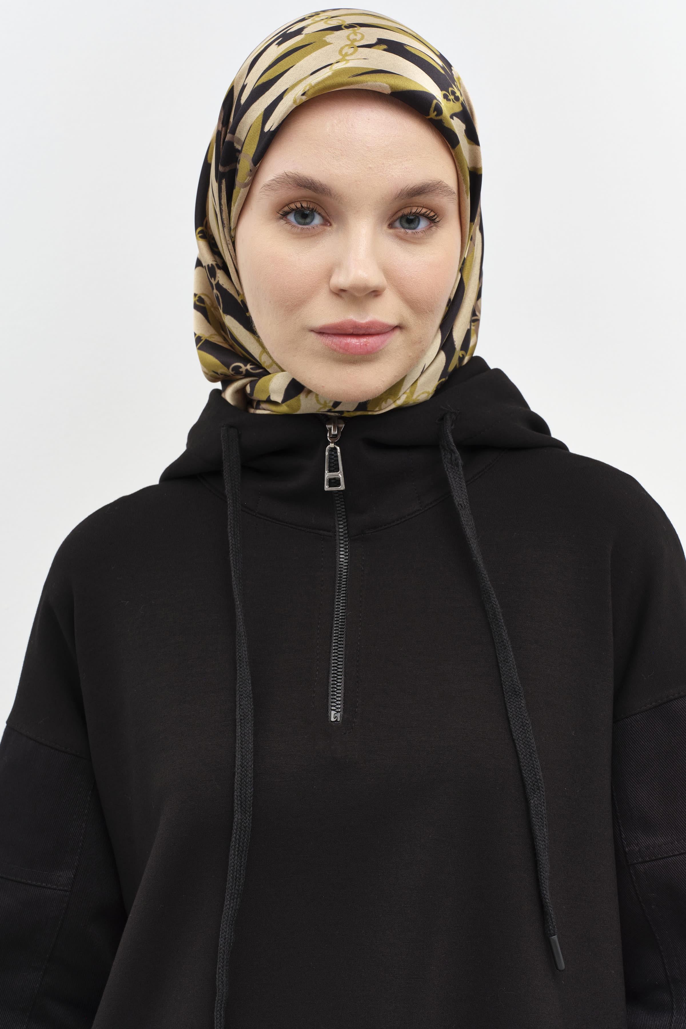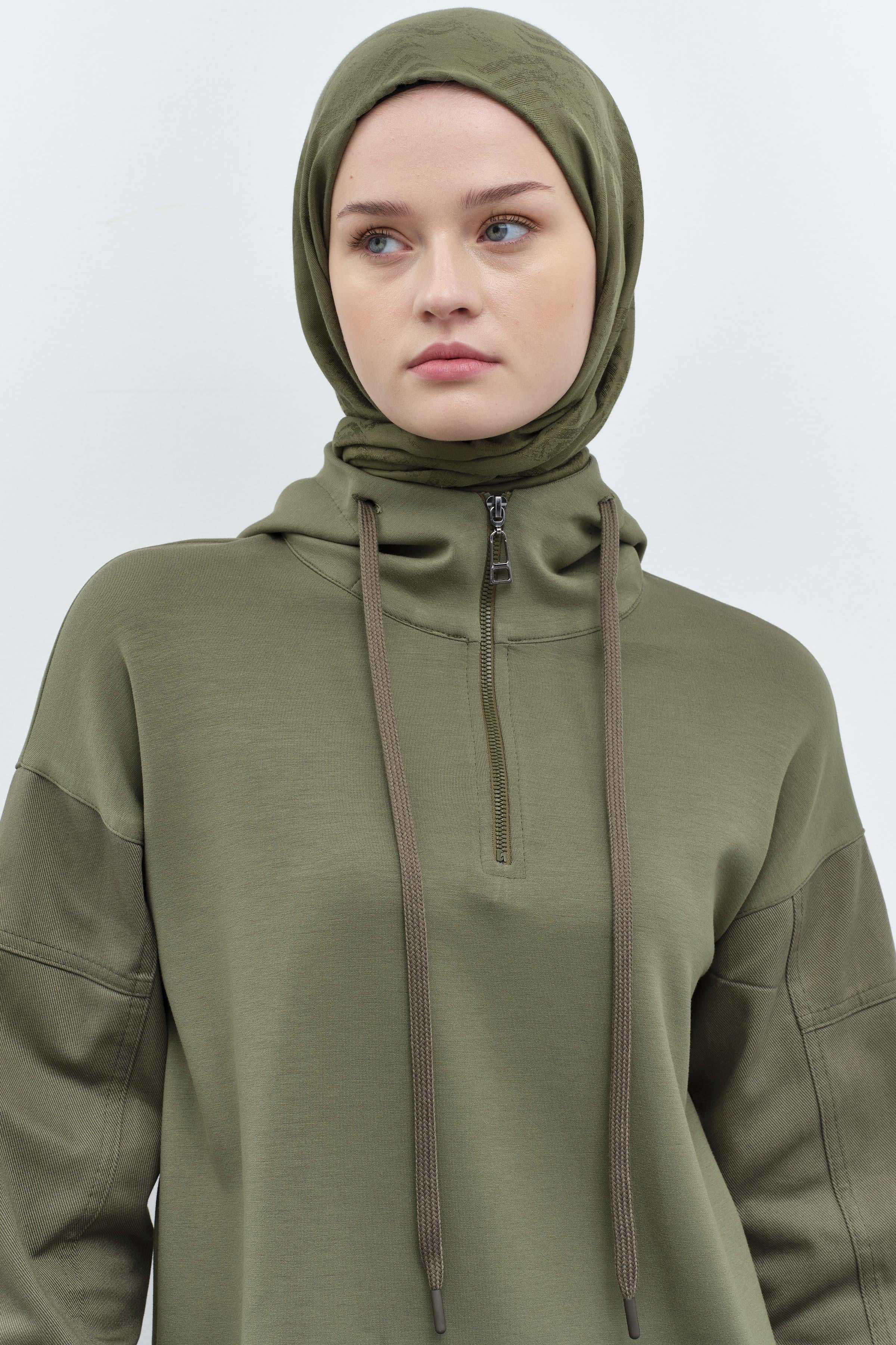 Robe en chiffon à motifs avec ceinture en suédine - Kaki