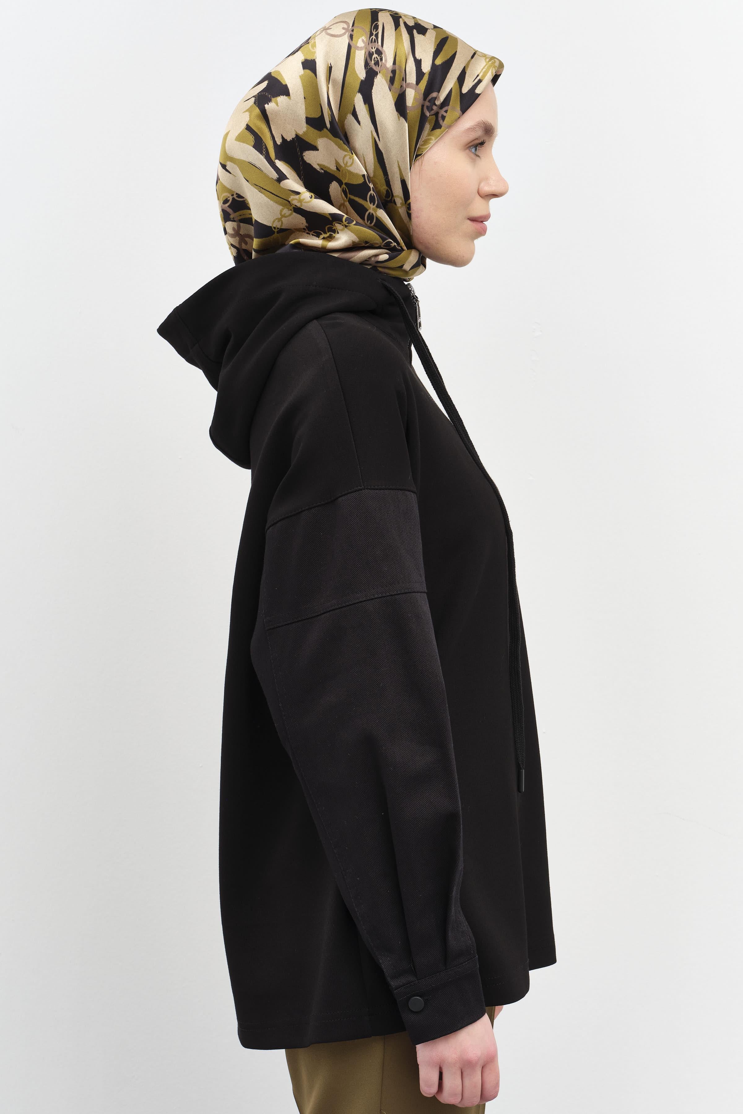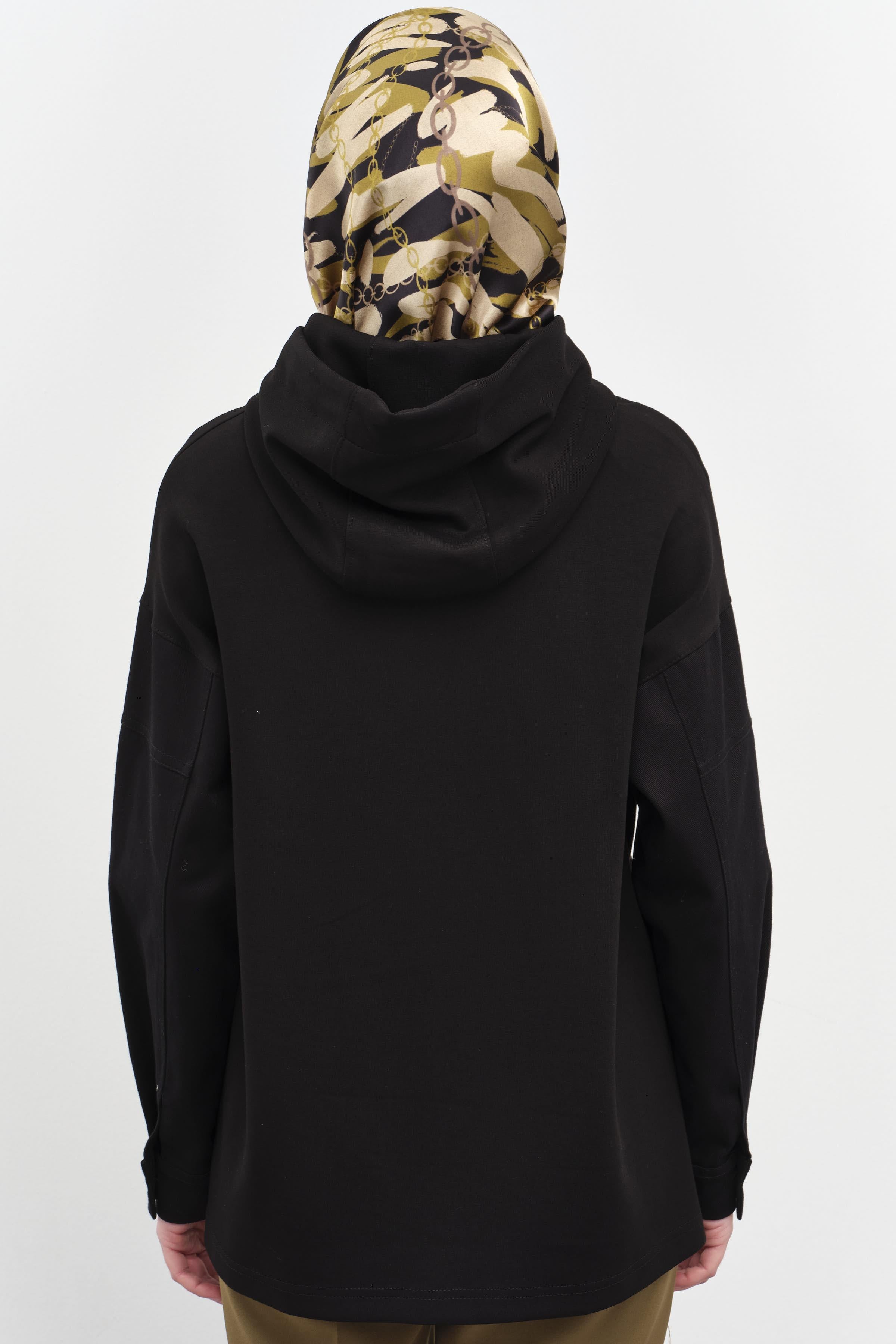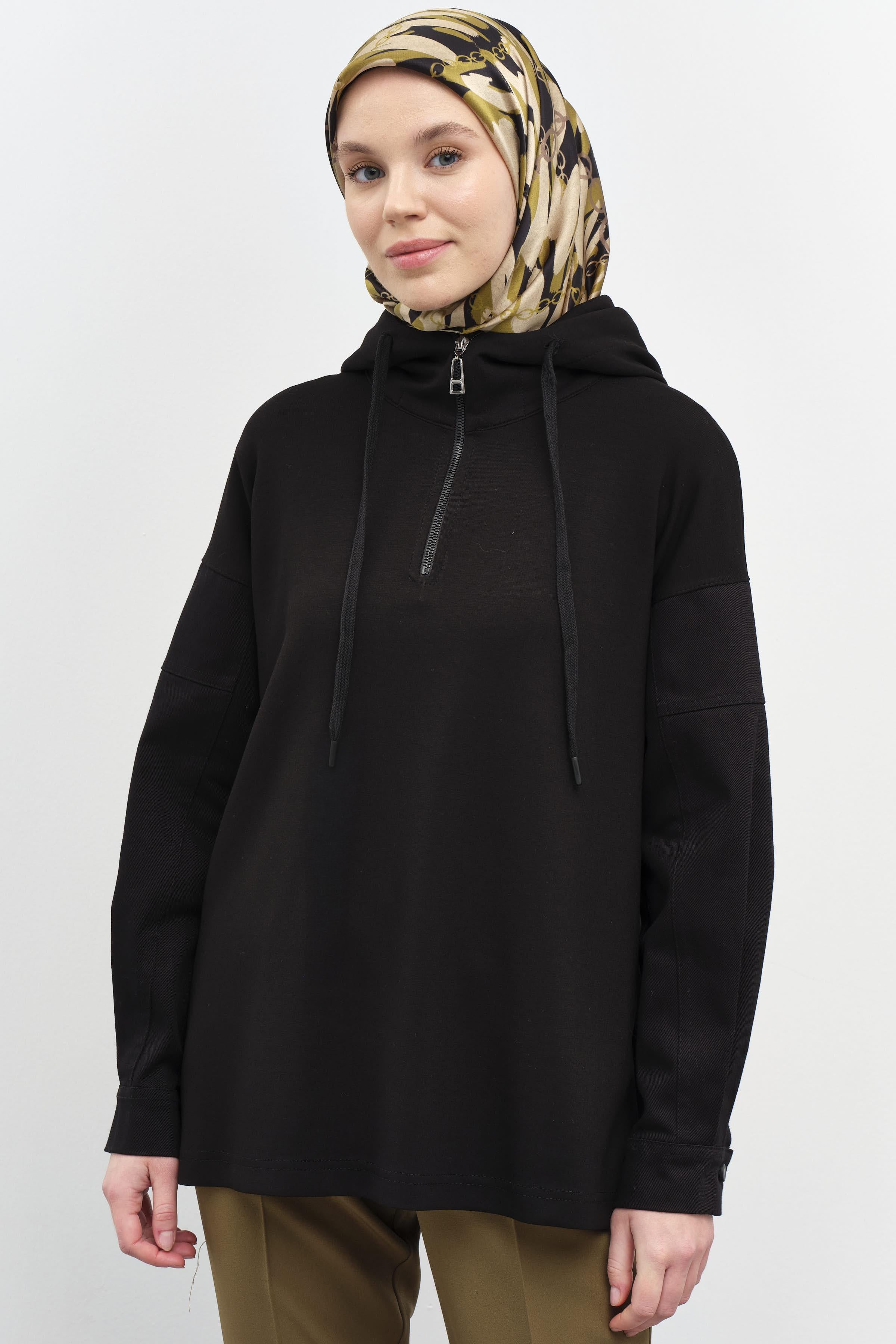 Ensemble en tricot avec jupe et blouse à broderies et garnitures - Noir