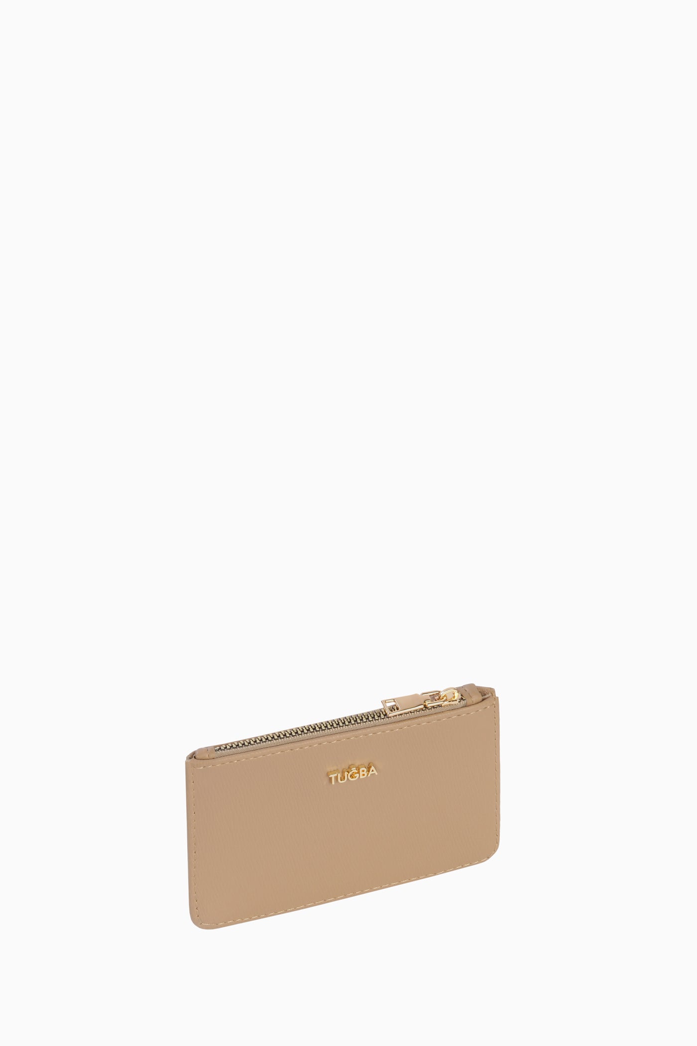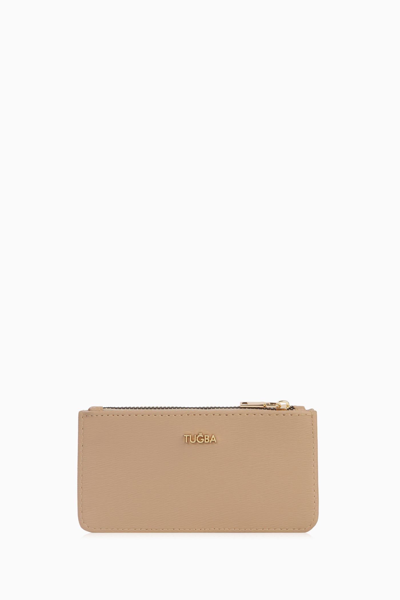 Portefeuille rectangulaire à fermeture éclair - Beige