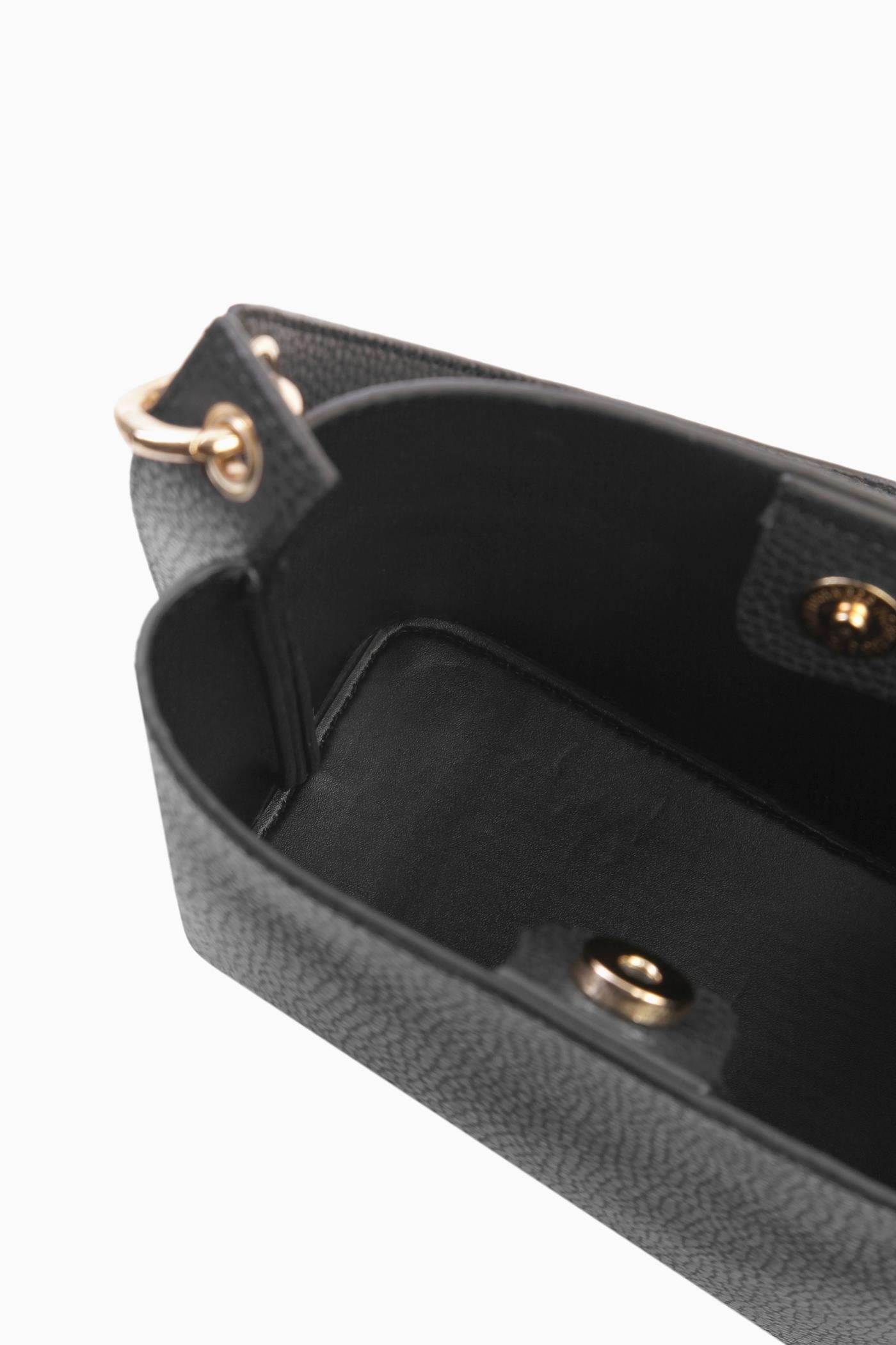 Détails extérieurs : Fermeture par bouton-pression, longue sangle réglable