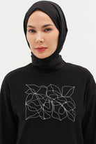 Sweat en tricot à imprimé motif - Noir
