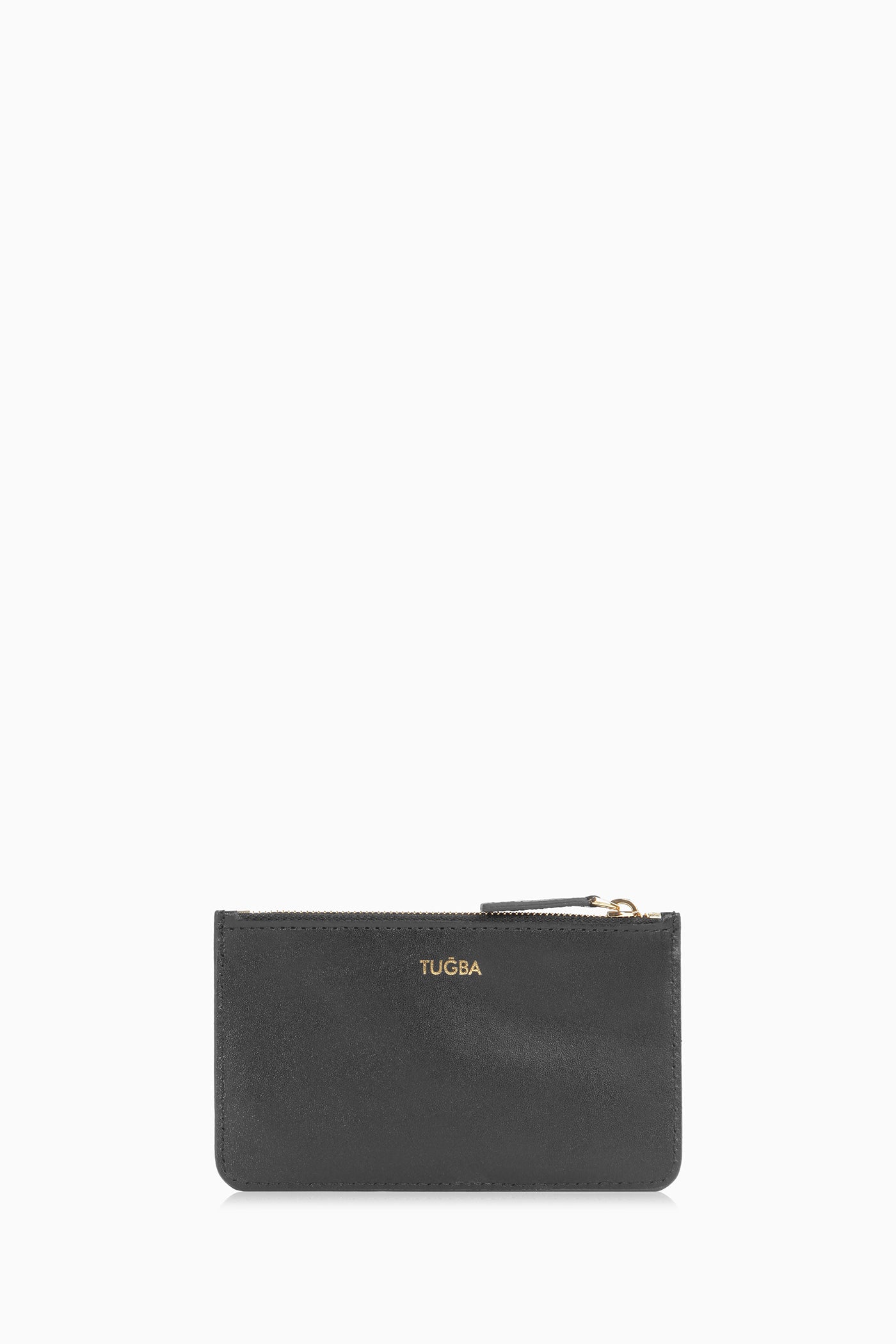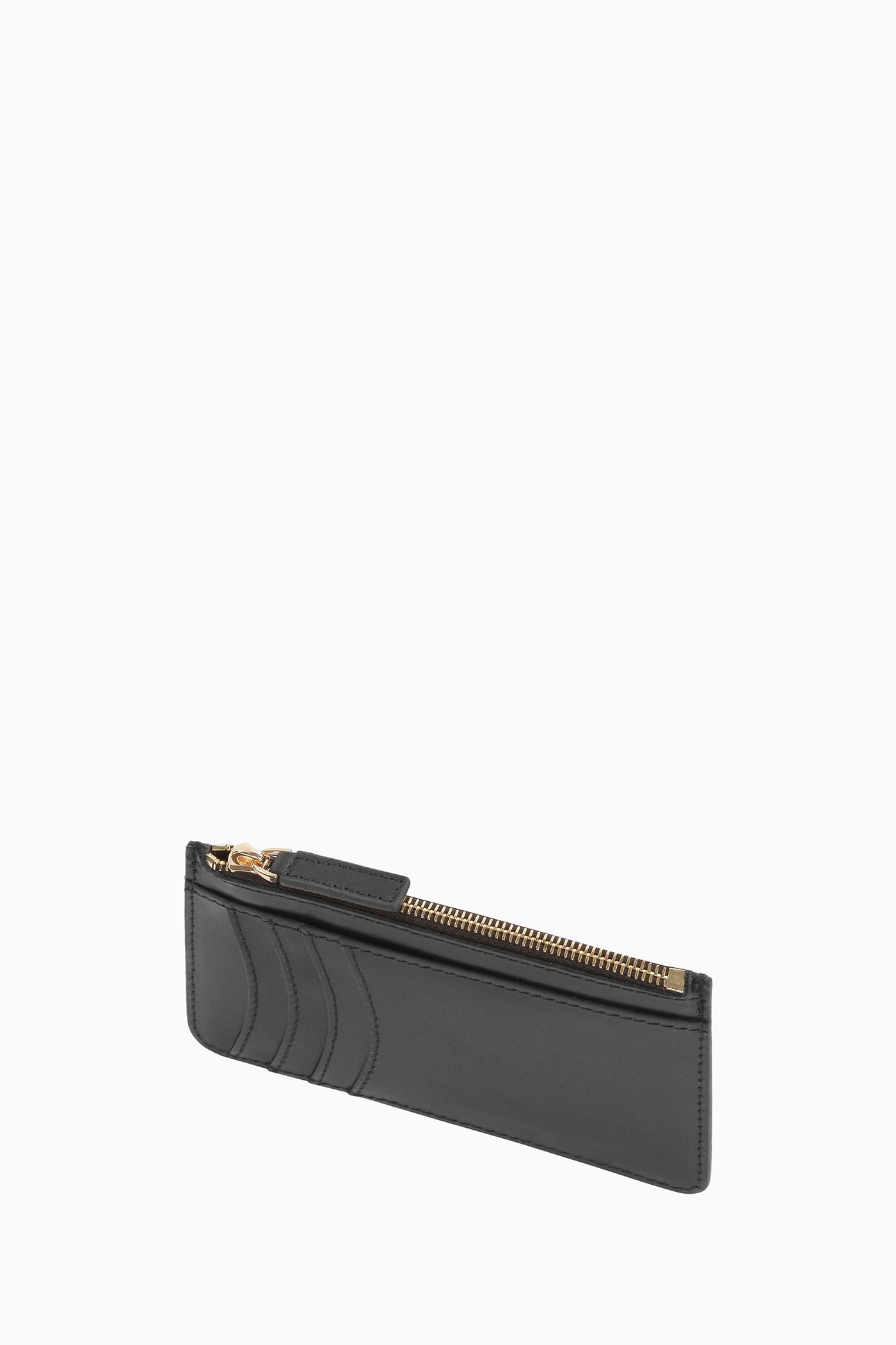 Porte-cartes en cuir avec fermeture éclair - Noir