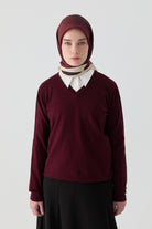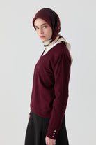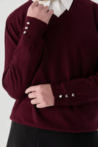 Pull à col en V avec boutons aux poignets - Bordeaux