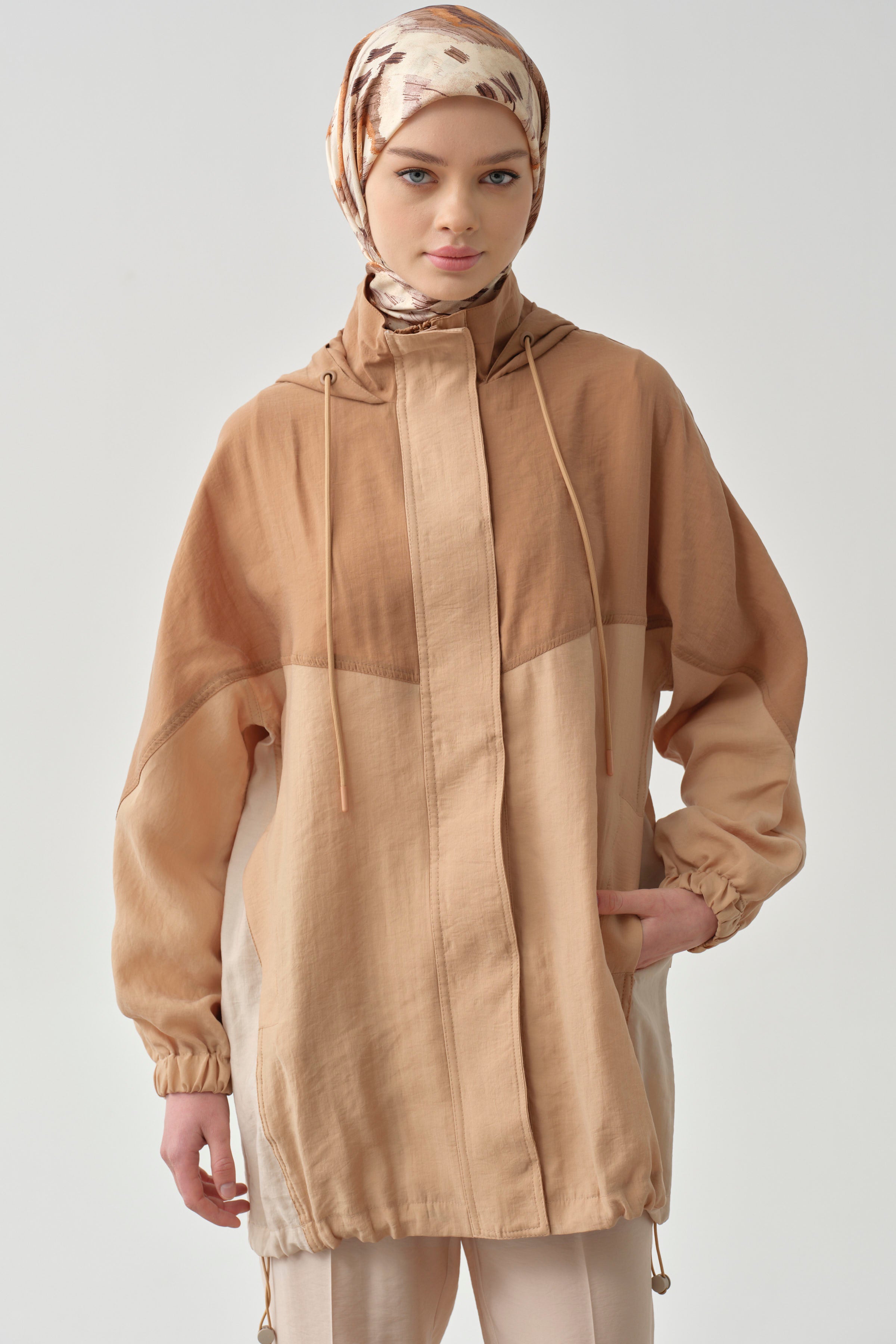 Trench à capuche avec garniture - Café