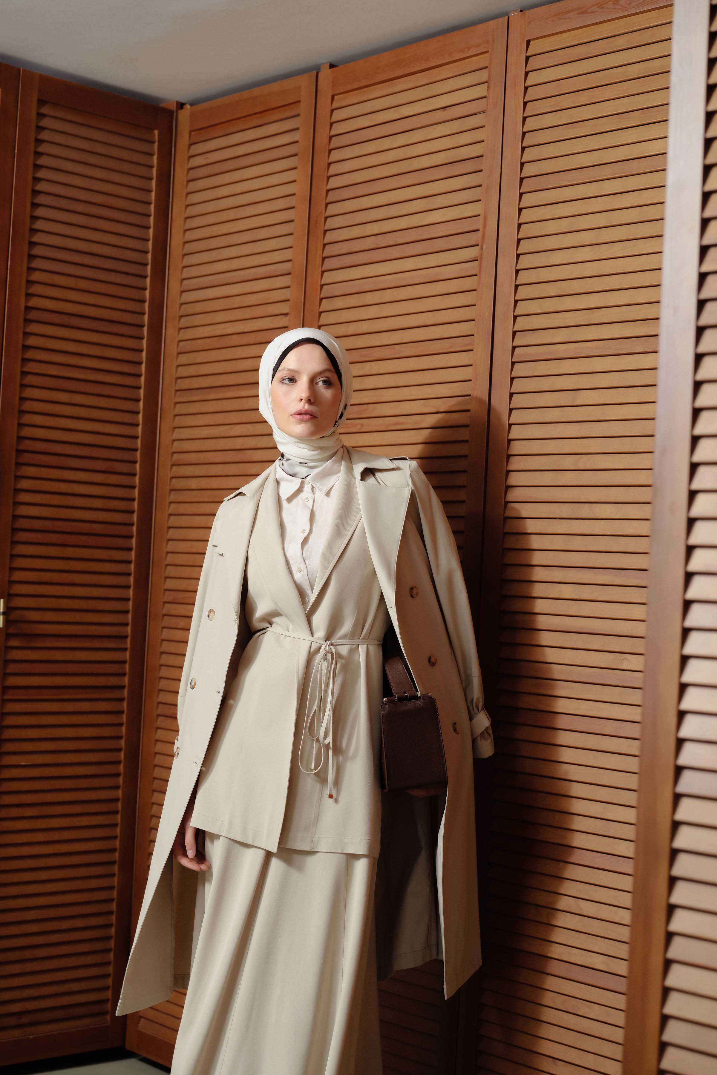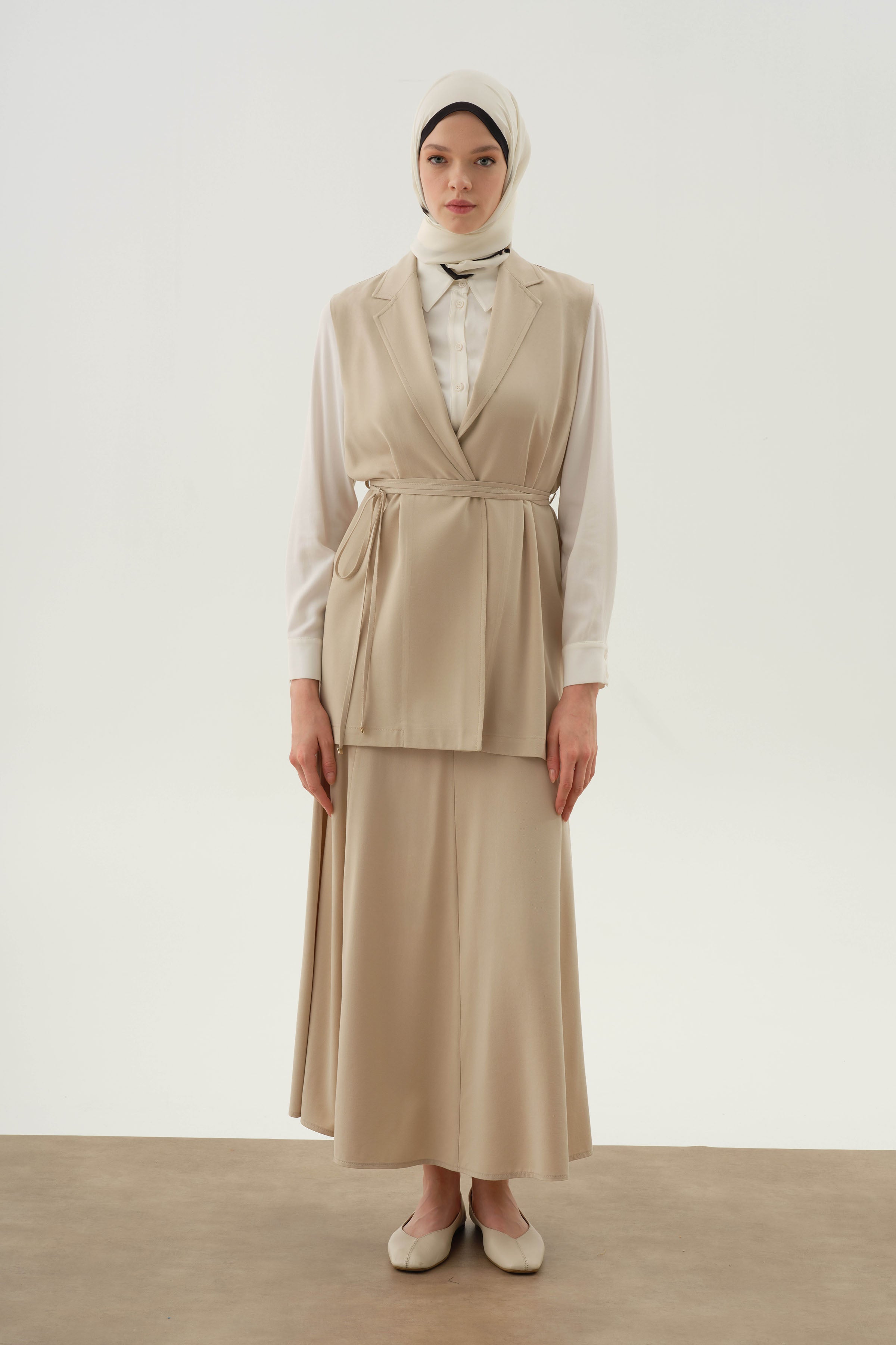 Gilet ceinturé avec bordure double épaisseur - Beige