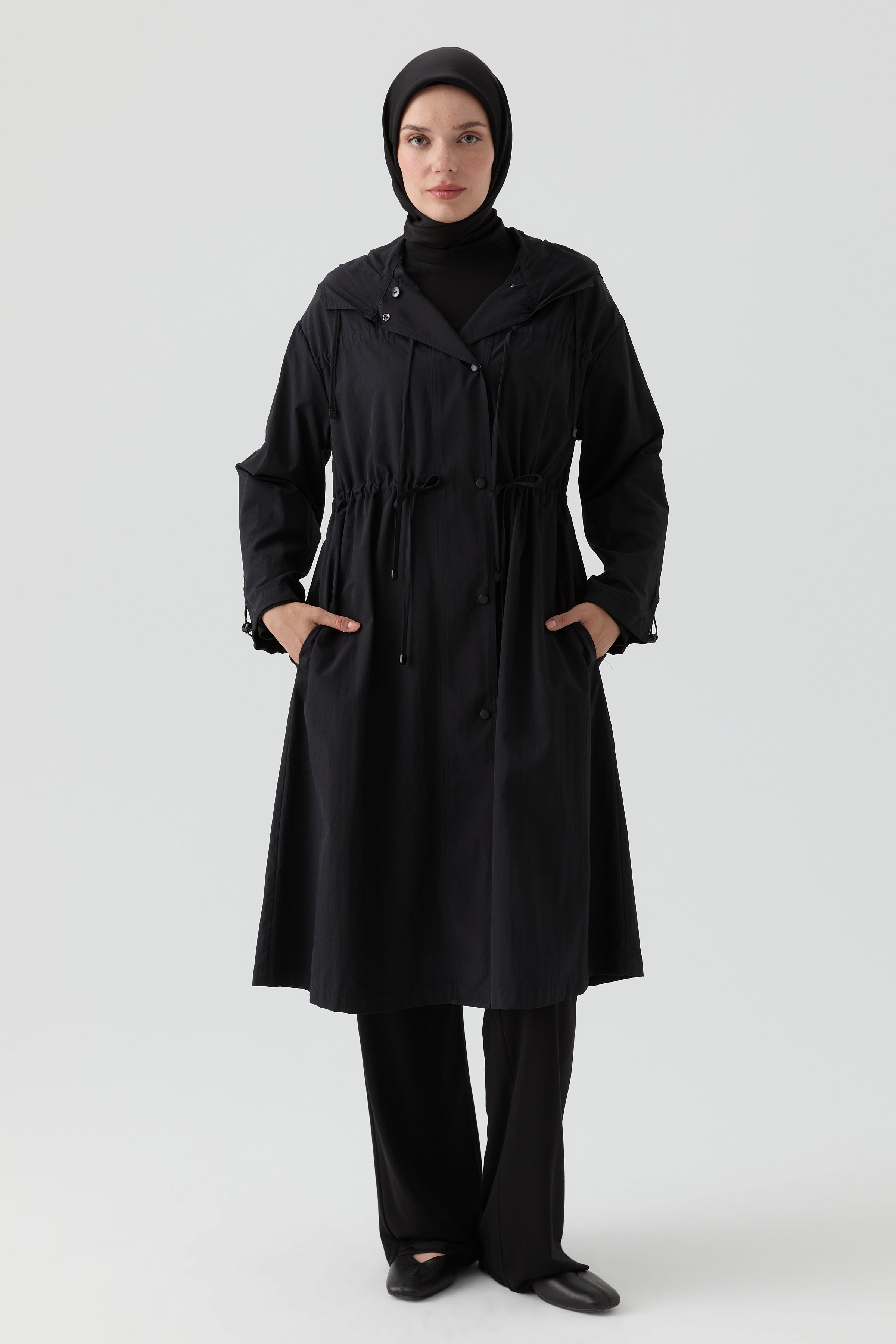 Imperméable à cordon de serrage - Noir
