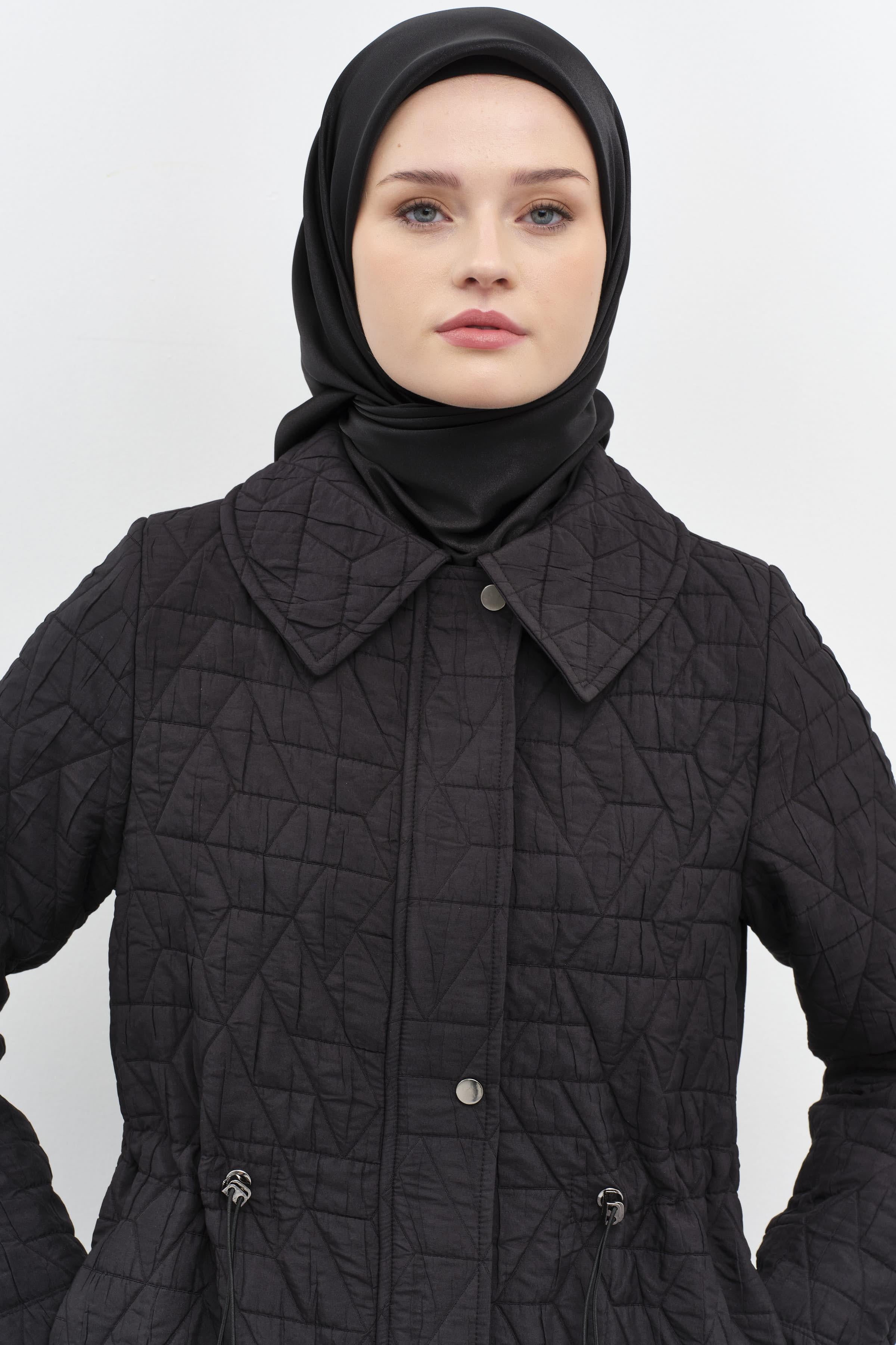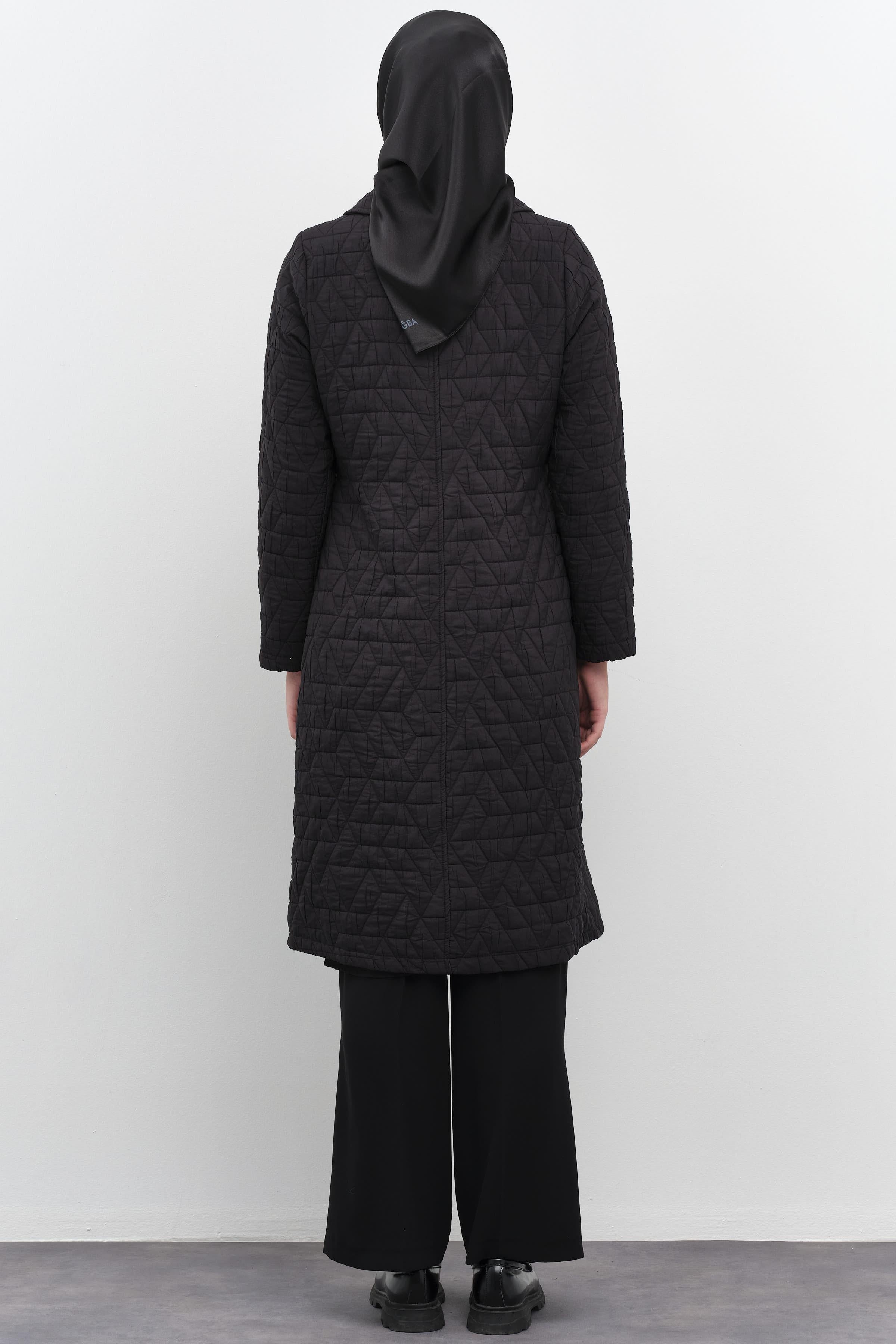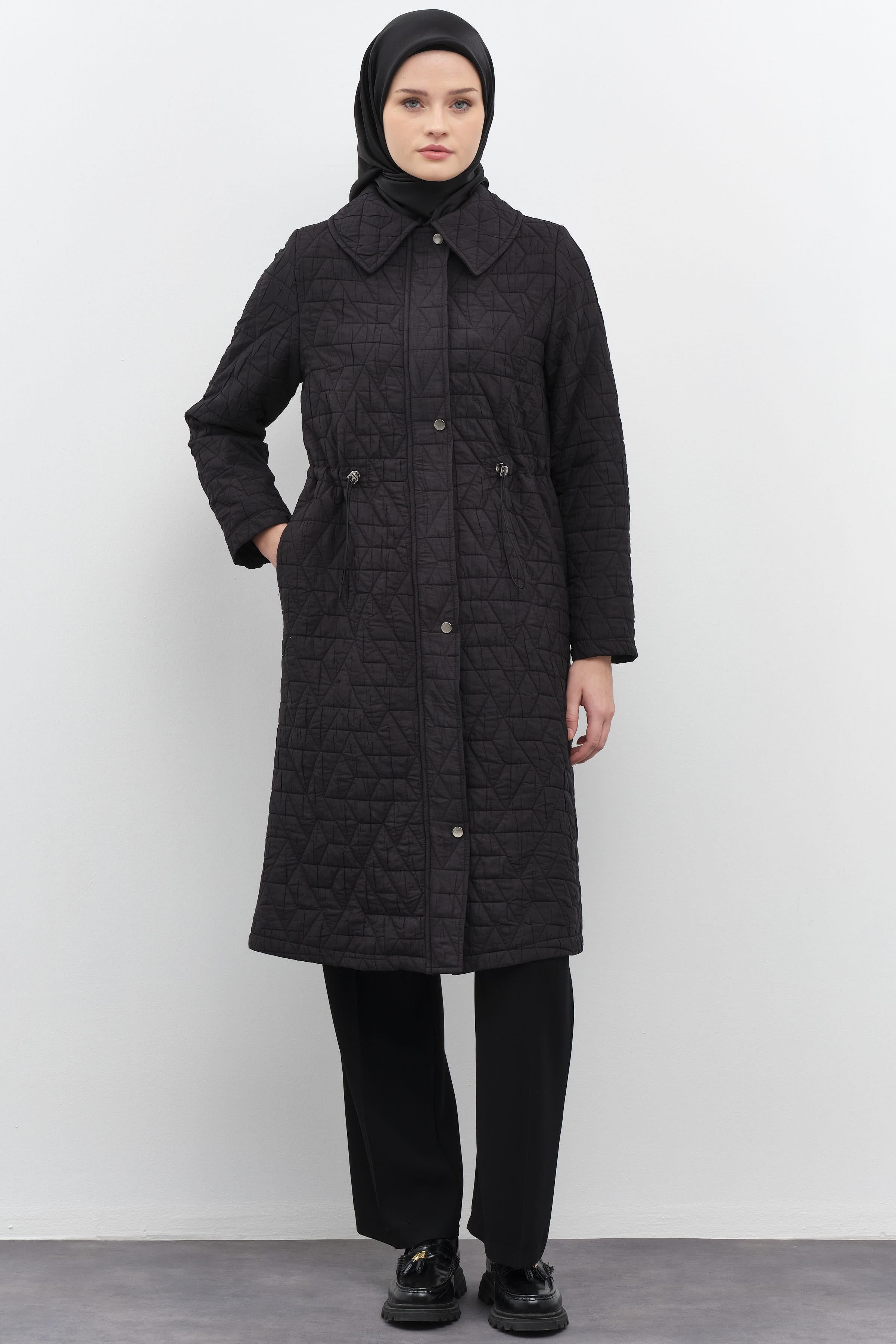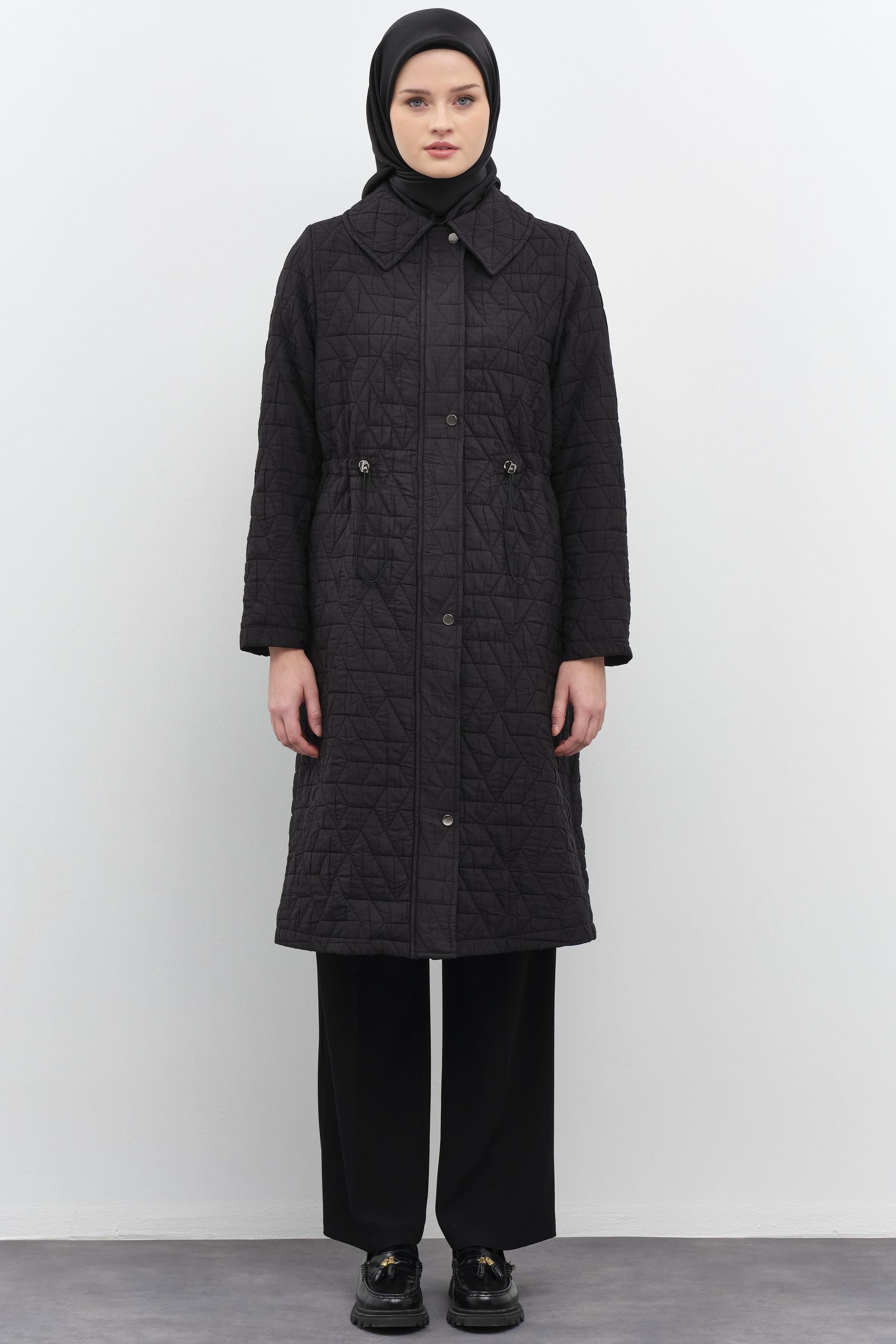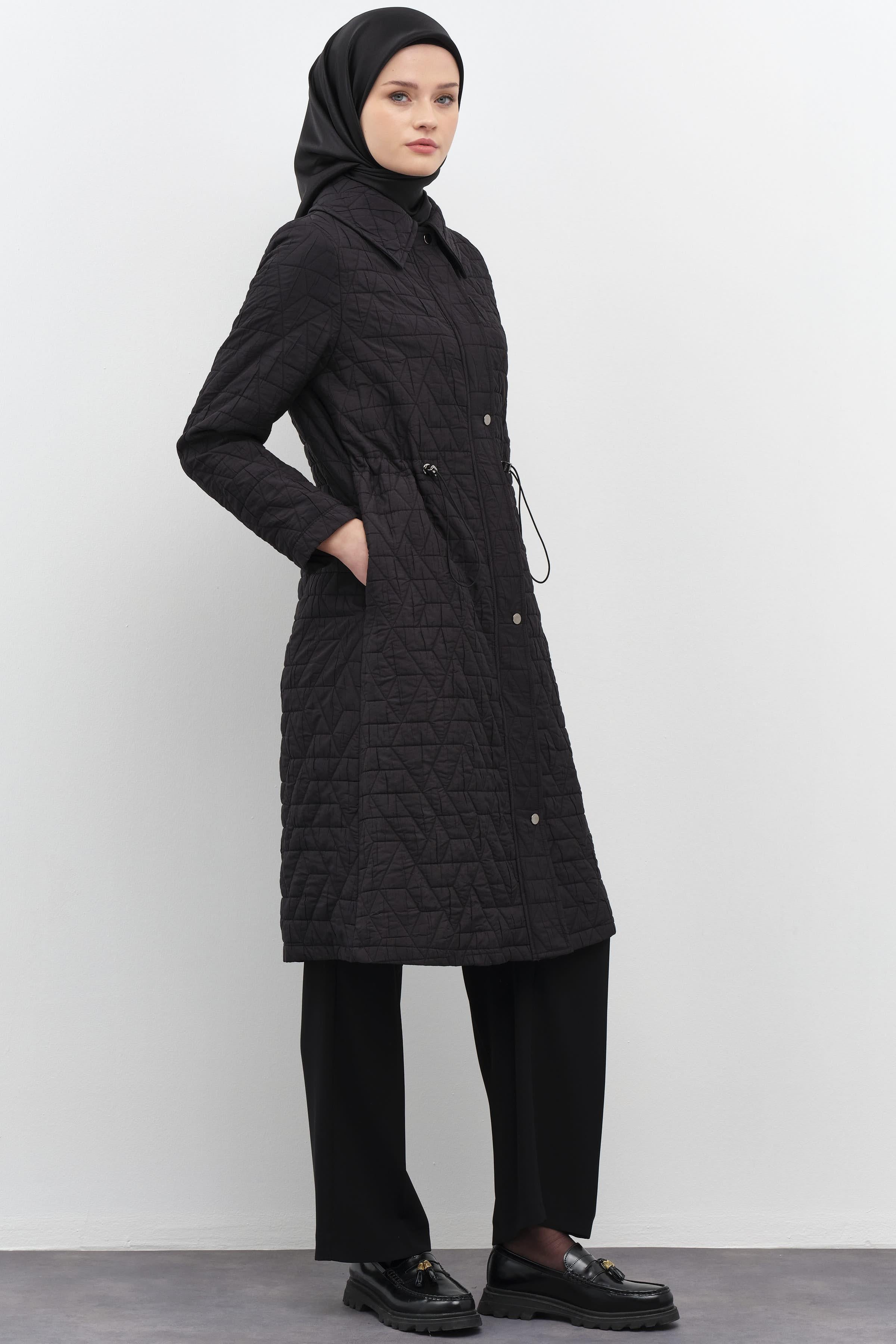 Manteau froncée finement matelassée - Noir