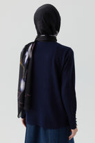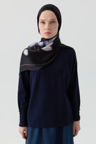 Pull col rond avec détails boutons aux manches - Blue marine