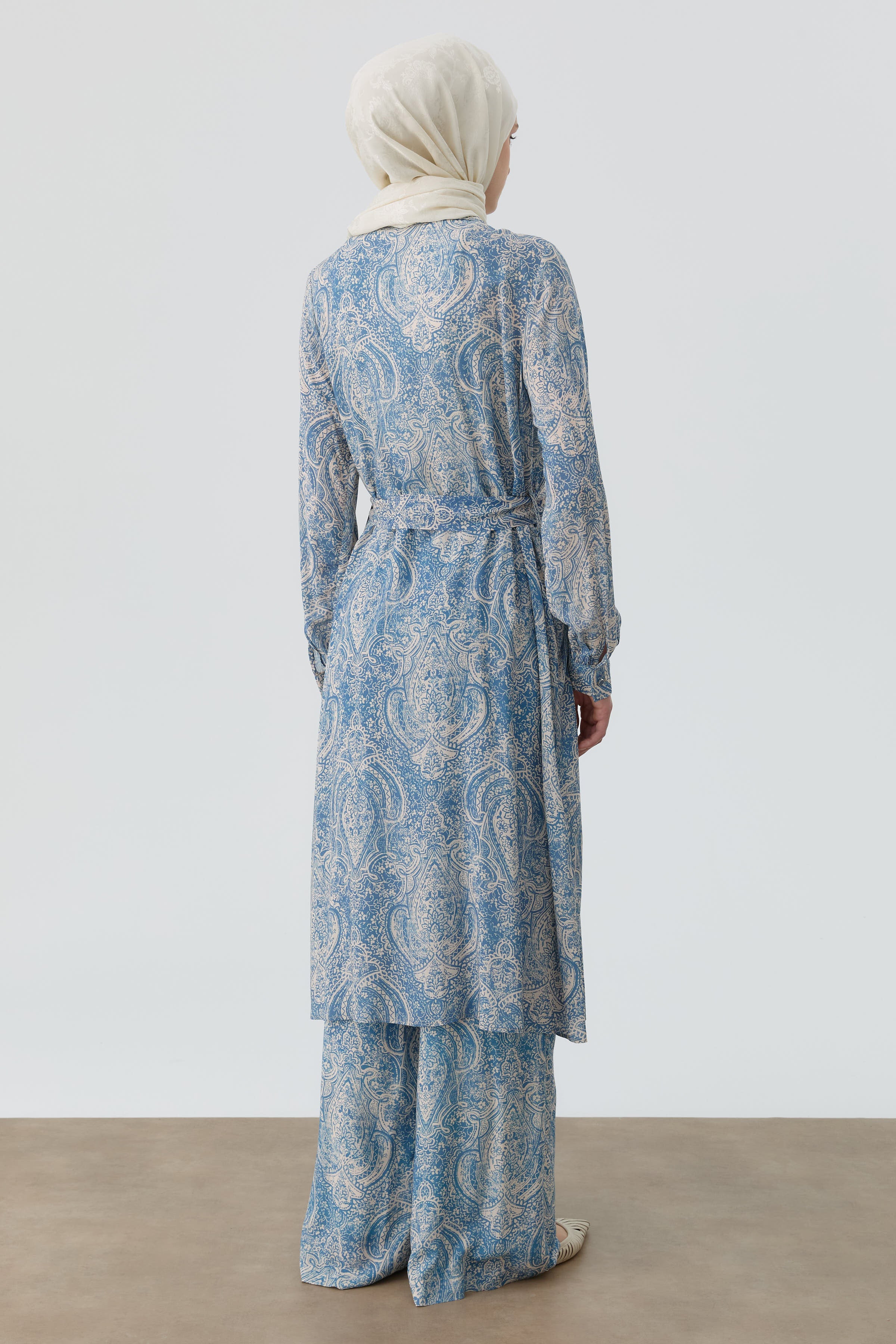 Tunique ceinturée à motif châle - Indigo