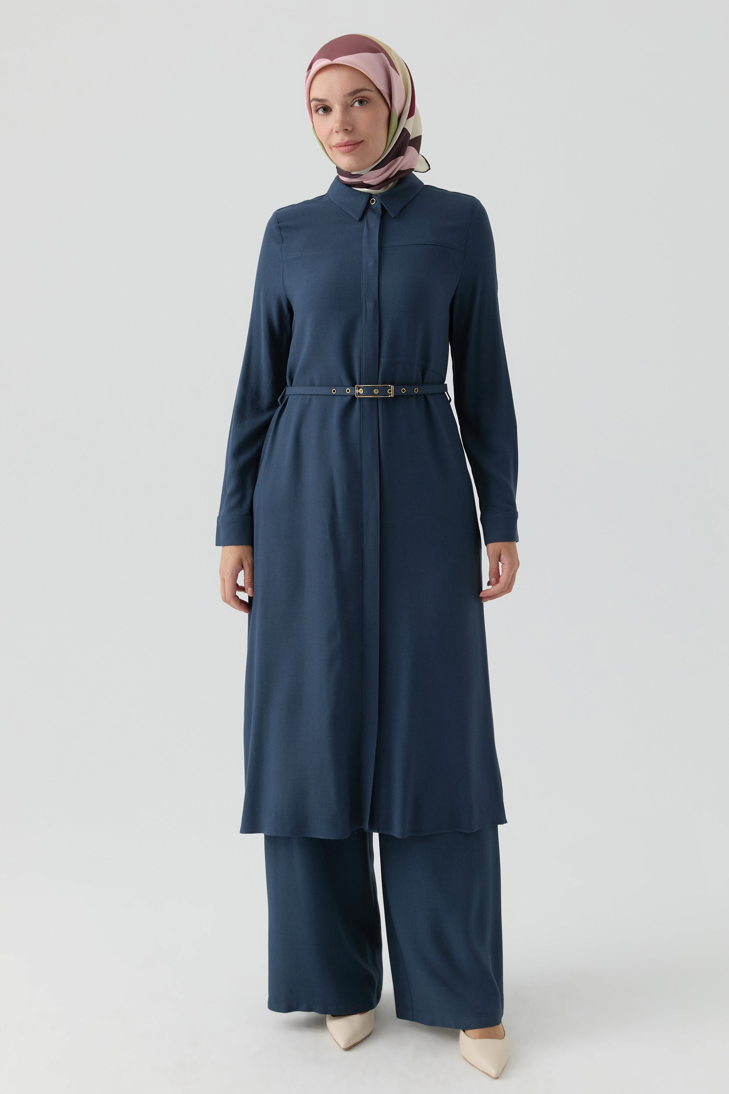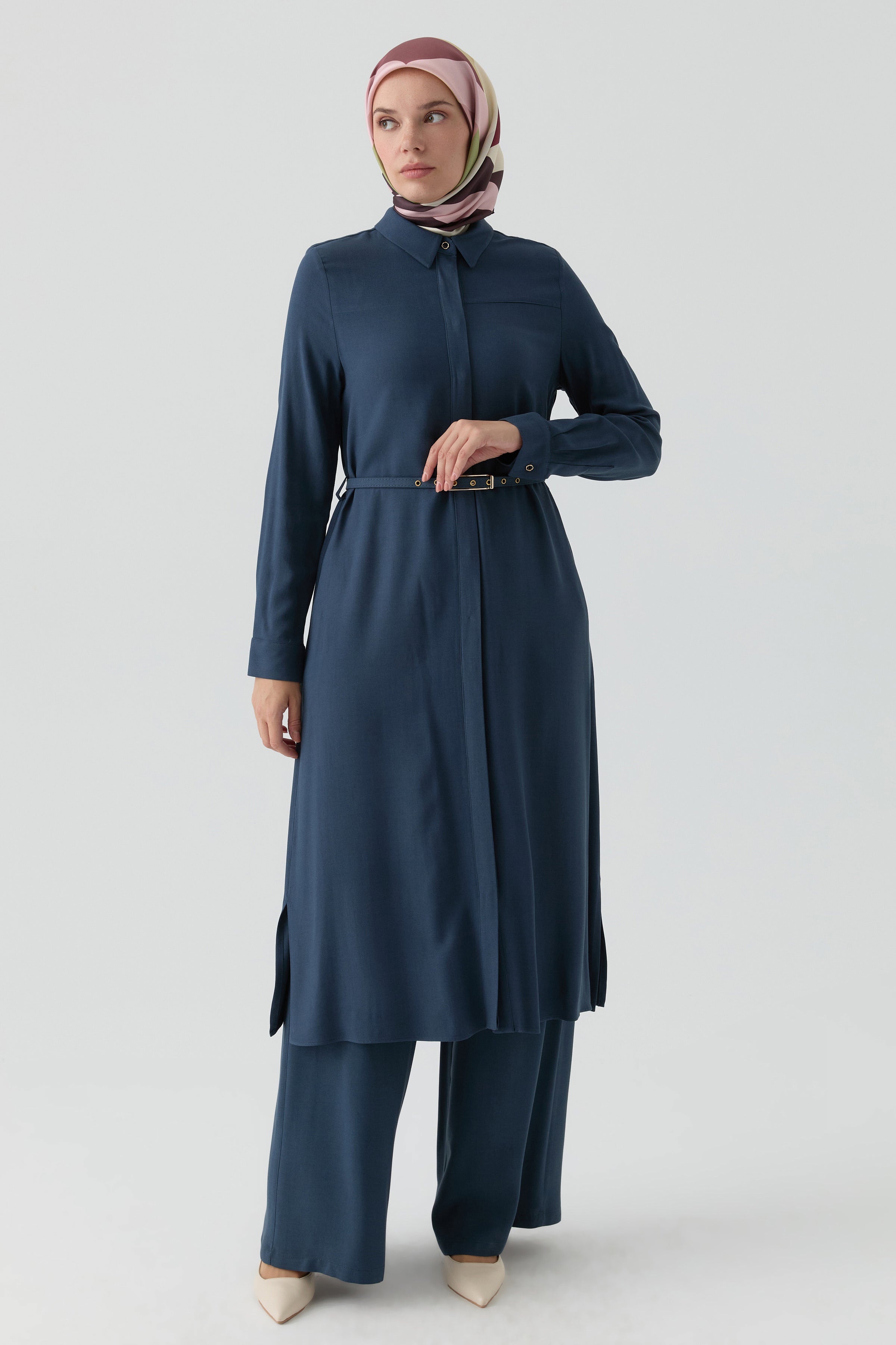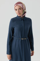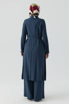 Tunique longue fendue ceinturée - Indigo