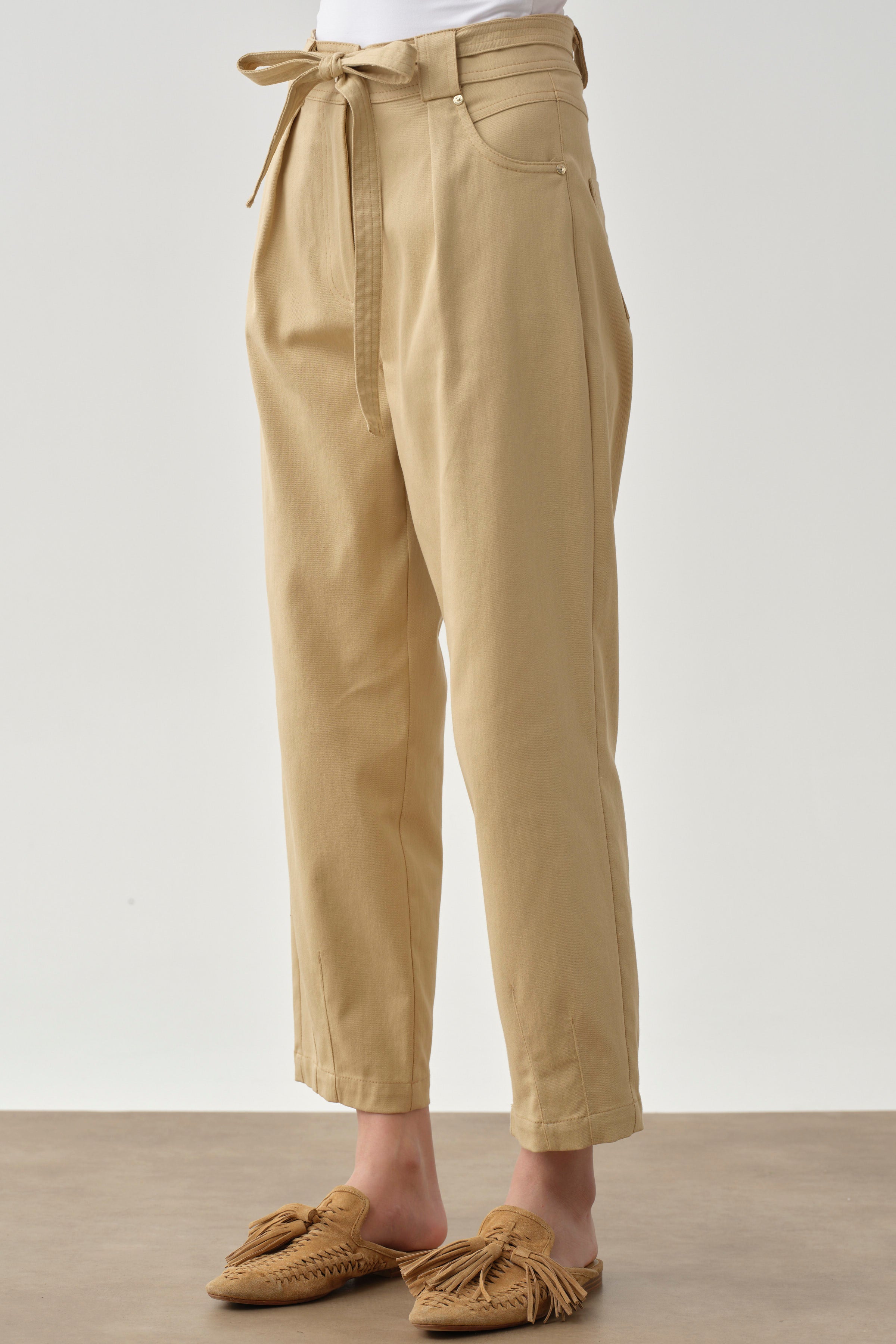 Pantalon en tricot nervuré avec taille élastique - Gris