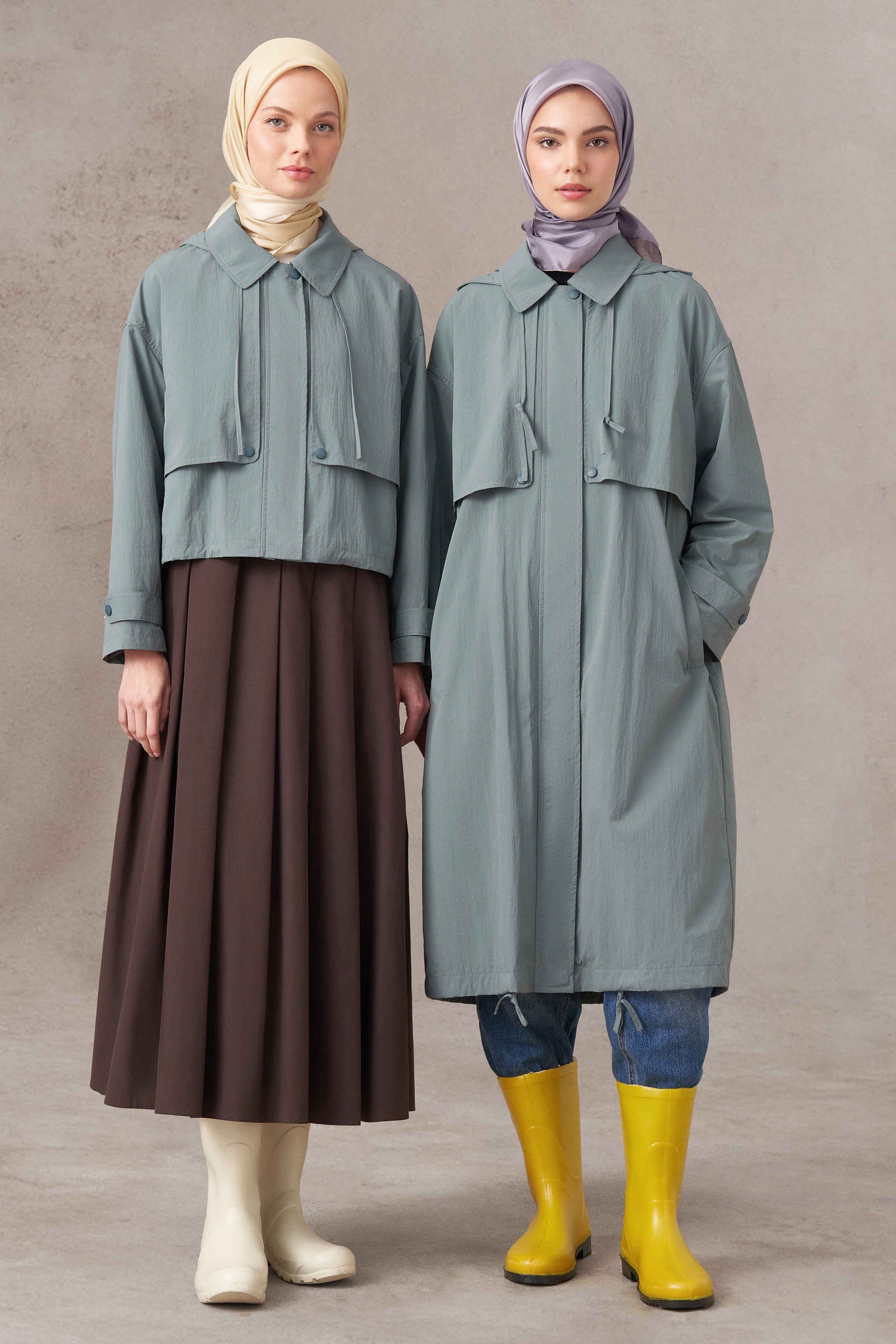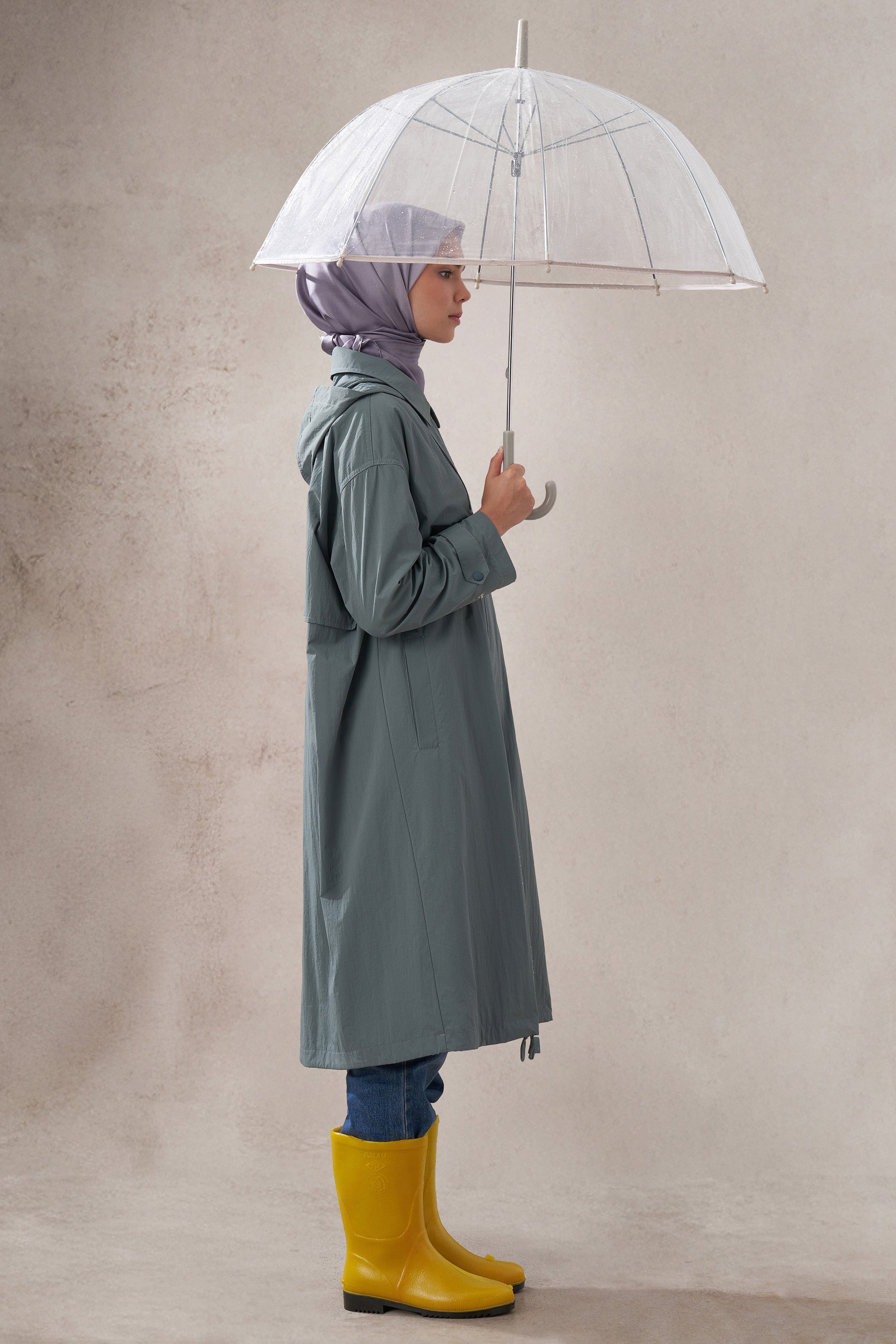 The Tuğba raincoat, with its lightweight texture, completes your look.