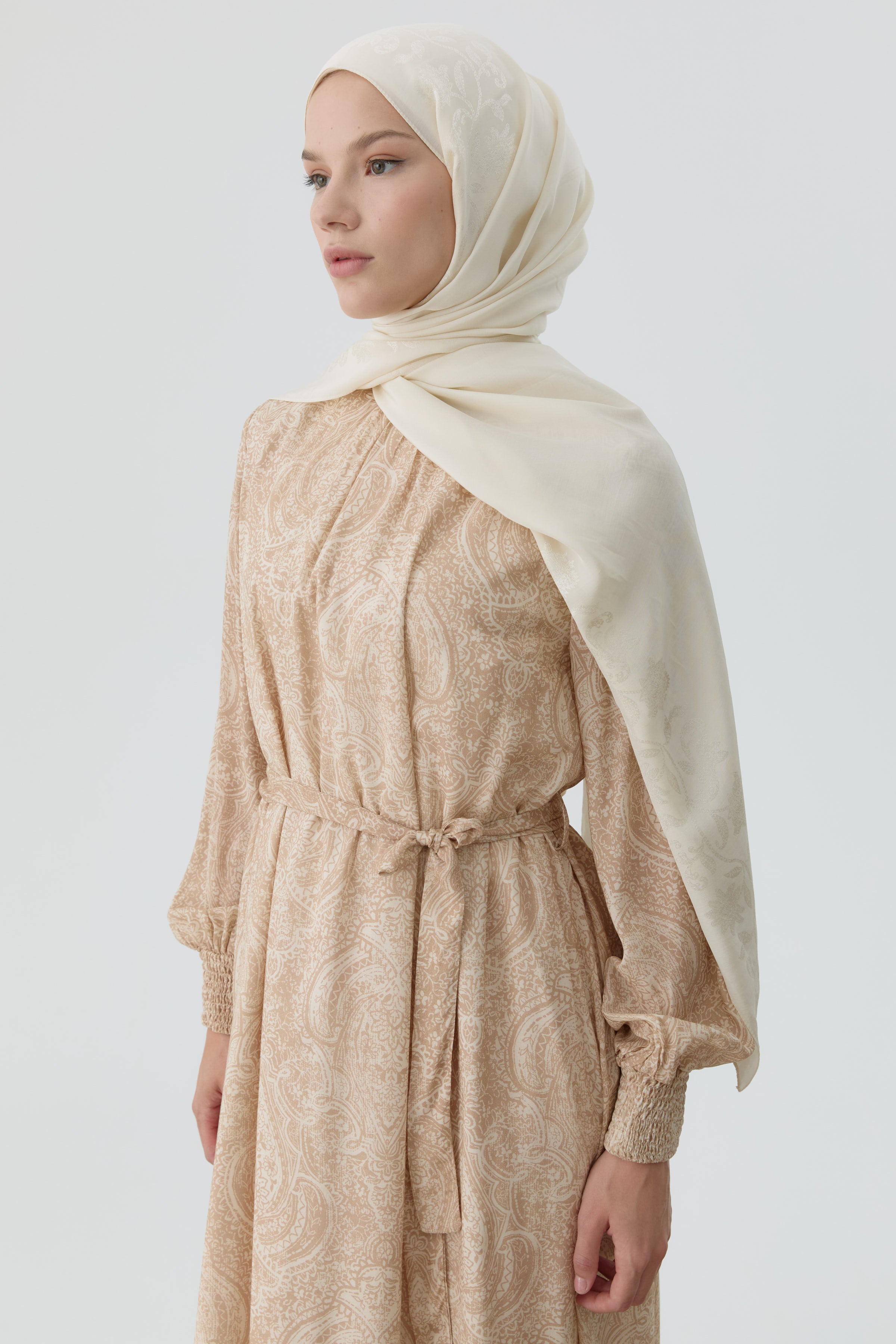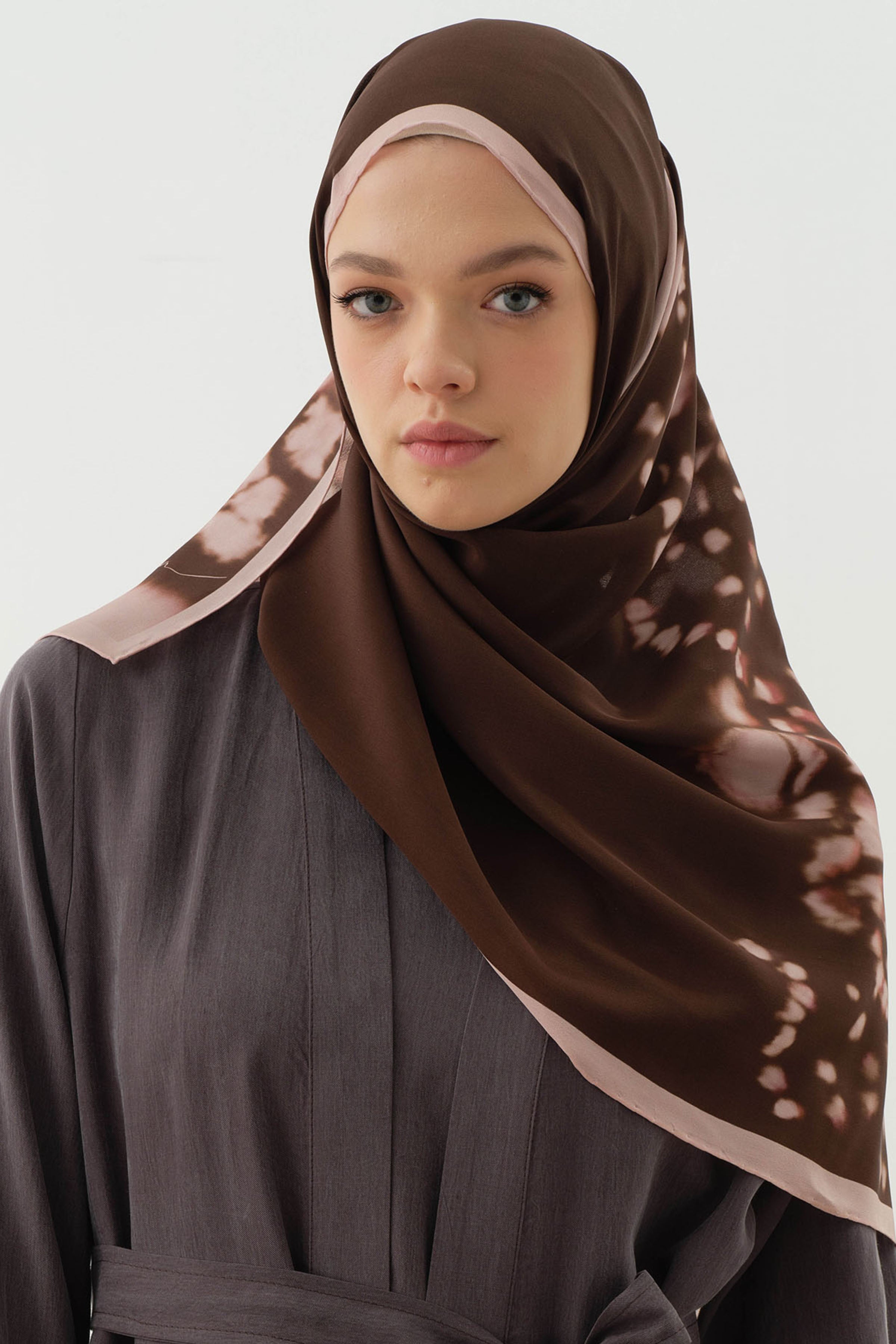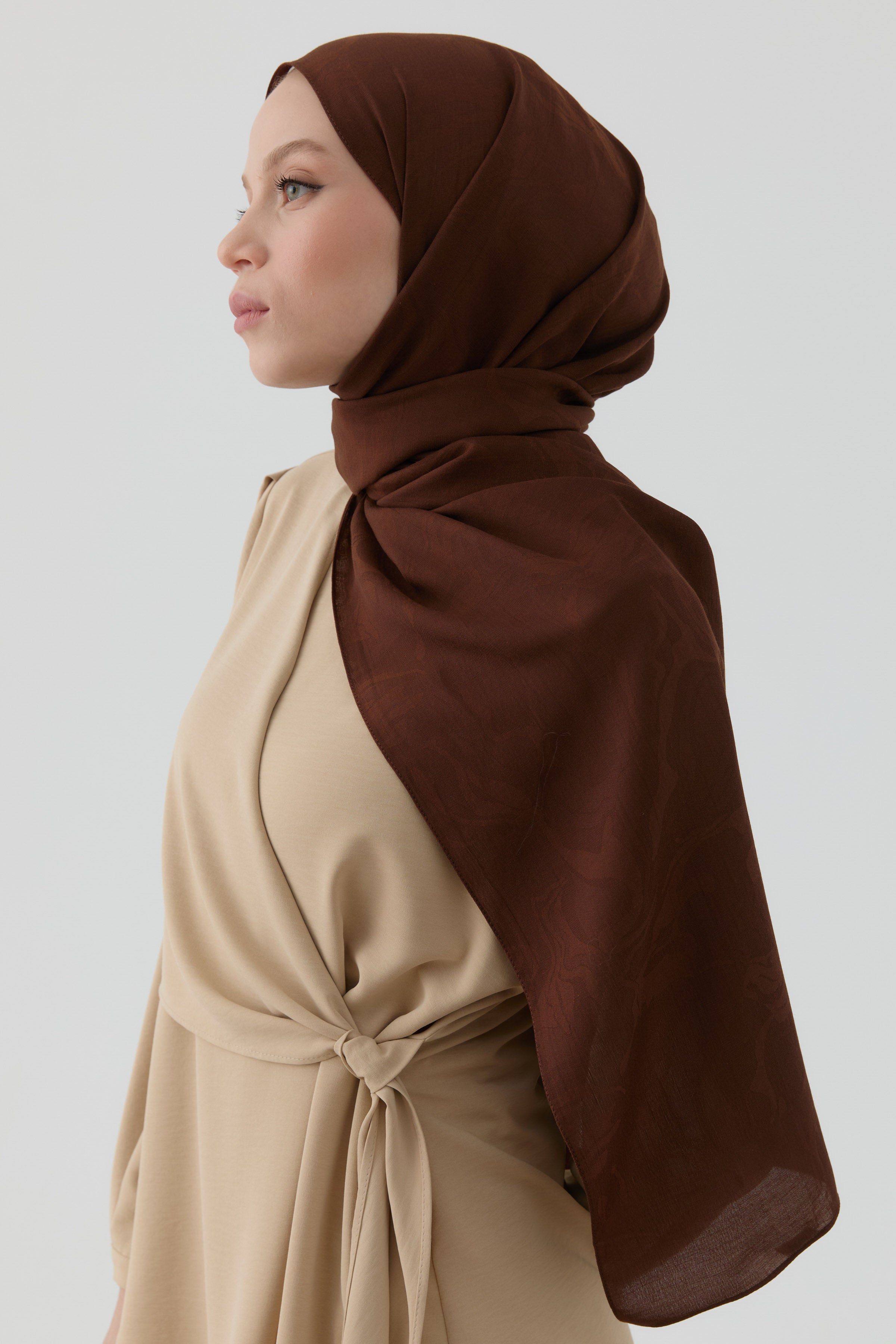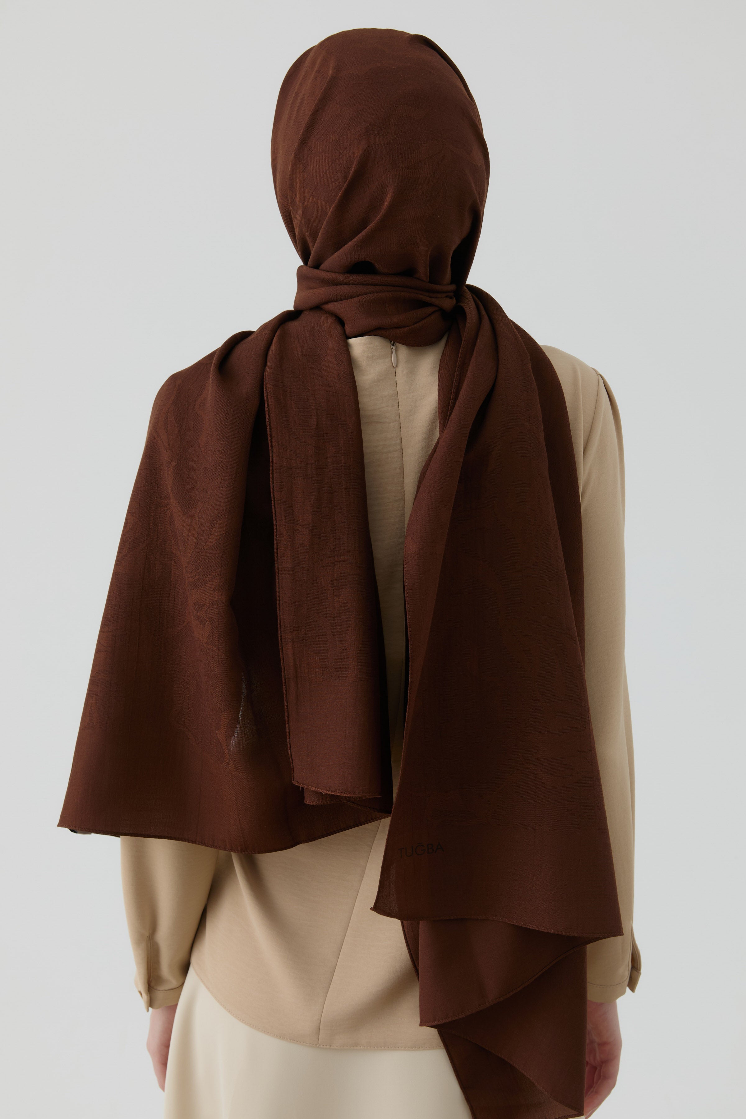 Ebru Natural Shawl with Marbled Pattern - Light Coffee