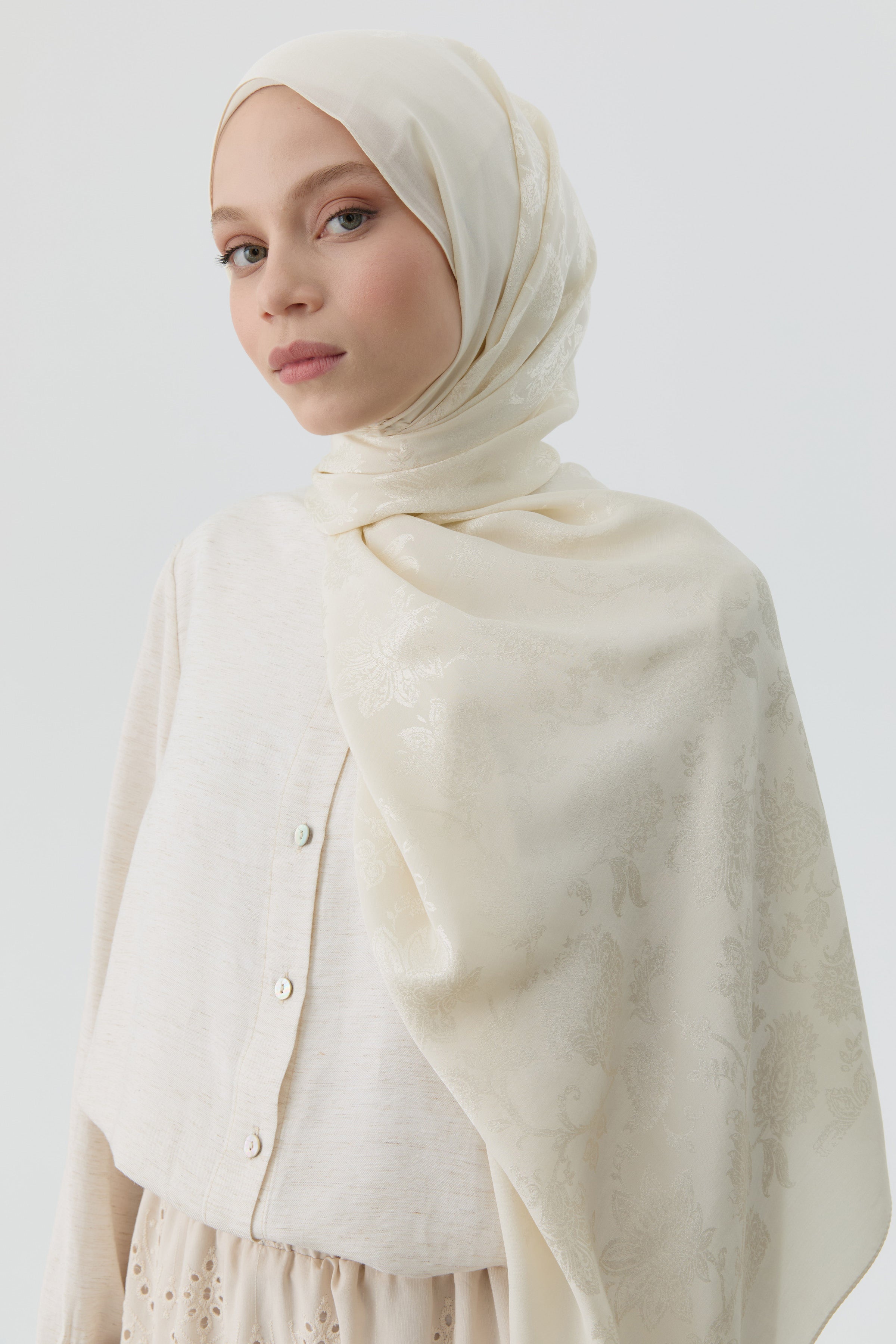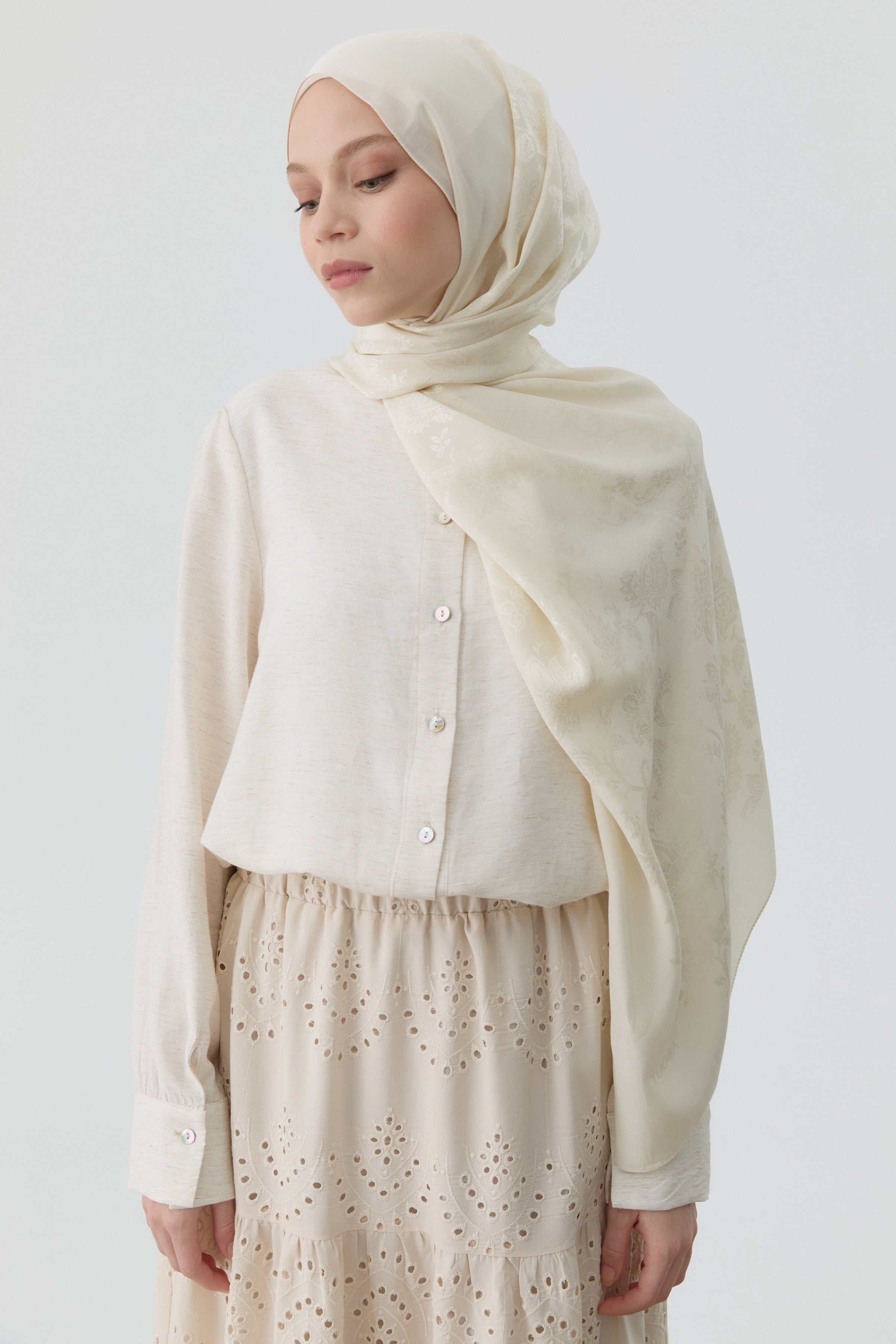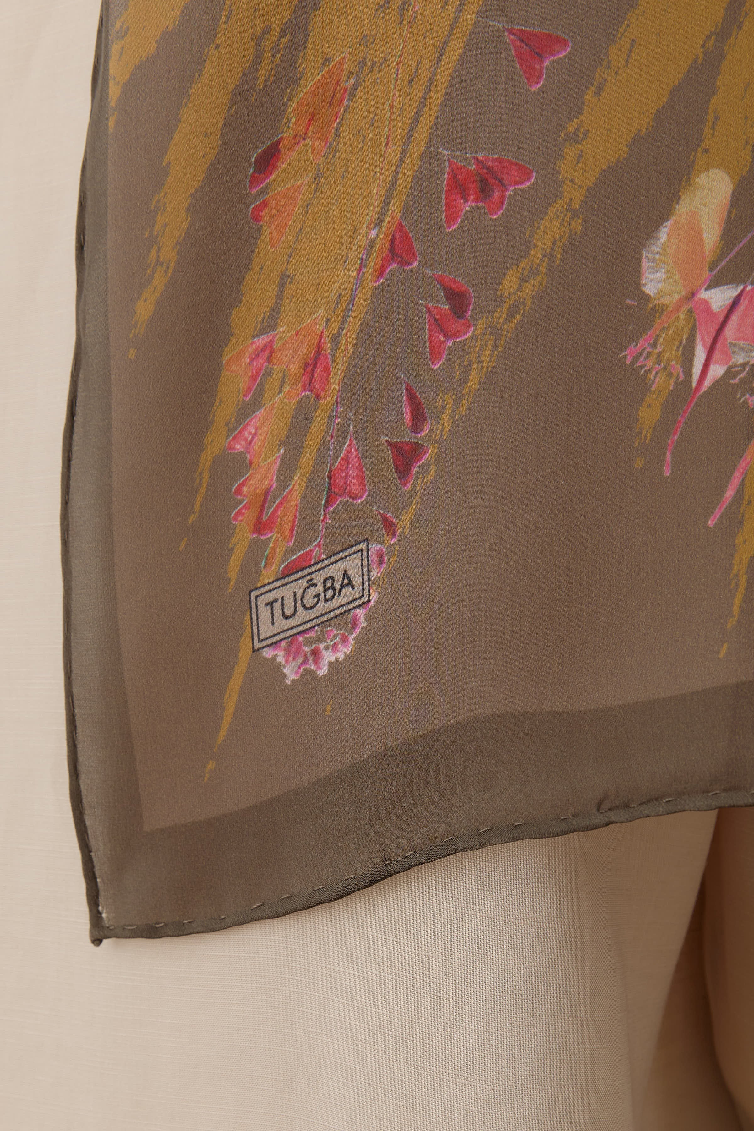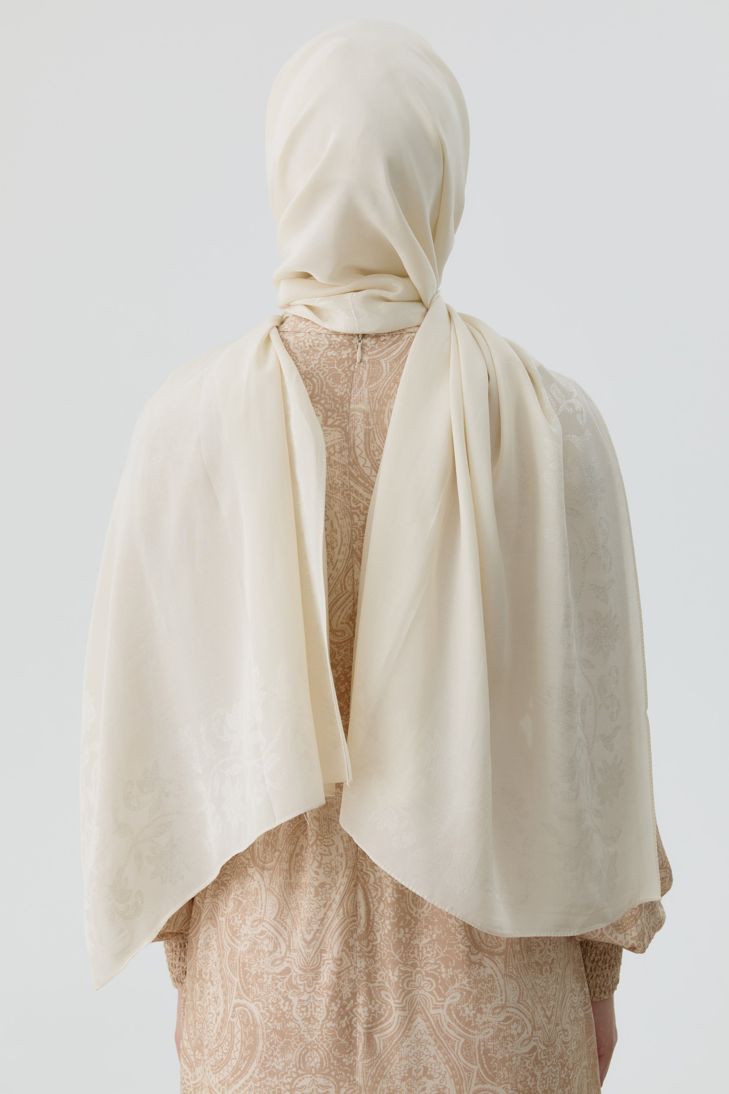 Ebru Natural Shawl with Marbled Pattern - Light Coffee