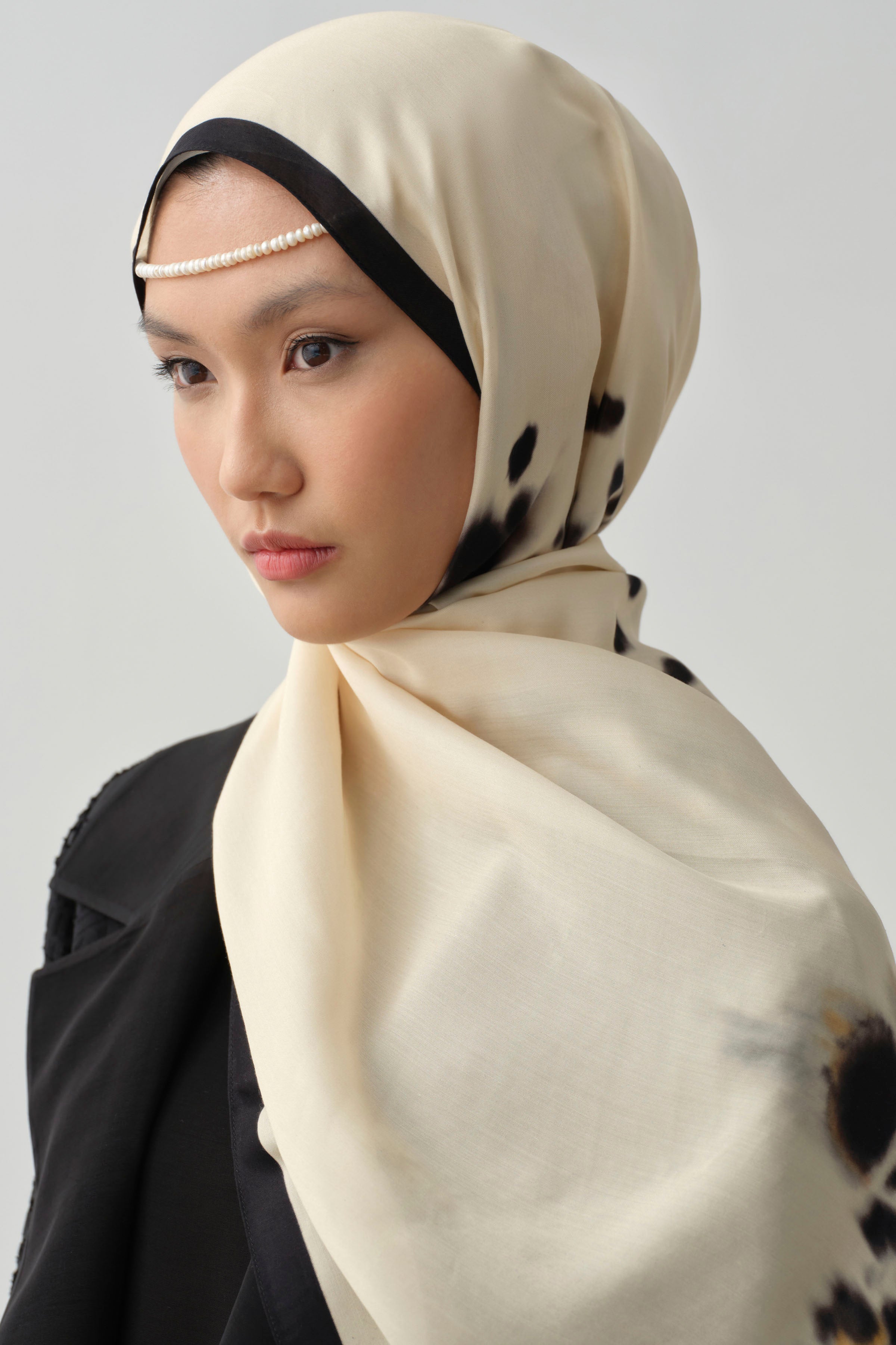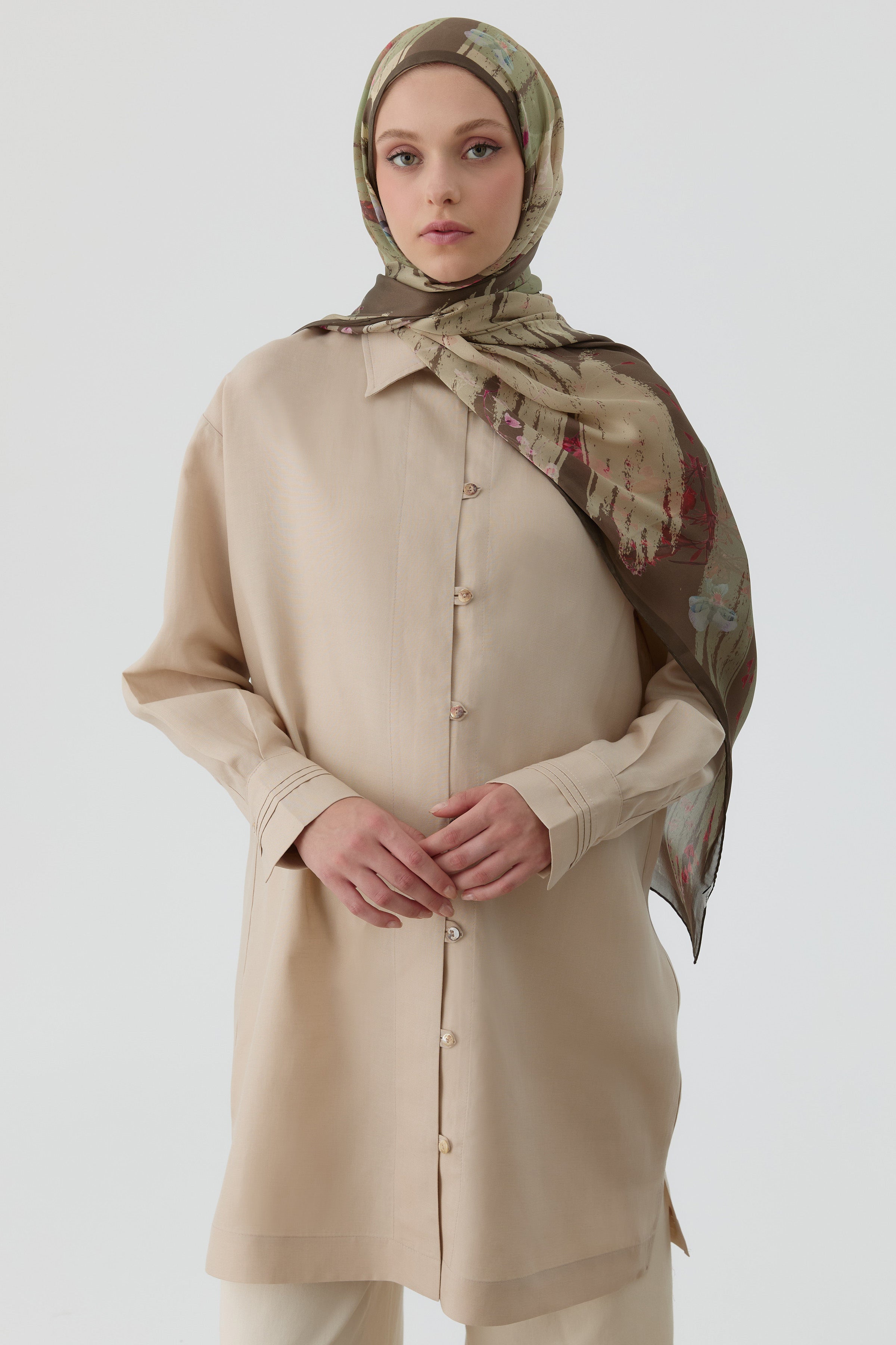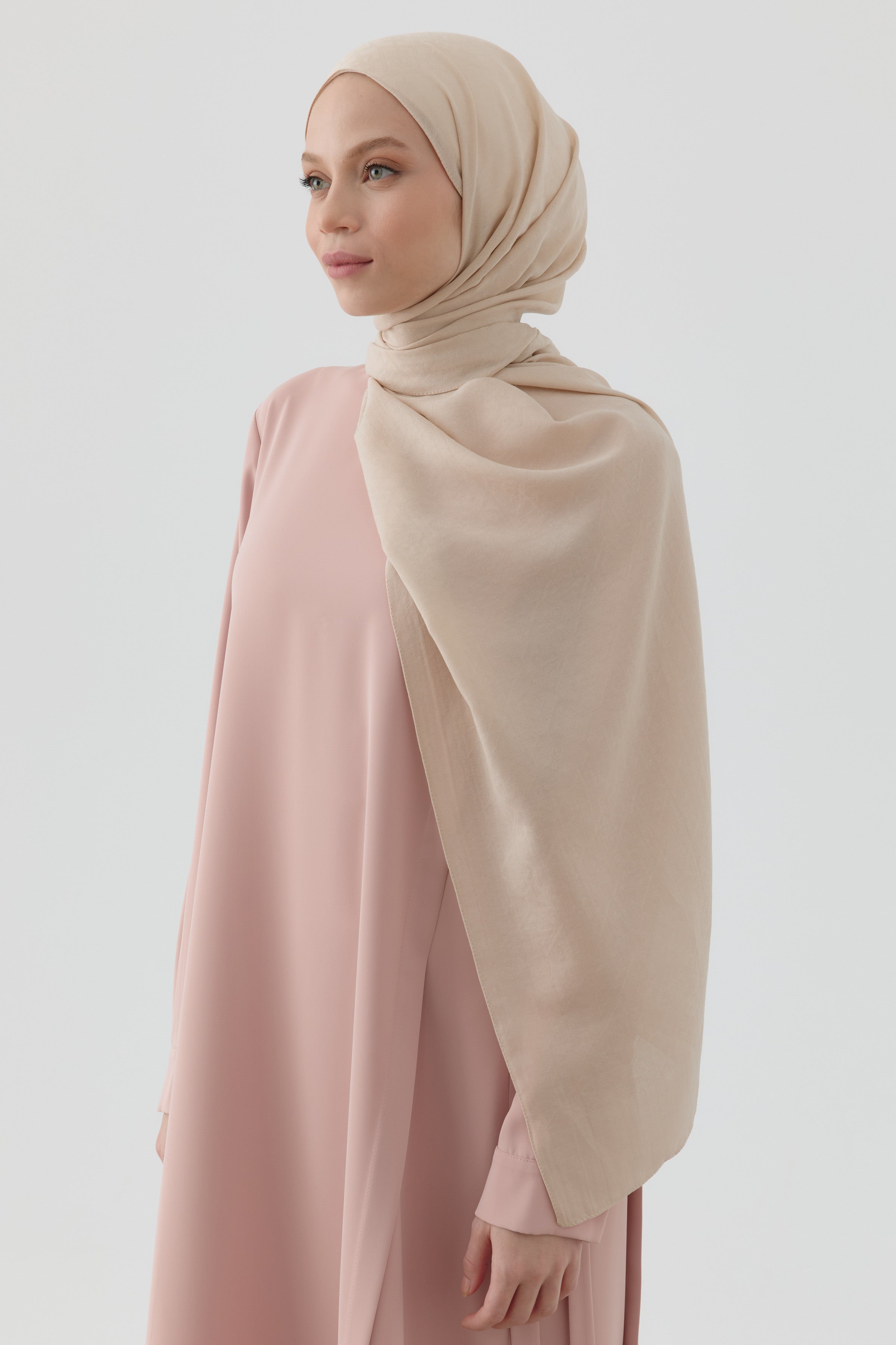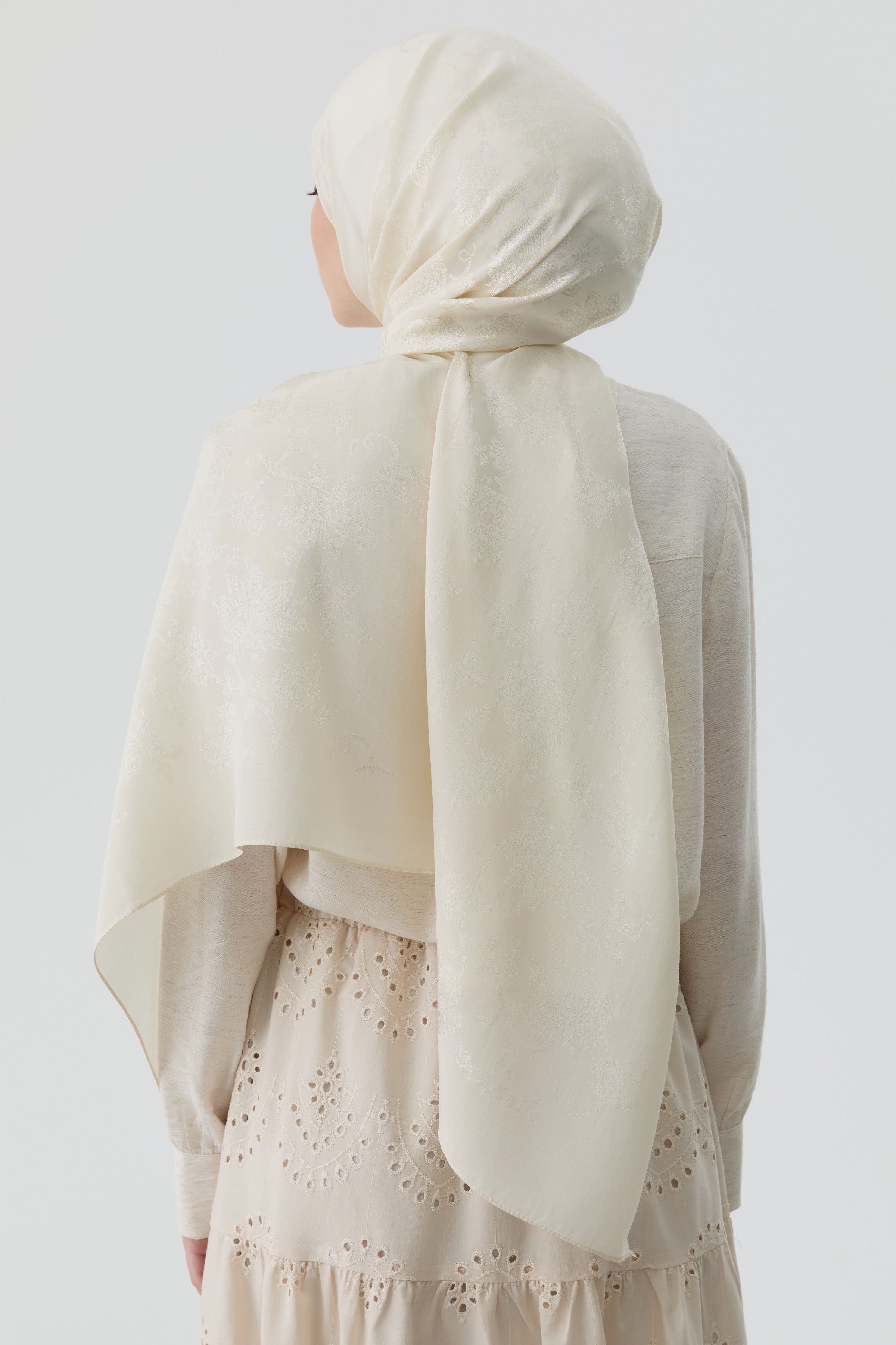 Ebru Natural Shawl with Marbled Pattern - Light Coffee