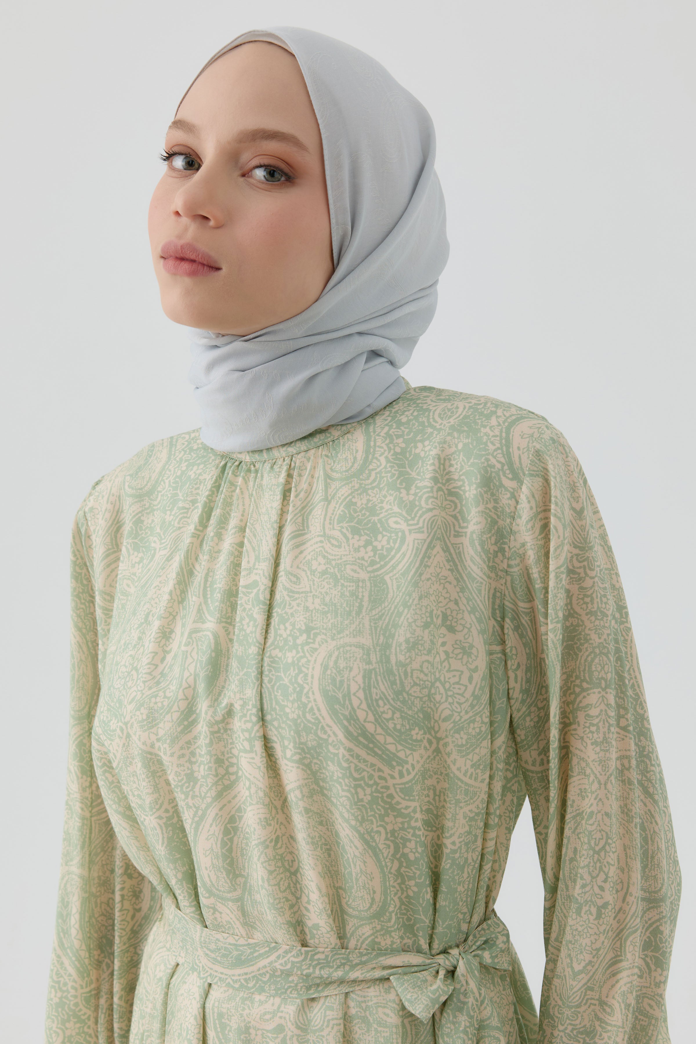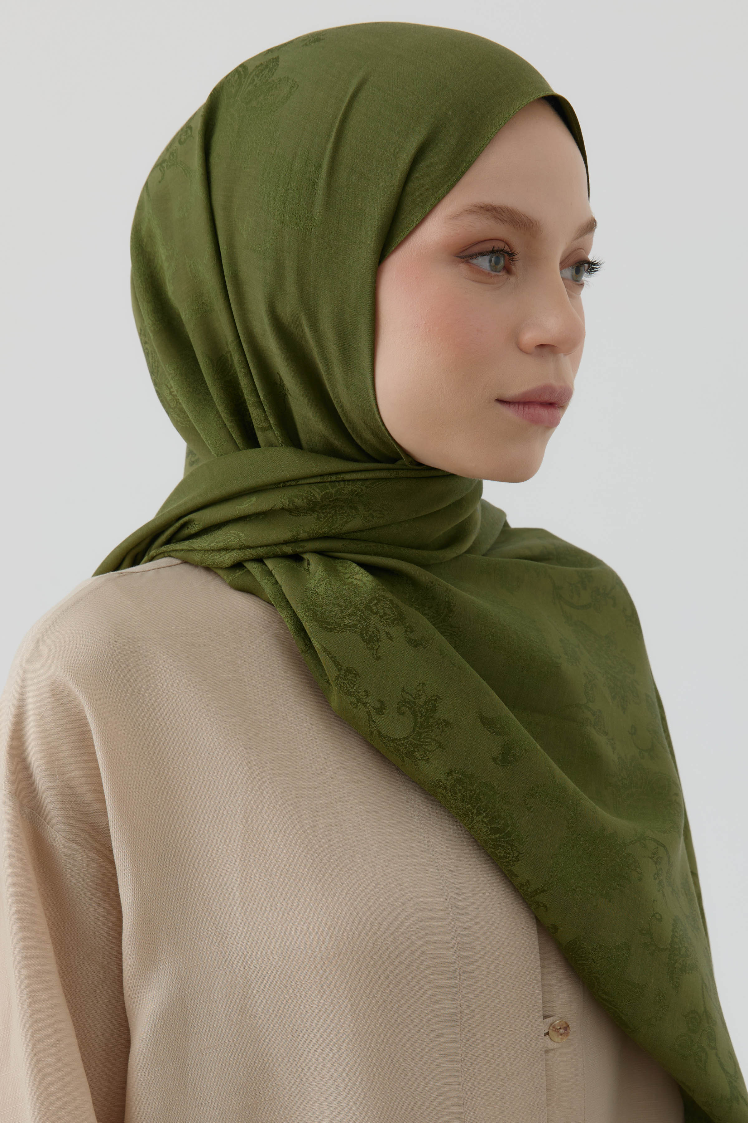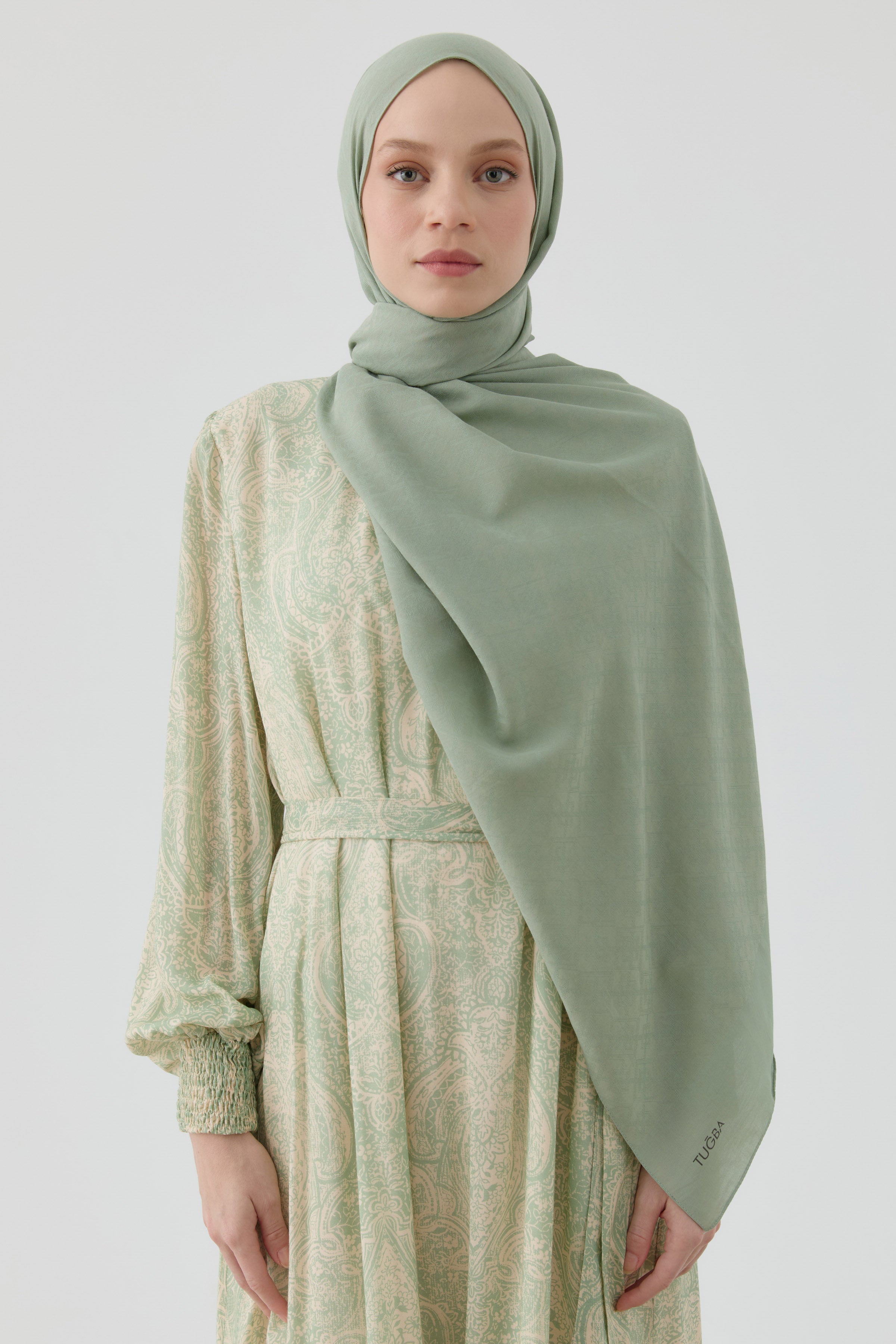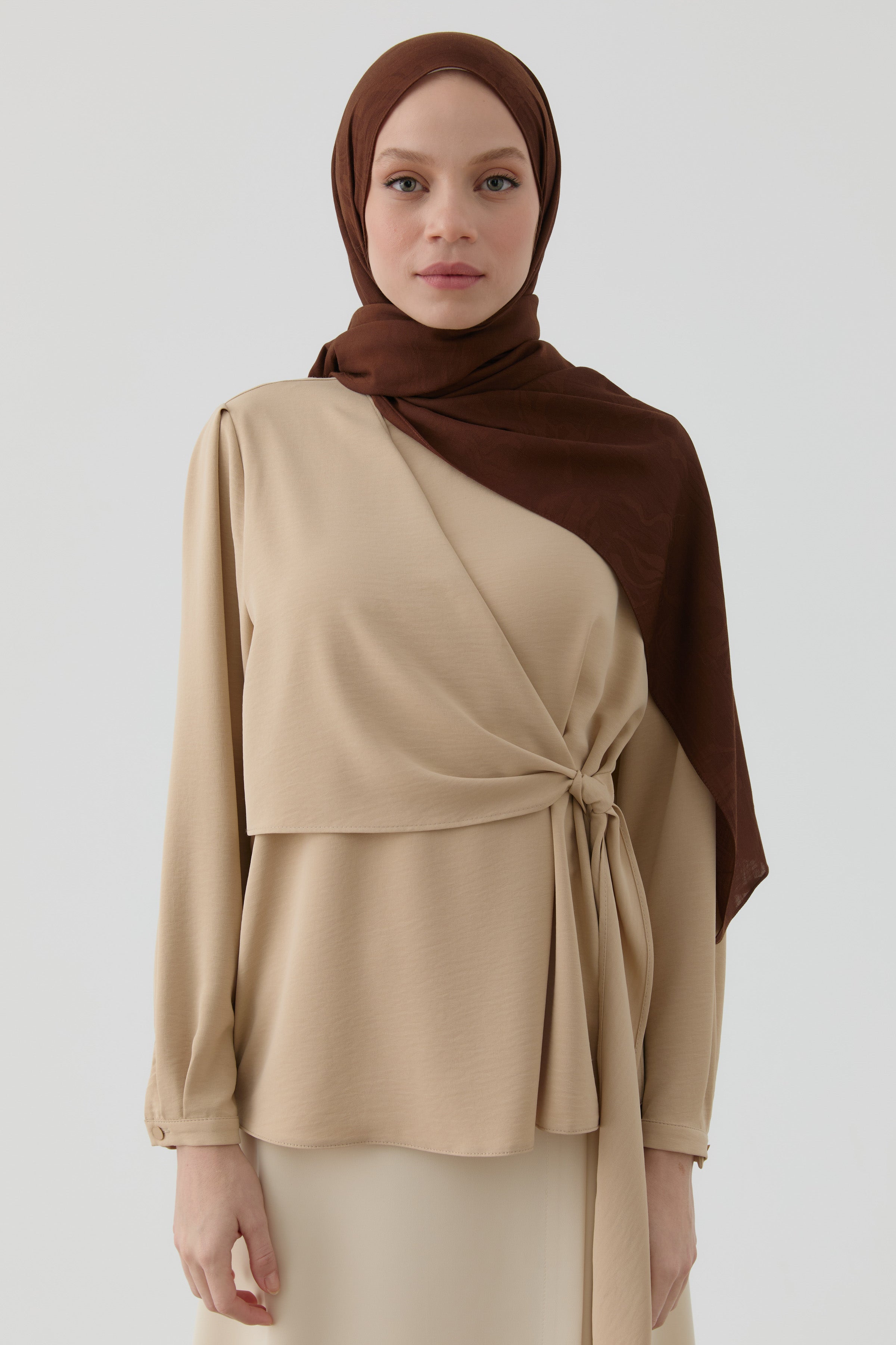 Ebru Natural Shawl with Marbled Pattern - Light Coffee