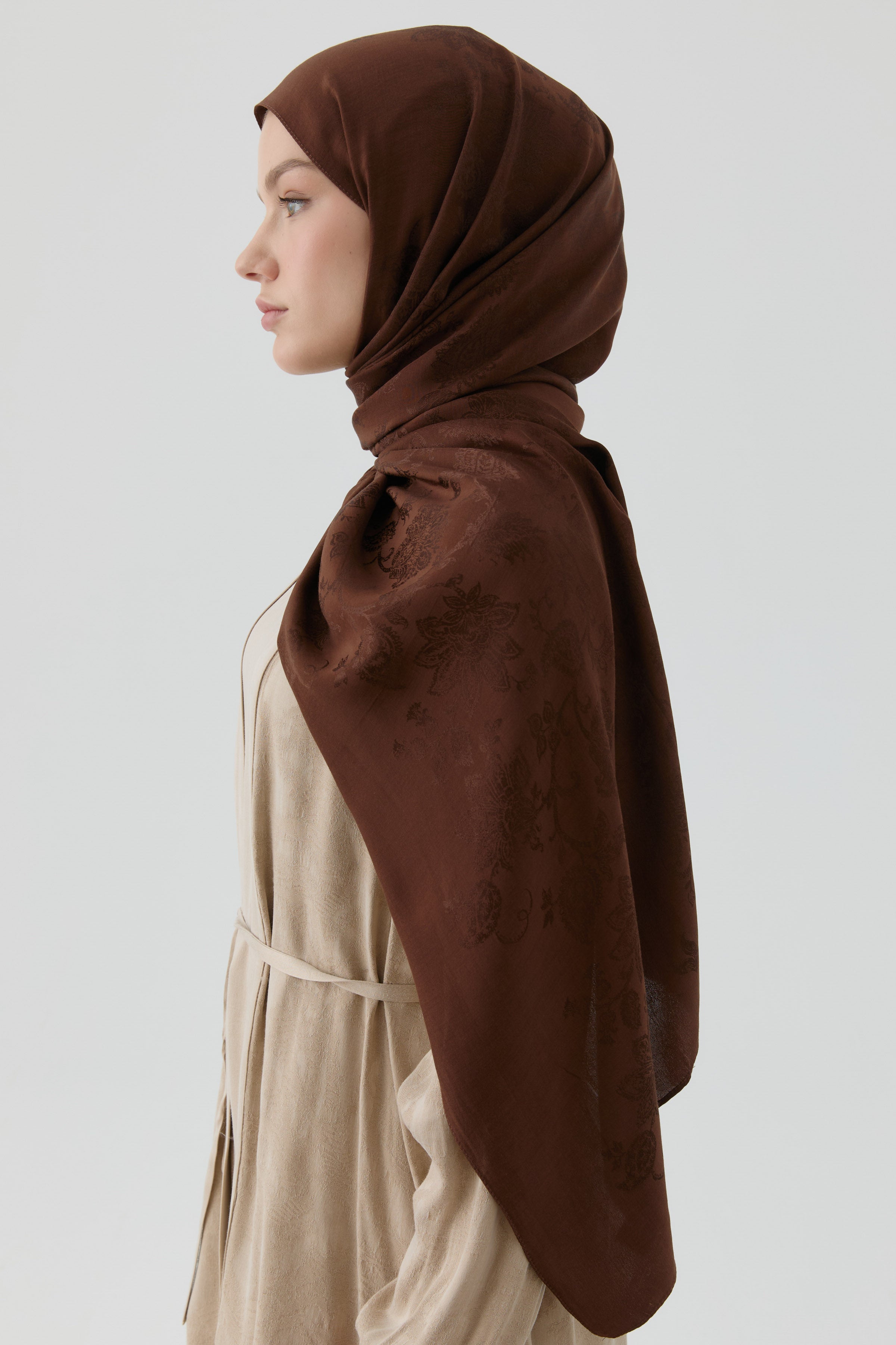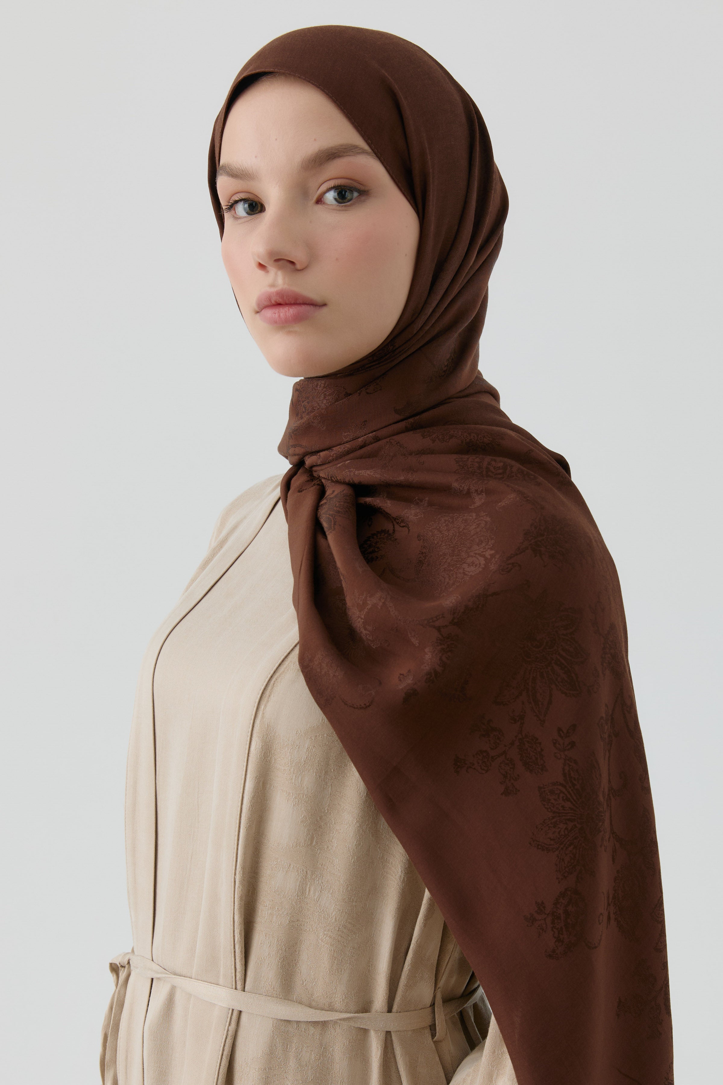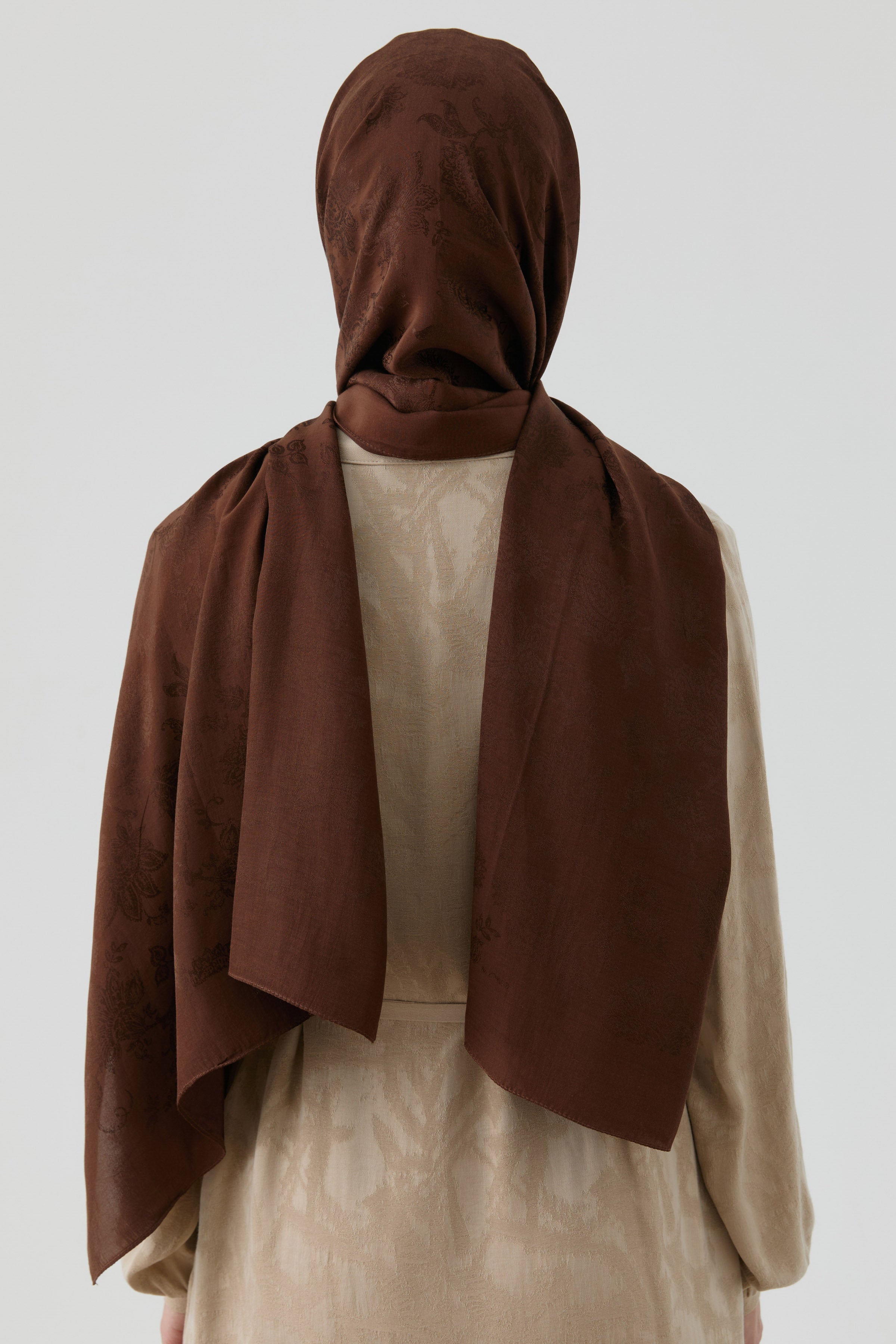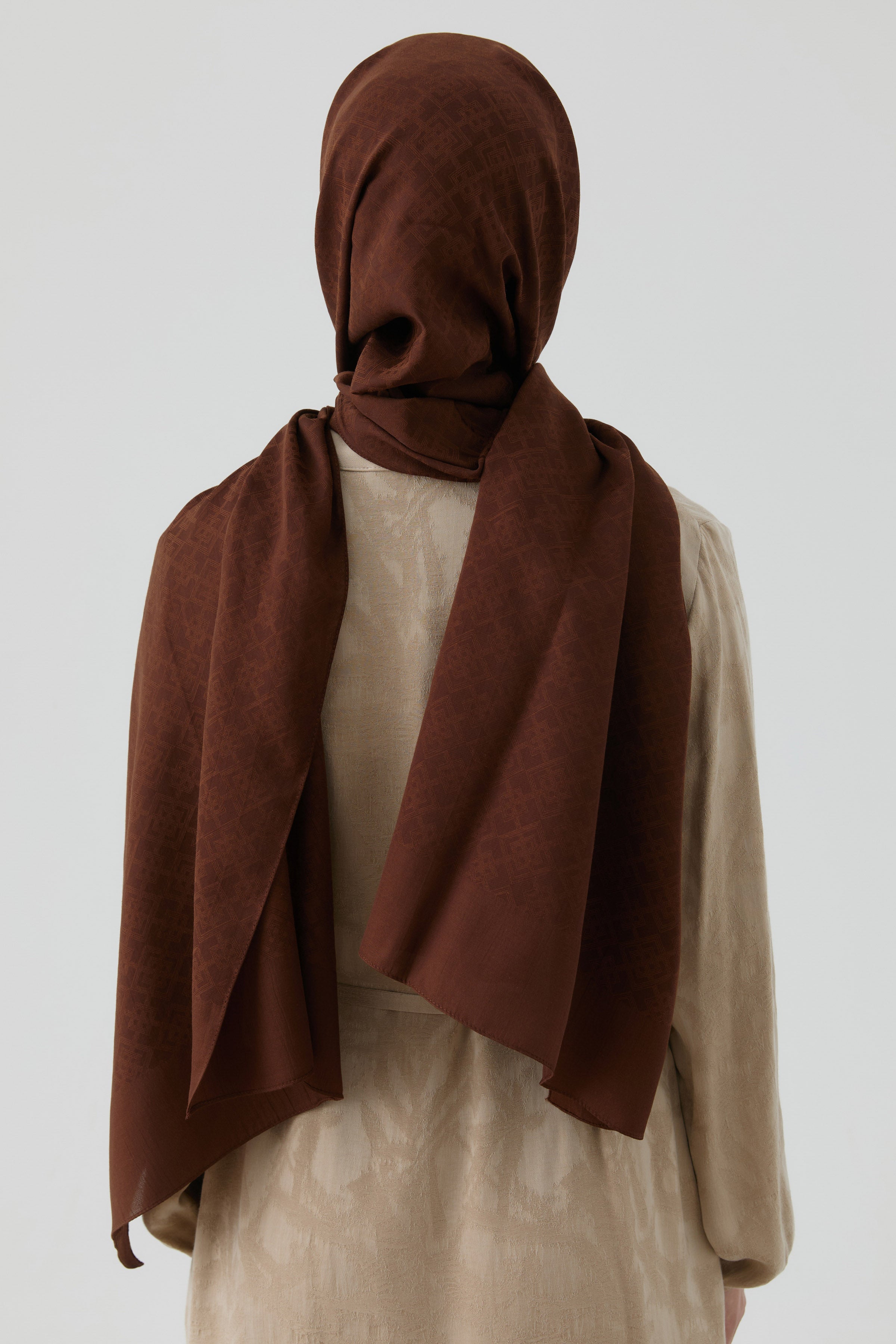 Jacquard shawl with zigzag pattern - Dark Coffee