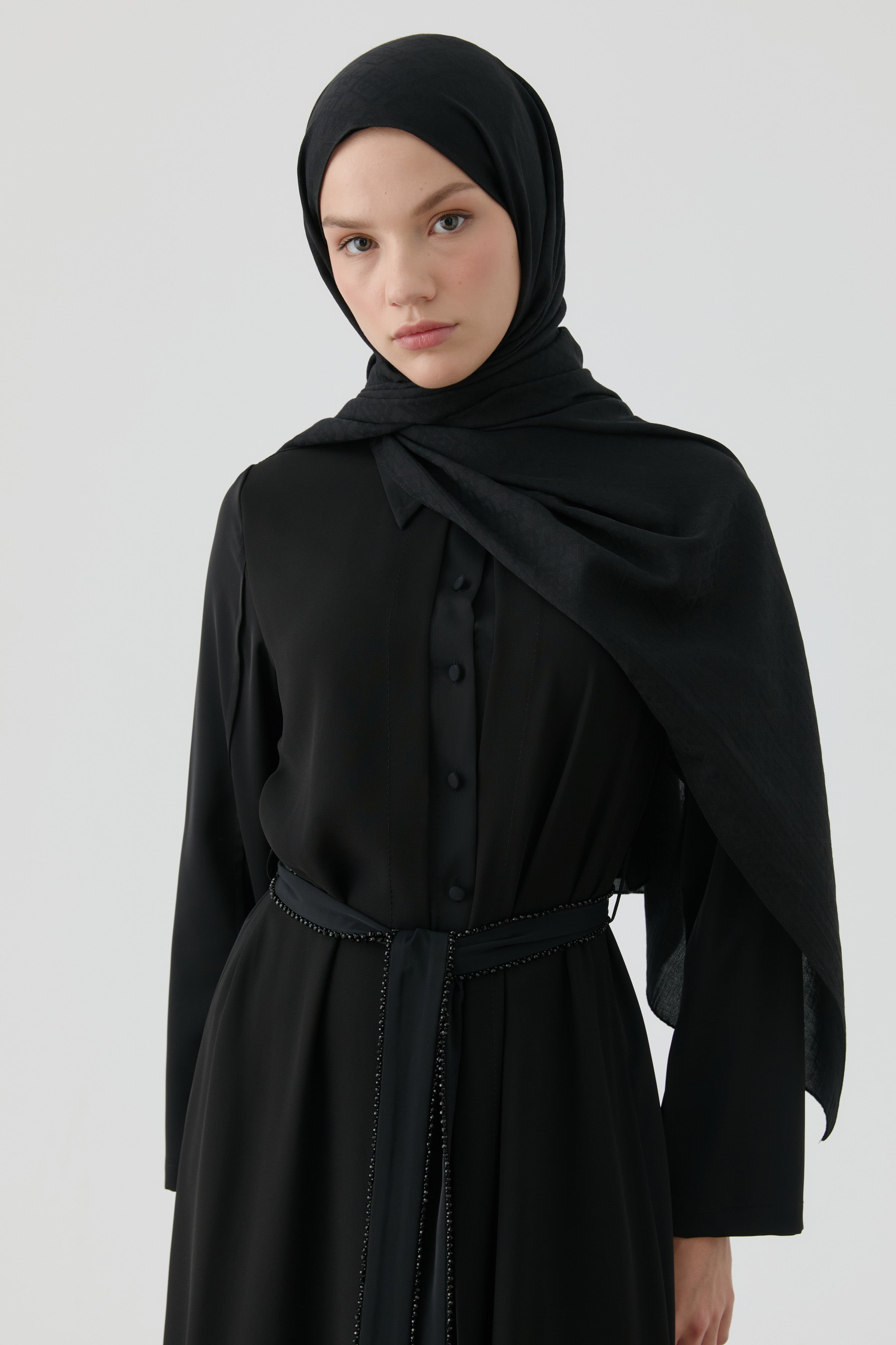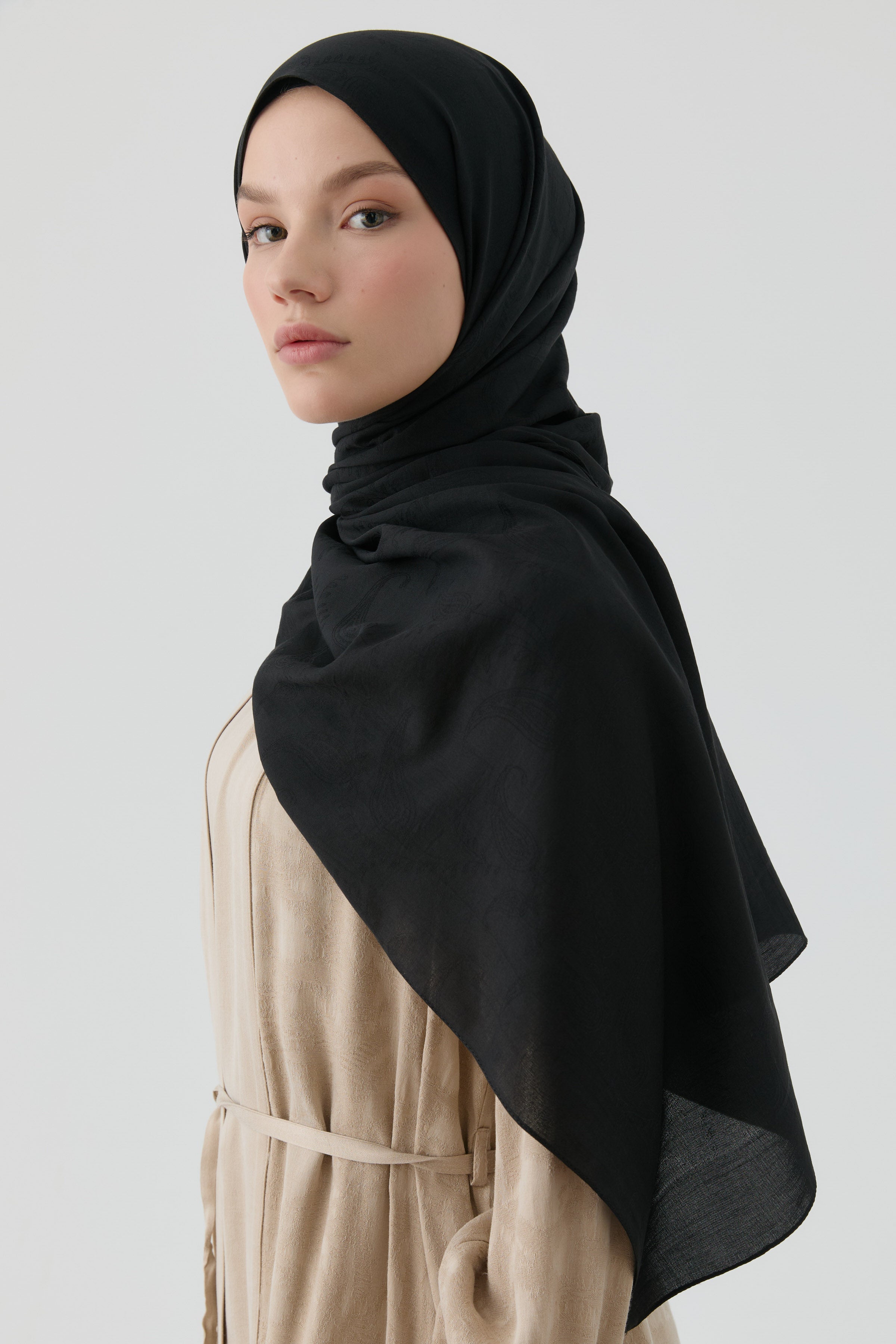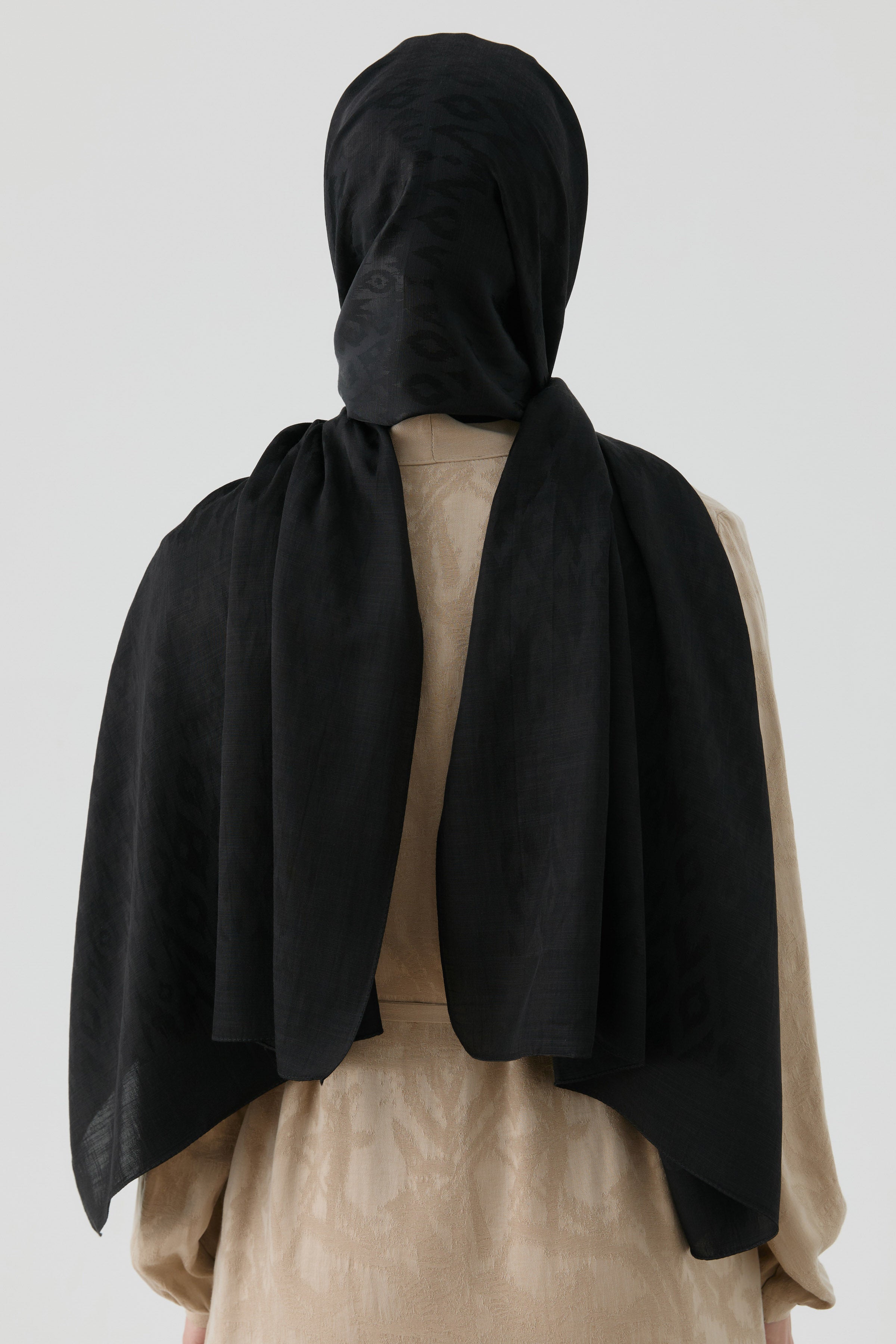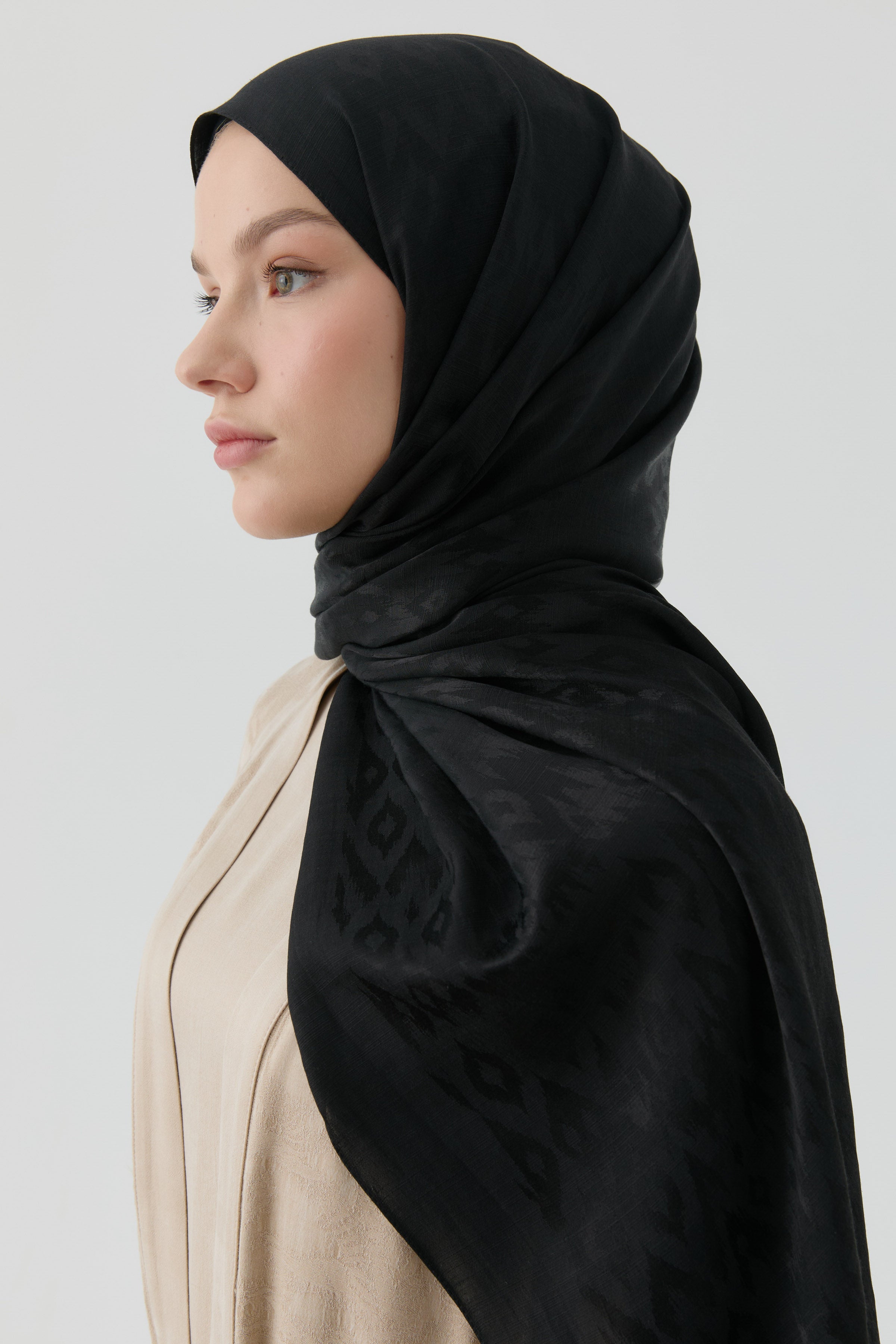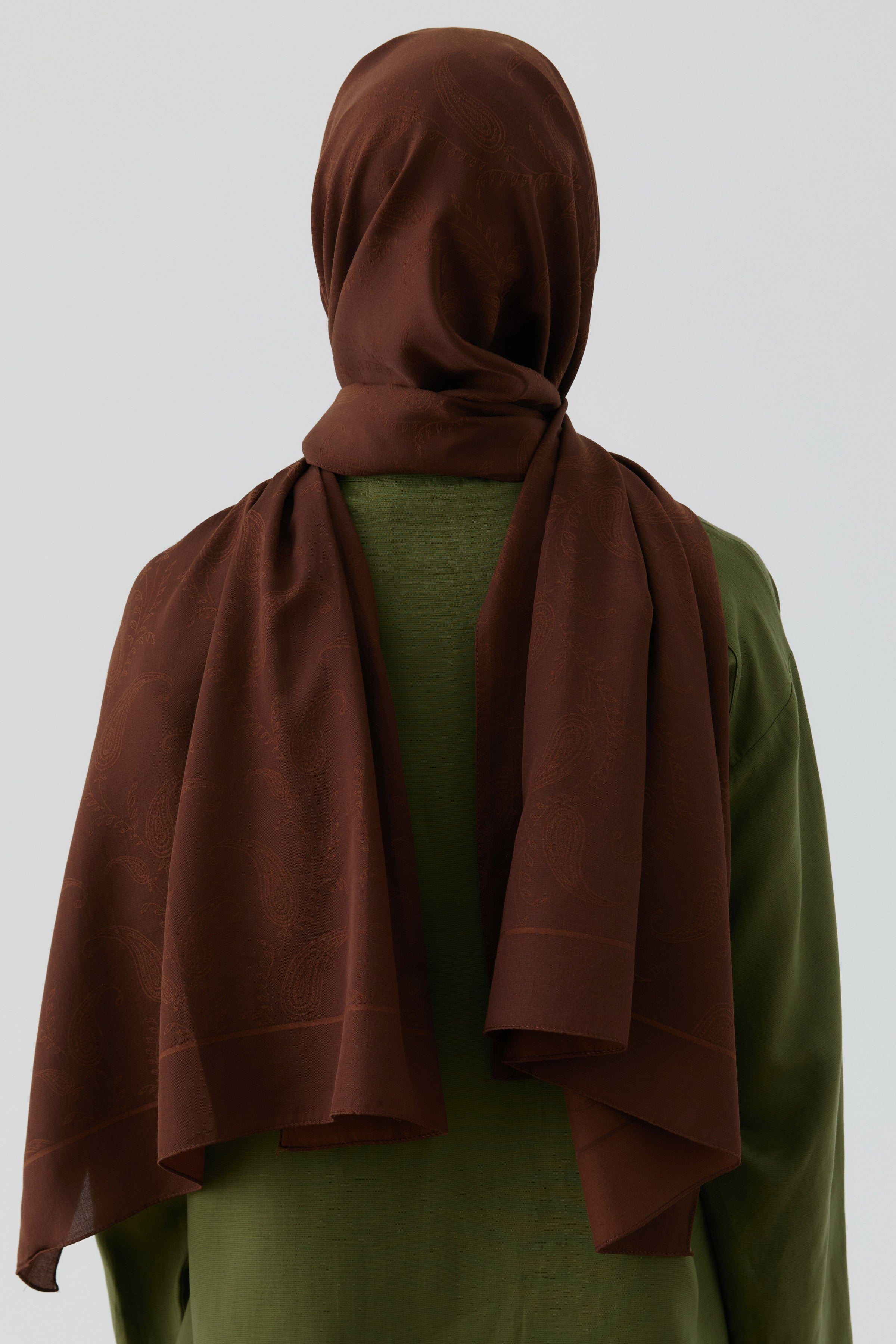 Jacquard shawl with zigzag pattern - Dark Coffee