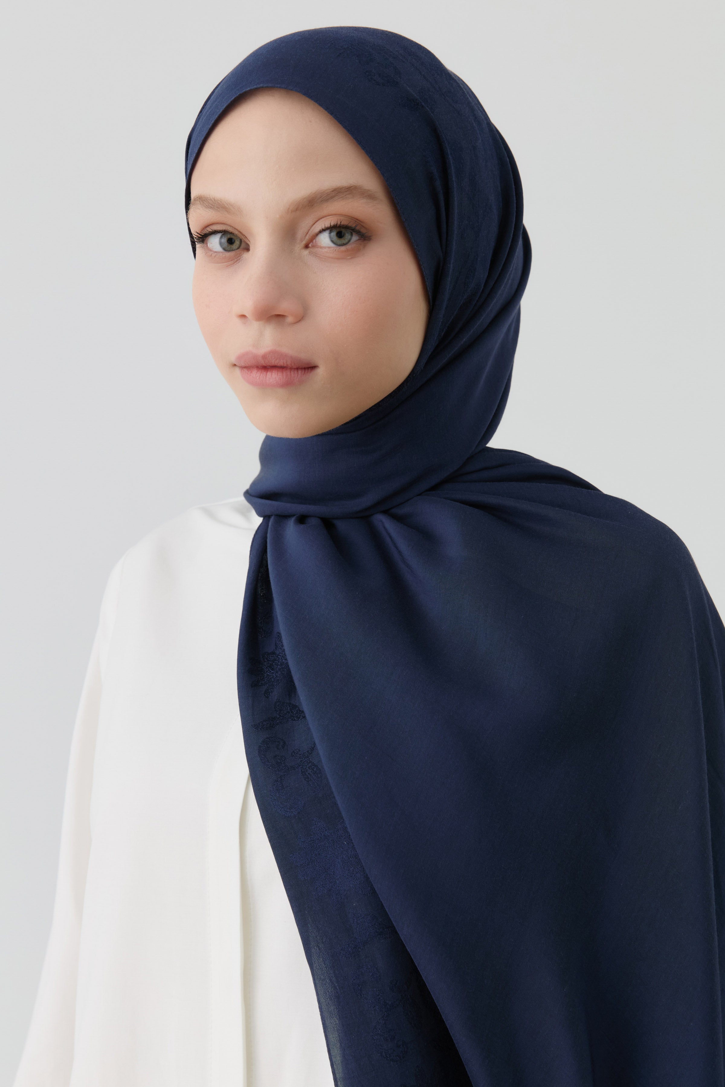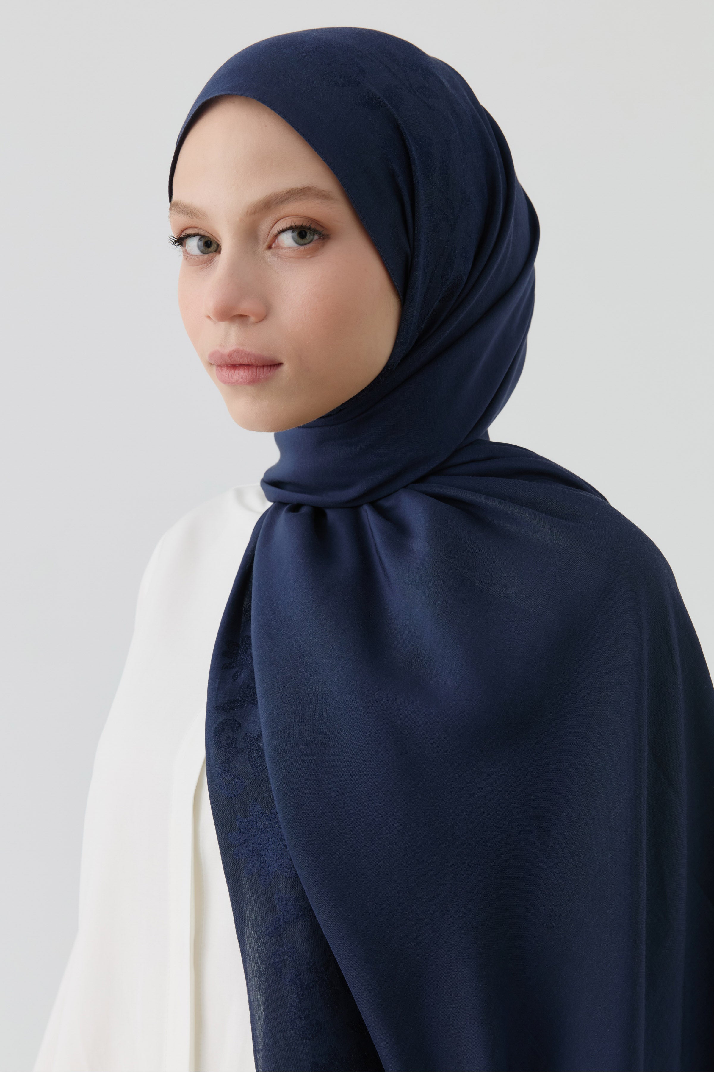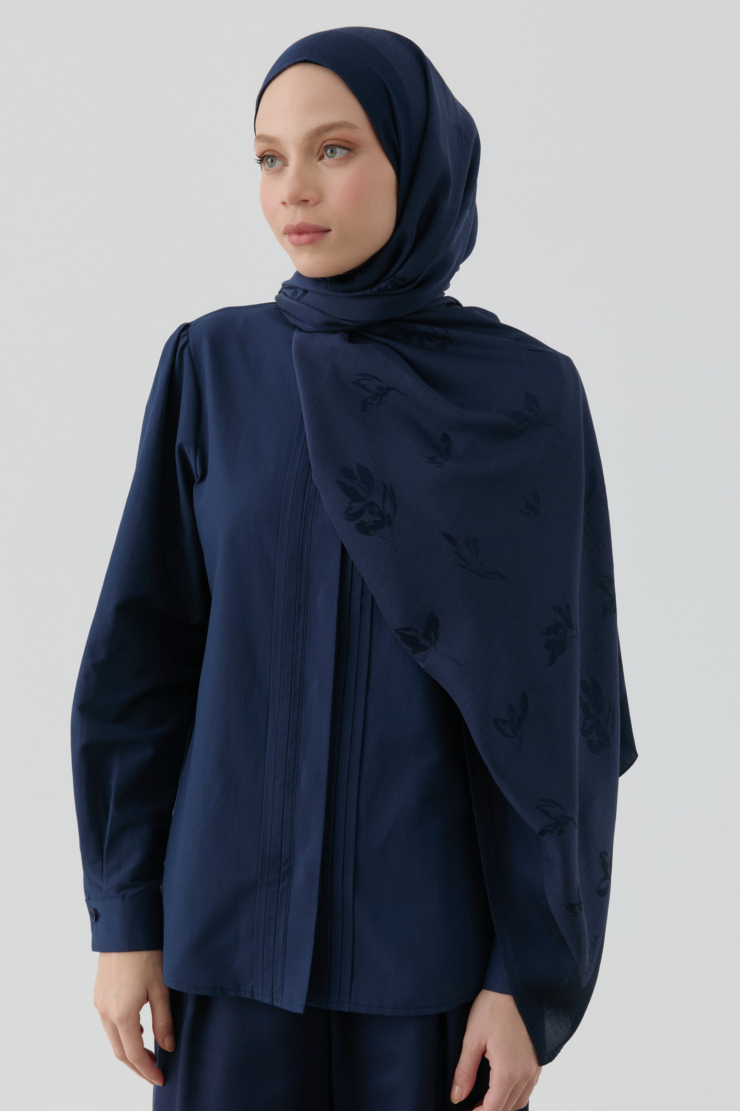 Funda Natural Floral Pattern Shawl - Navy Blue