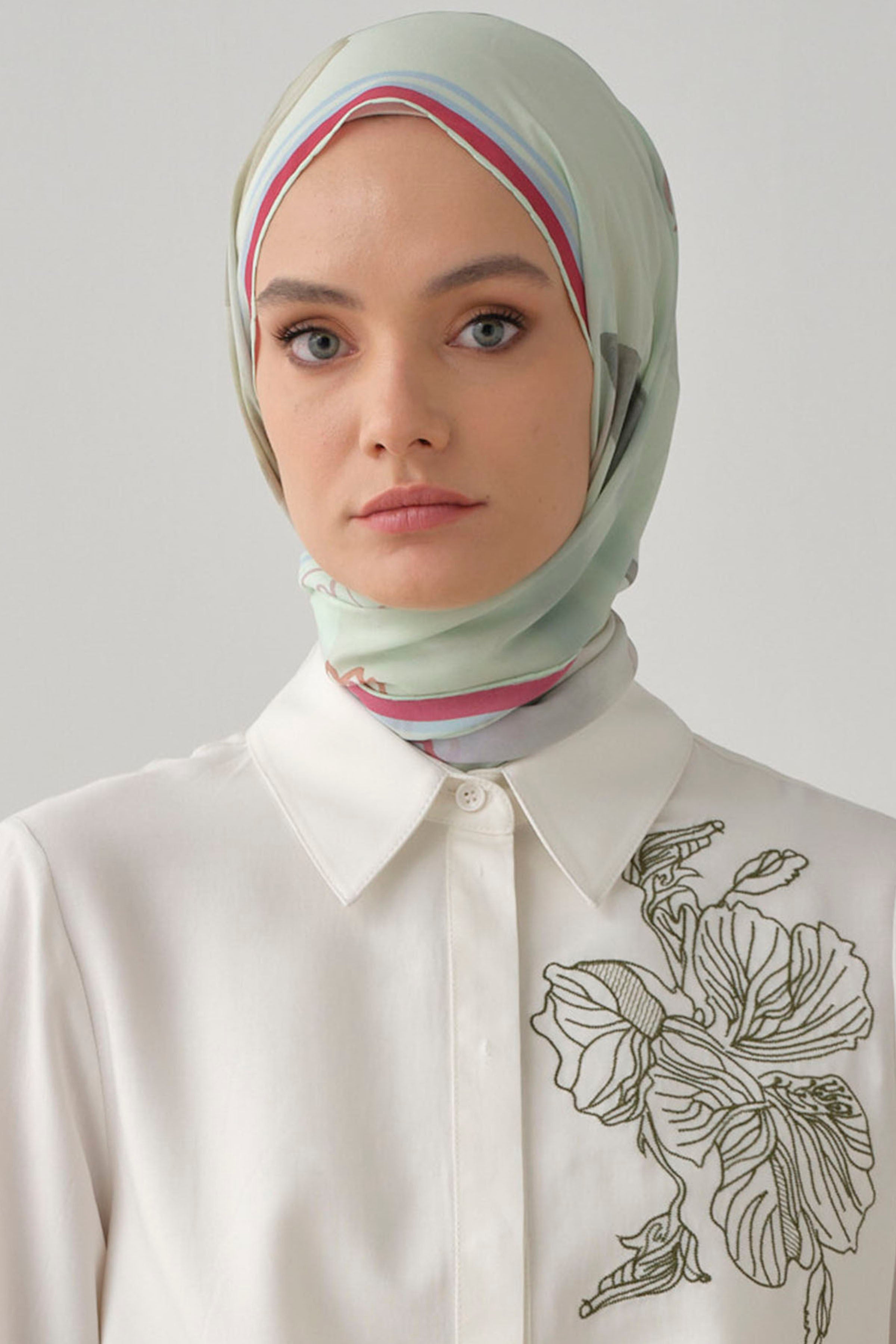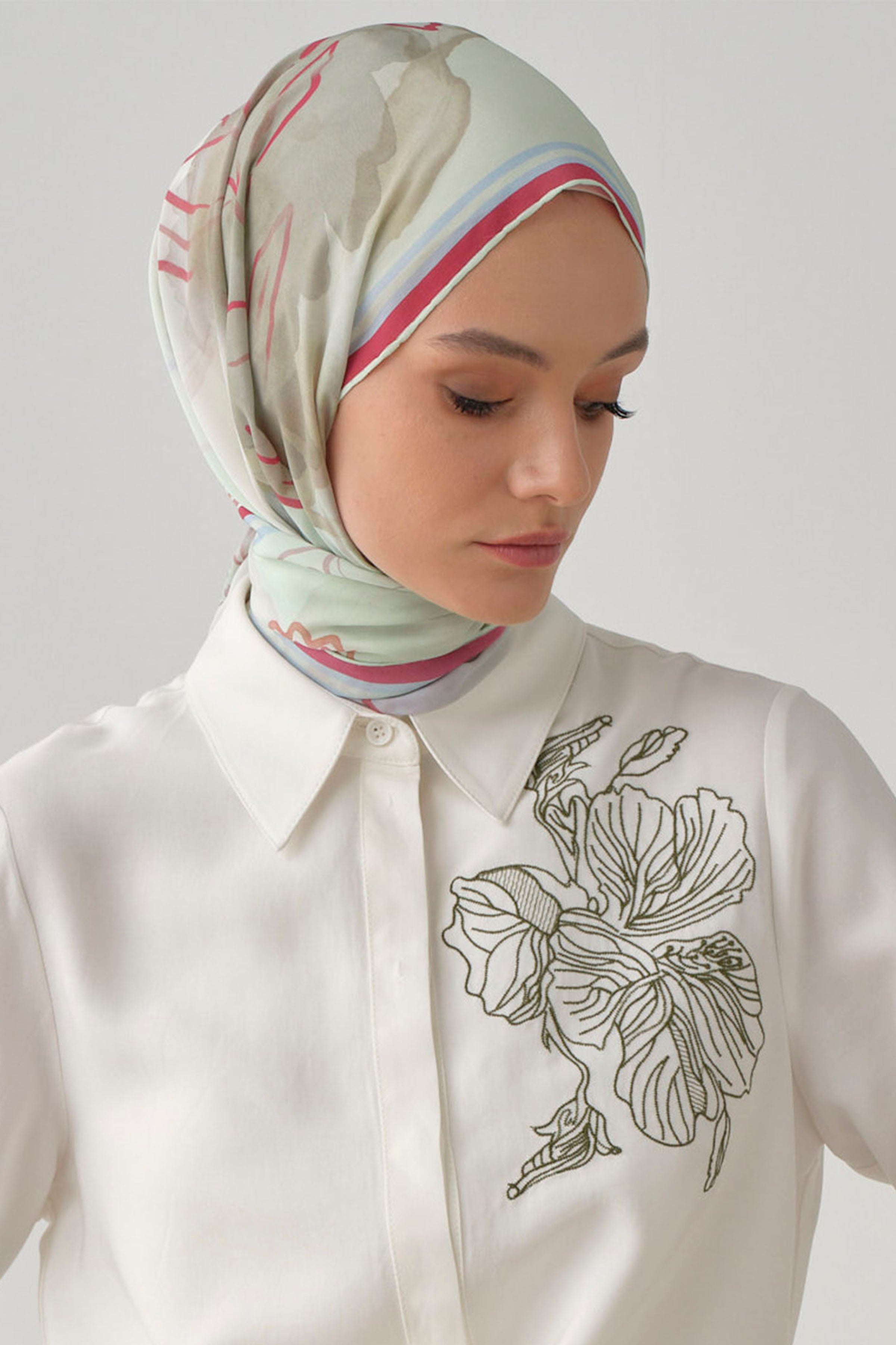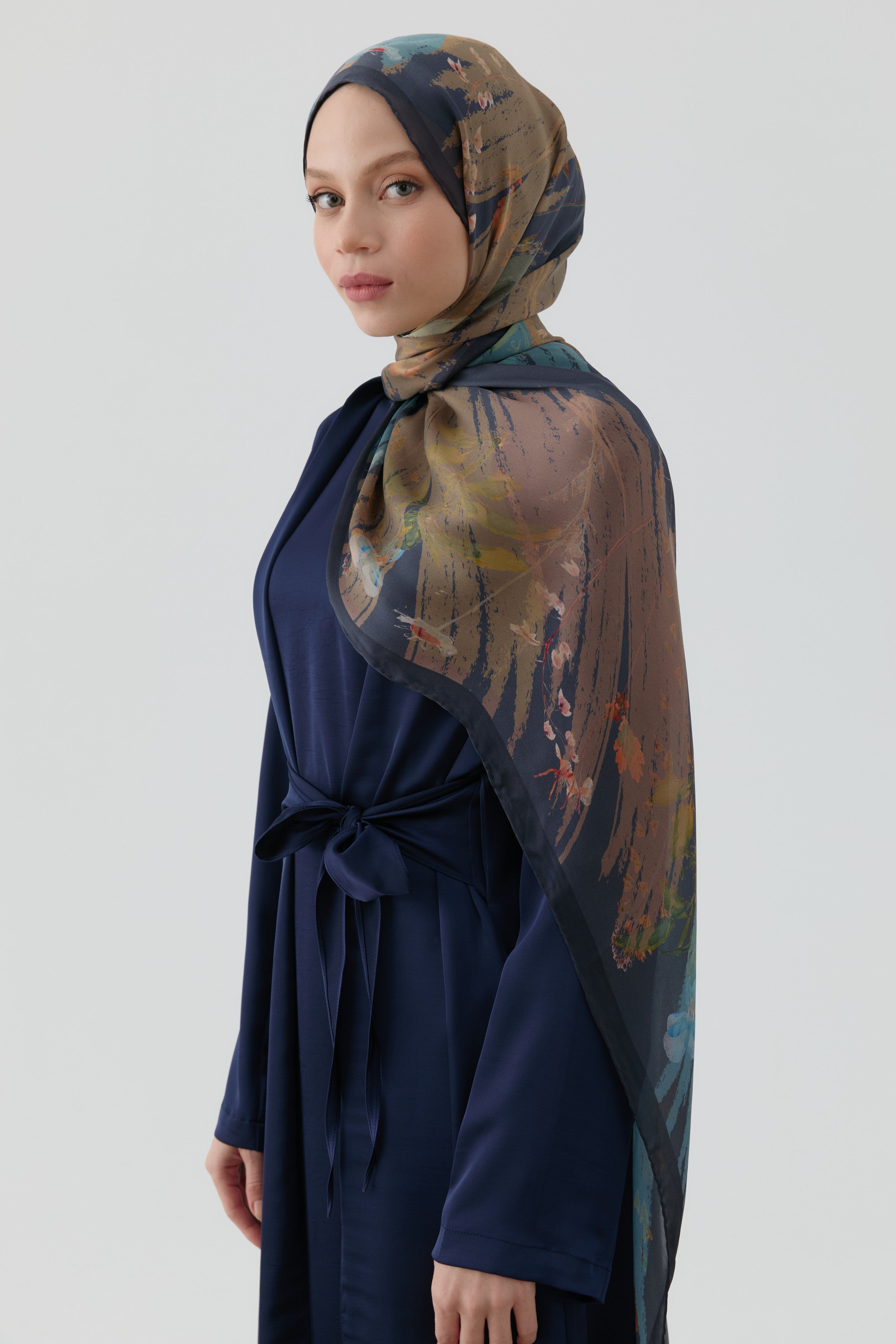 Funda Natural Floral Pattern Shawl - Navy Blue
